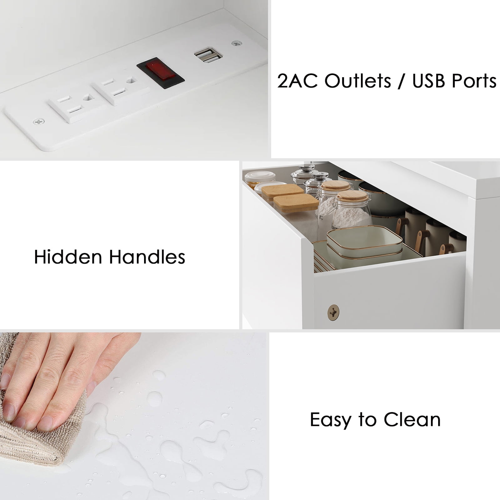 Homfa – Create a comfortable life! Homfa pantry cabinet with LED lights is equipped with power outlets and USB ports, providing much convenience for your kitchen appliances such as a microwave and coffee machine. This 70.9in pantry cabinet has the spacious countertop, 3 drawers and 6 shelves, providing ample space for your necessities items. In addition, you can adjust the heights of shelves for your daily needs. The quality material of the kitchen pantry cabinet can make the pantry extra solid for daily use. The surface is waterproof for easy to clean and maintenance. Smooth finishes and sleek lines create an elegant modern kitchen buffet cabinet. Whether your home is decorated in a modern or retro style, this Homfa pantry storage cabinet fits perfectly. Warning: Unplug the charging cable from the USB port when not in use to avoid potential safety risks.
