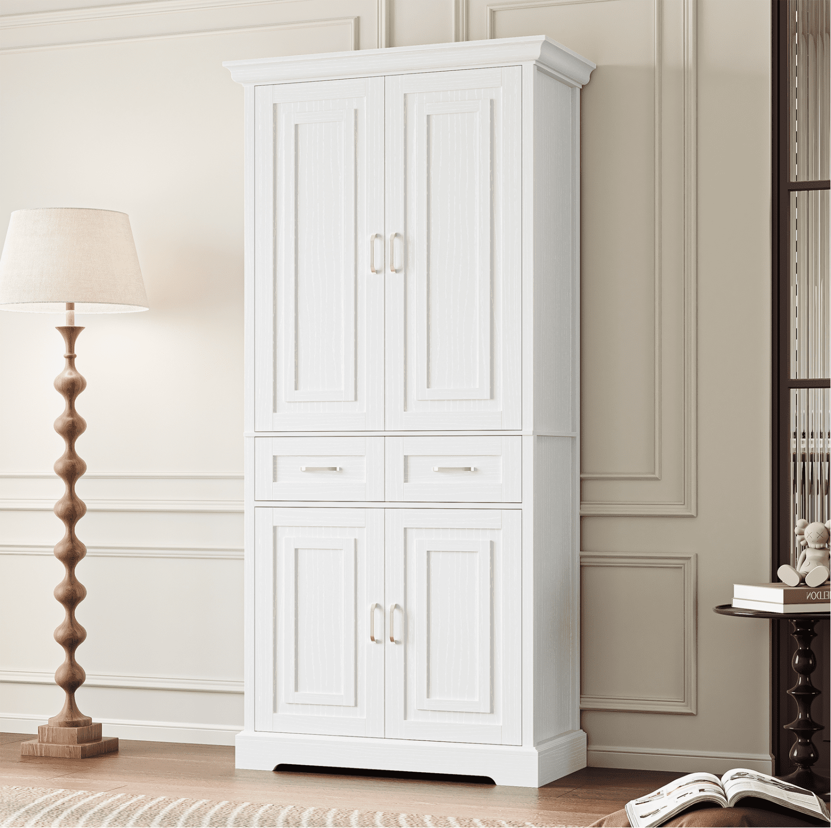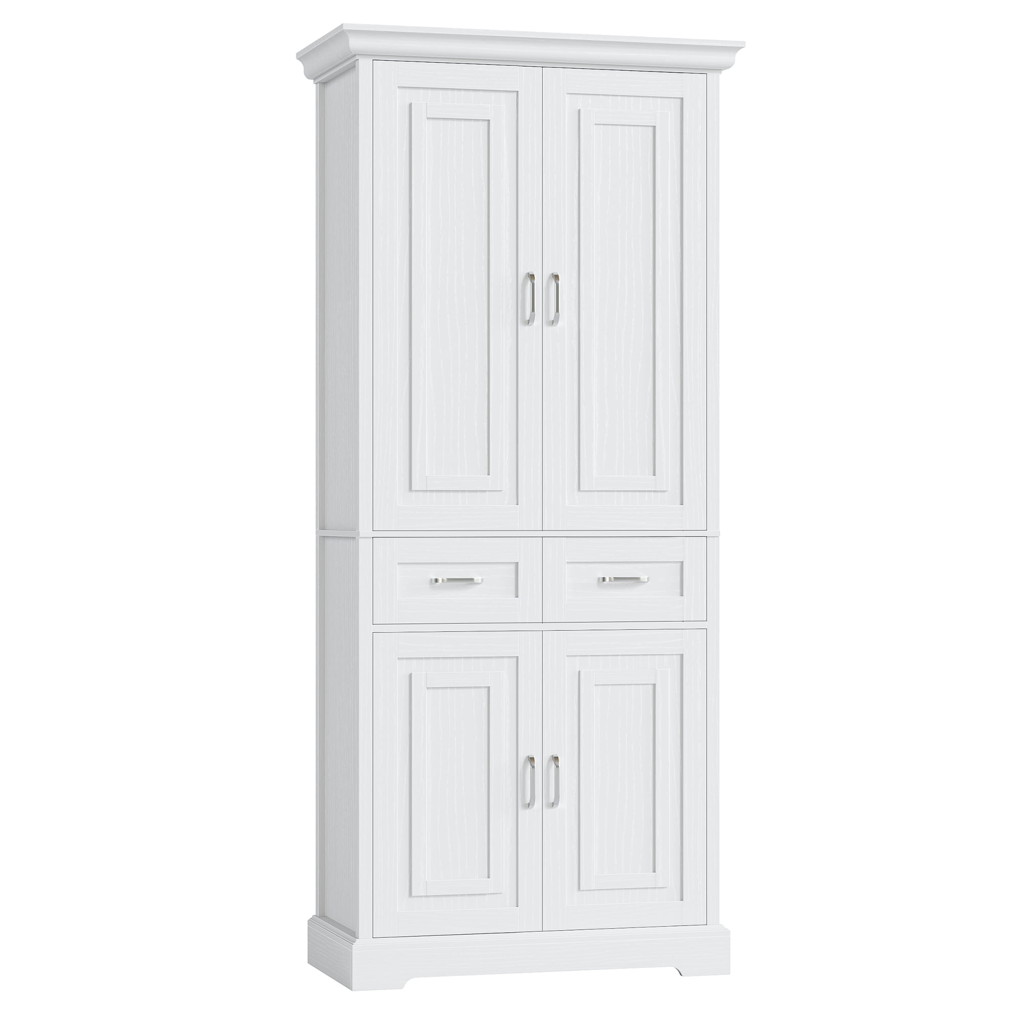 Homfa 70.9” Tall Kitchen Pantry with 4 Doors, 2 Drawer Modern Freestanding Storage Cabinet for Dining Room Living Room, White