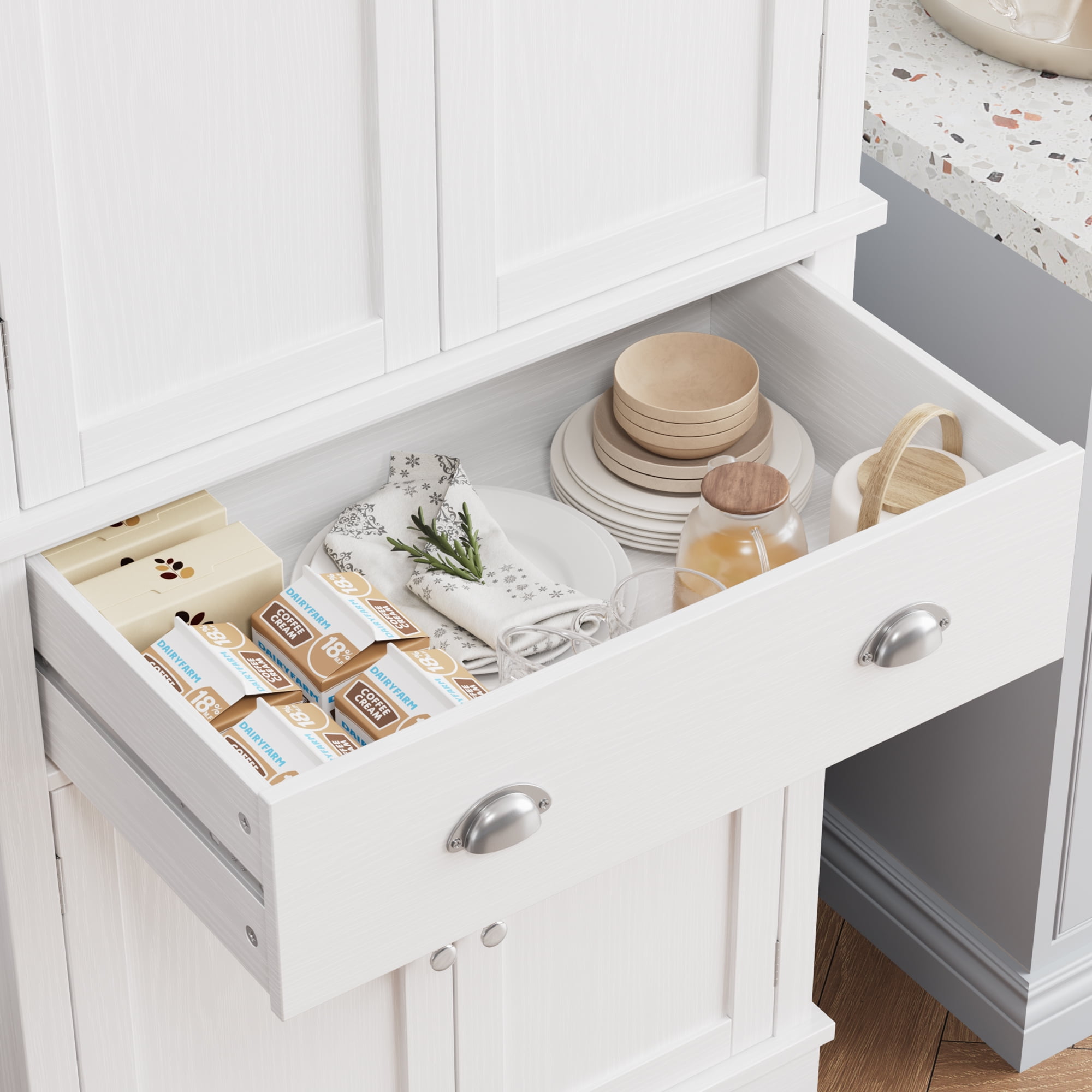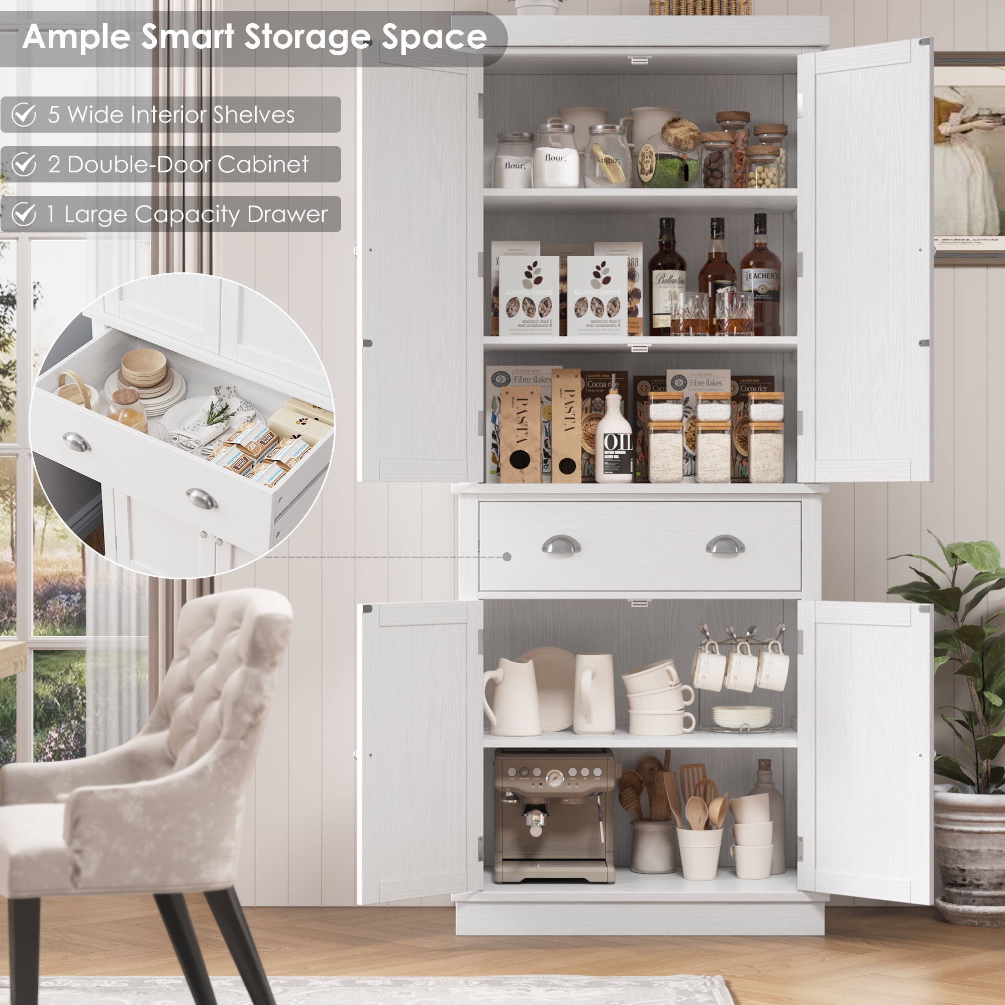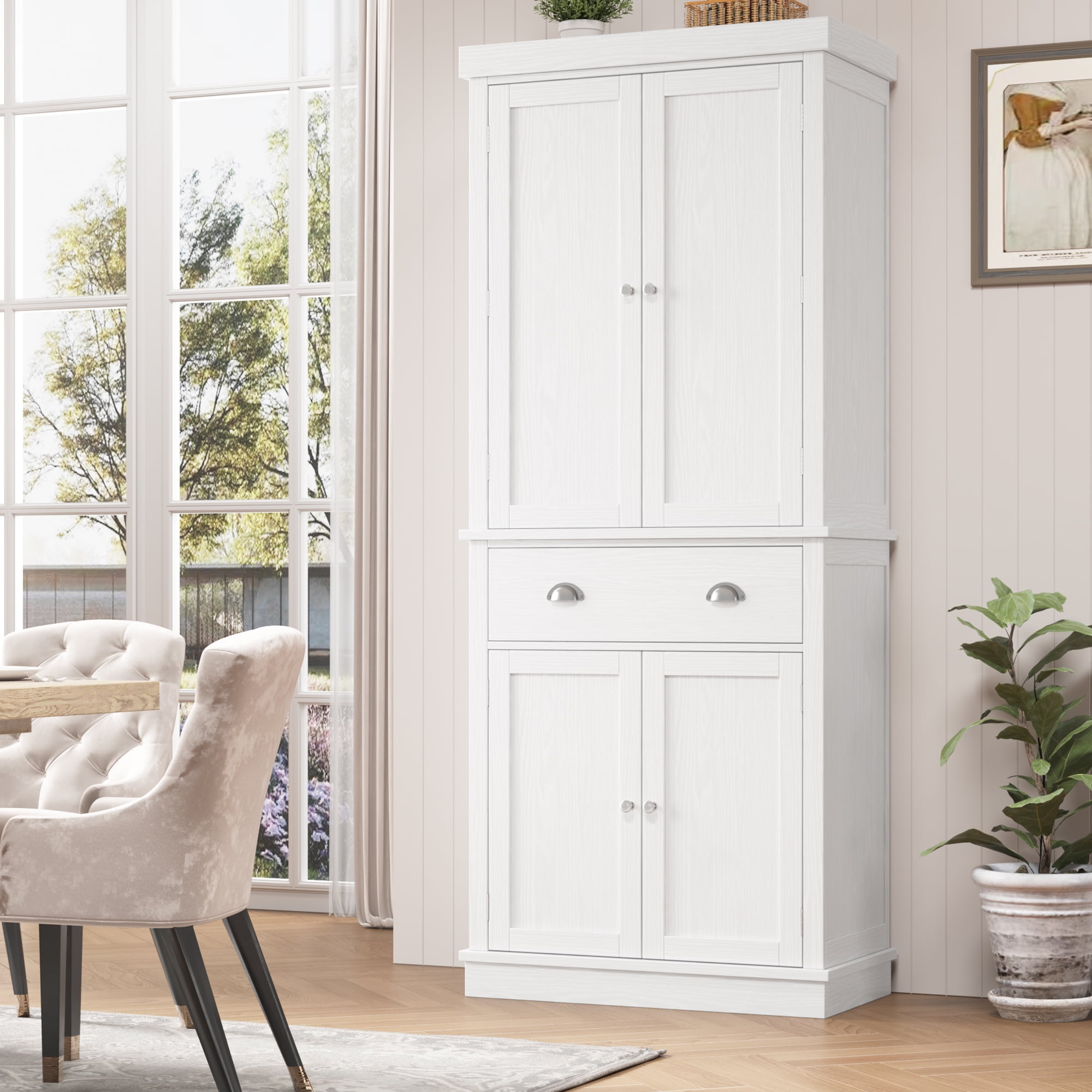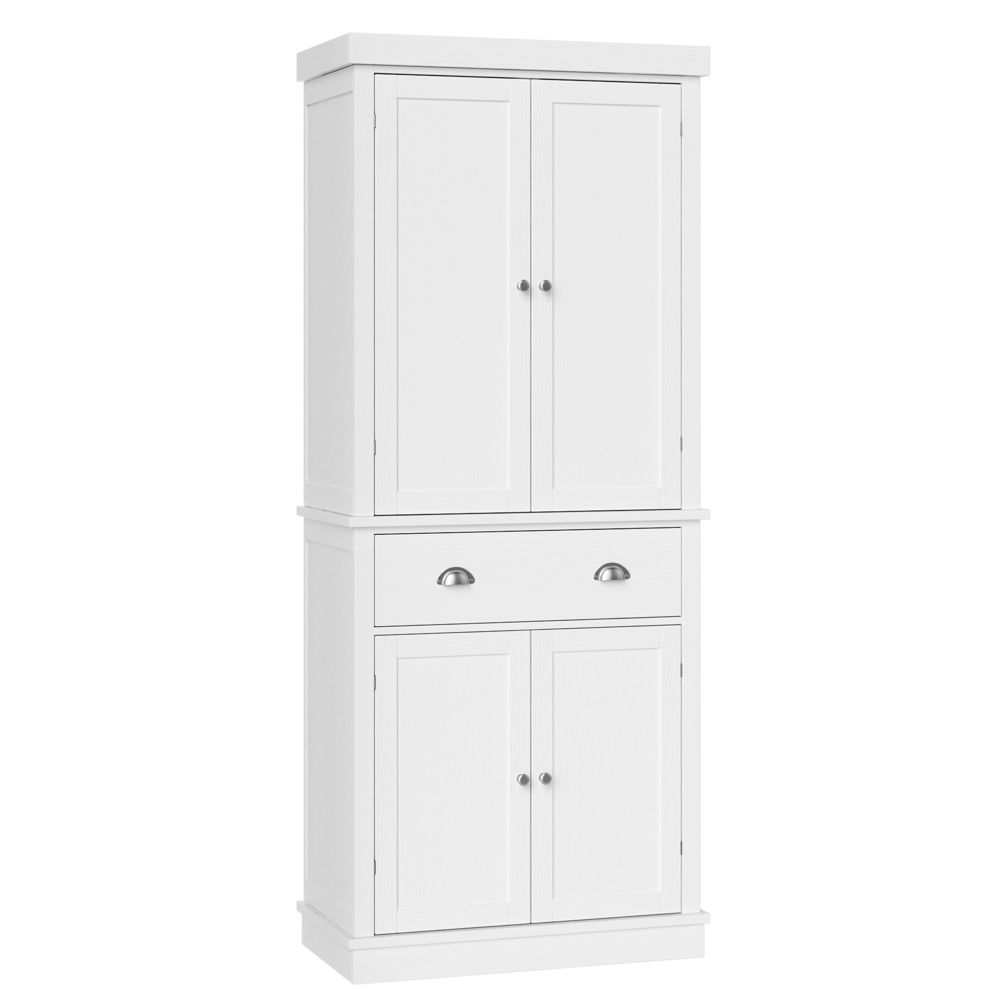 Homfa 72.4” Tall Kitchen Pantry with 4 Doors, Large Drawer Shelves Wood Pantry Storage Cabinet for Dining Room Living Room, White