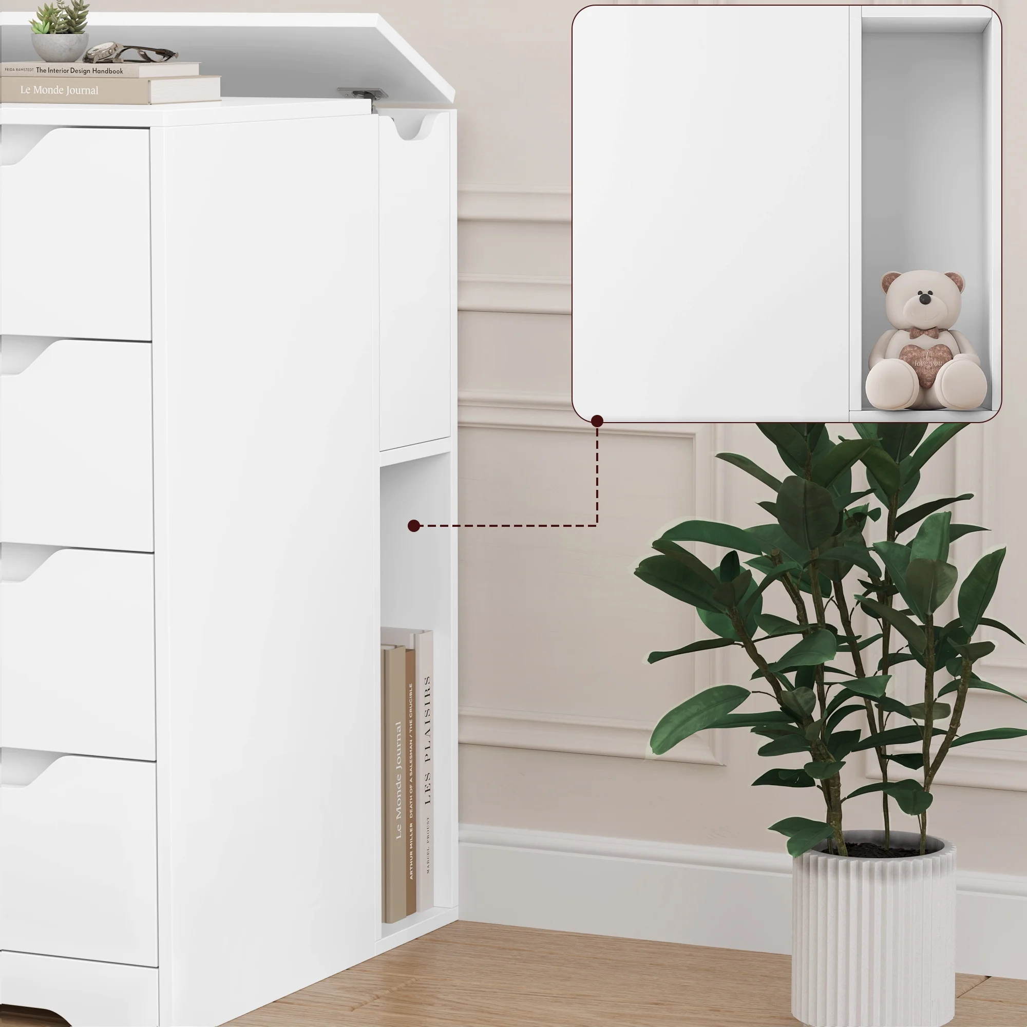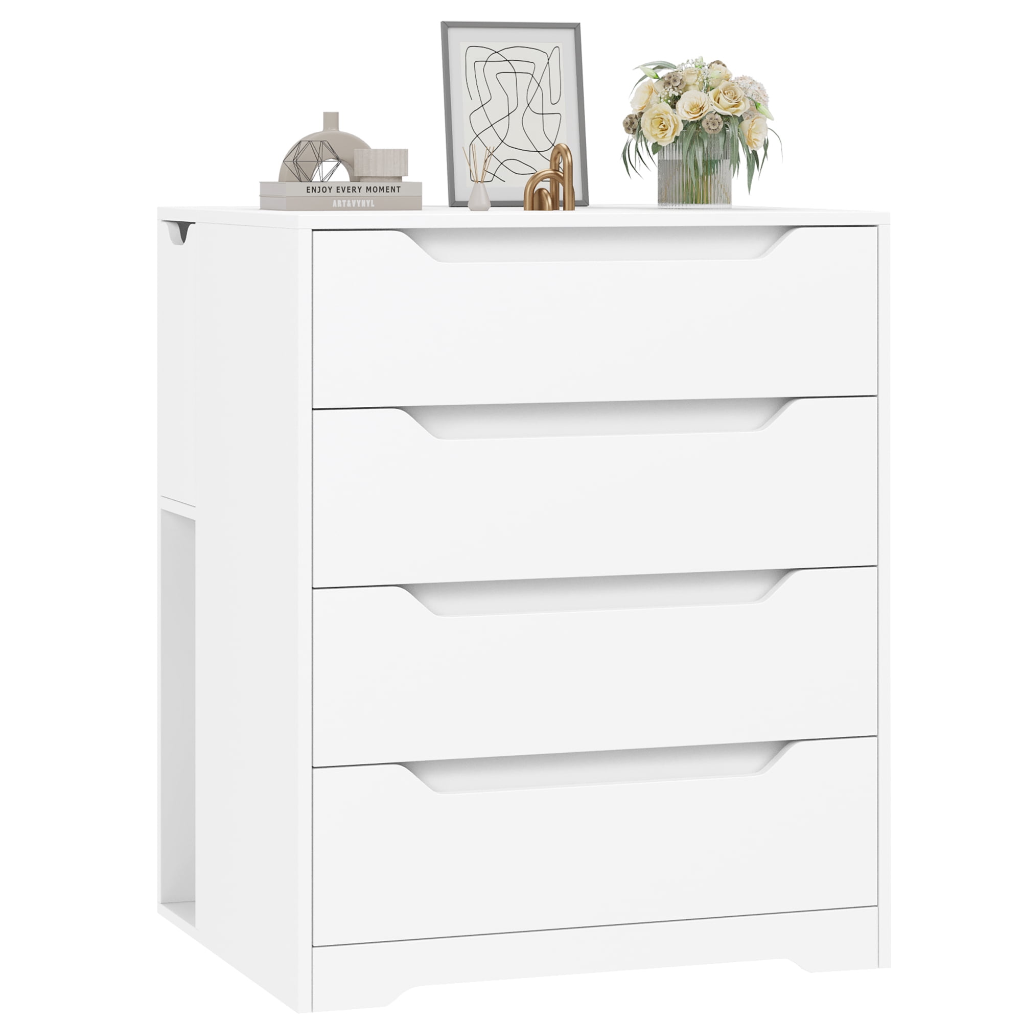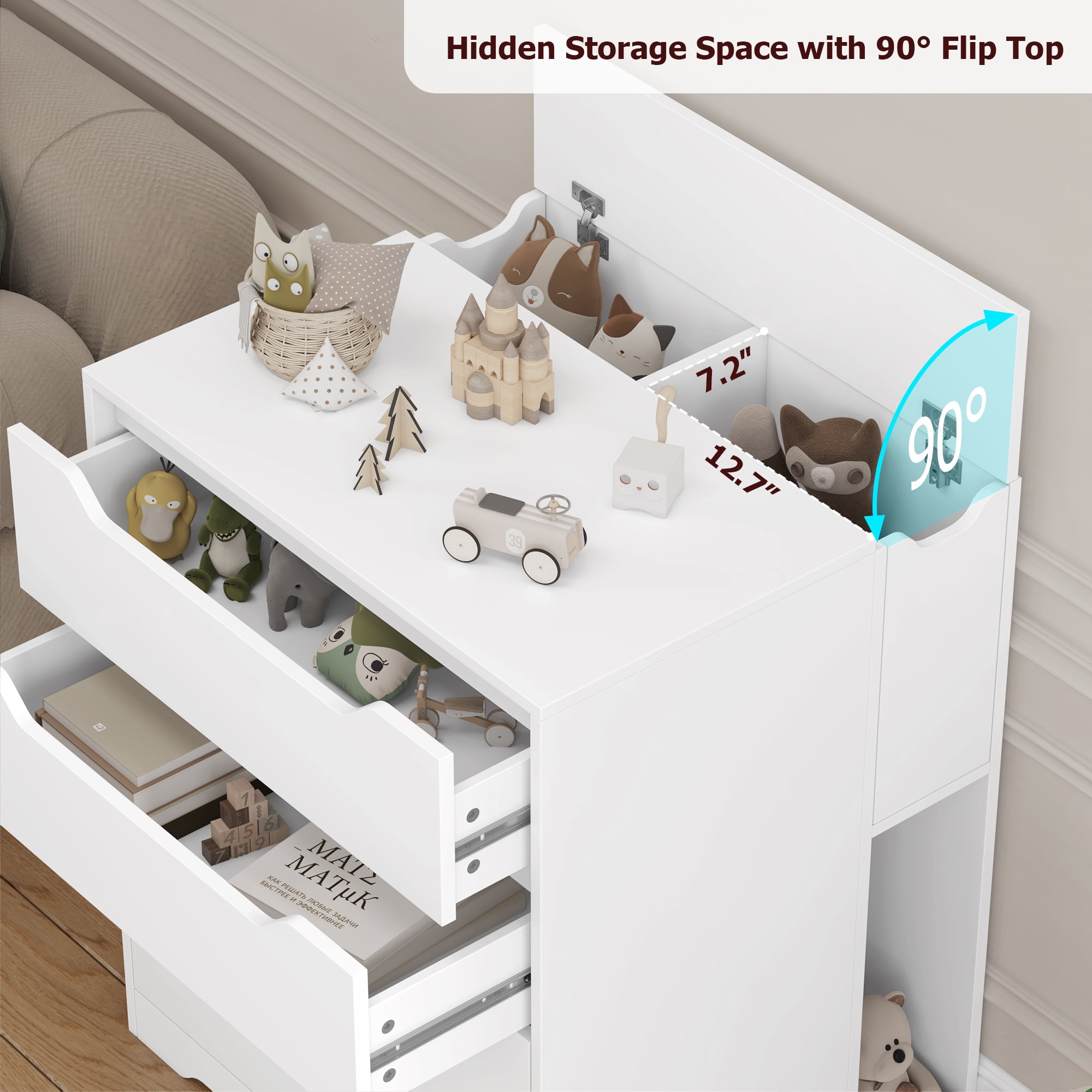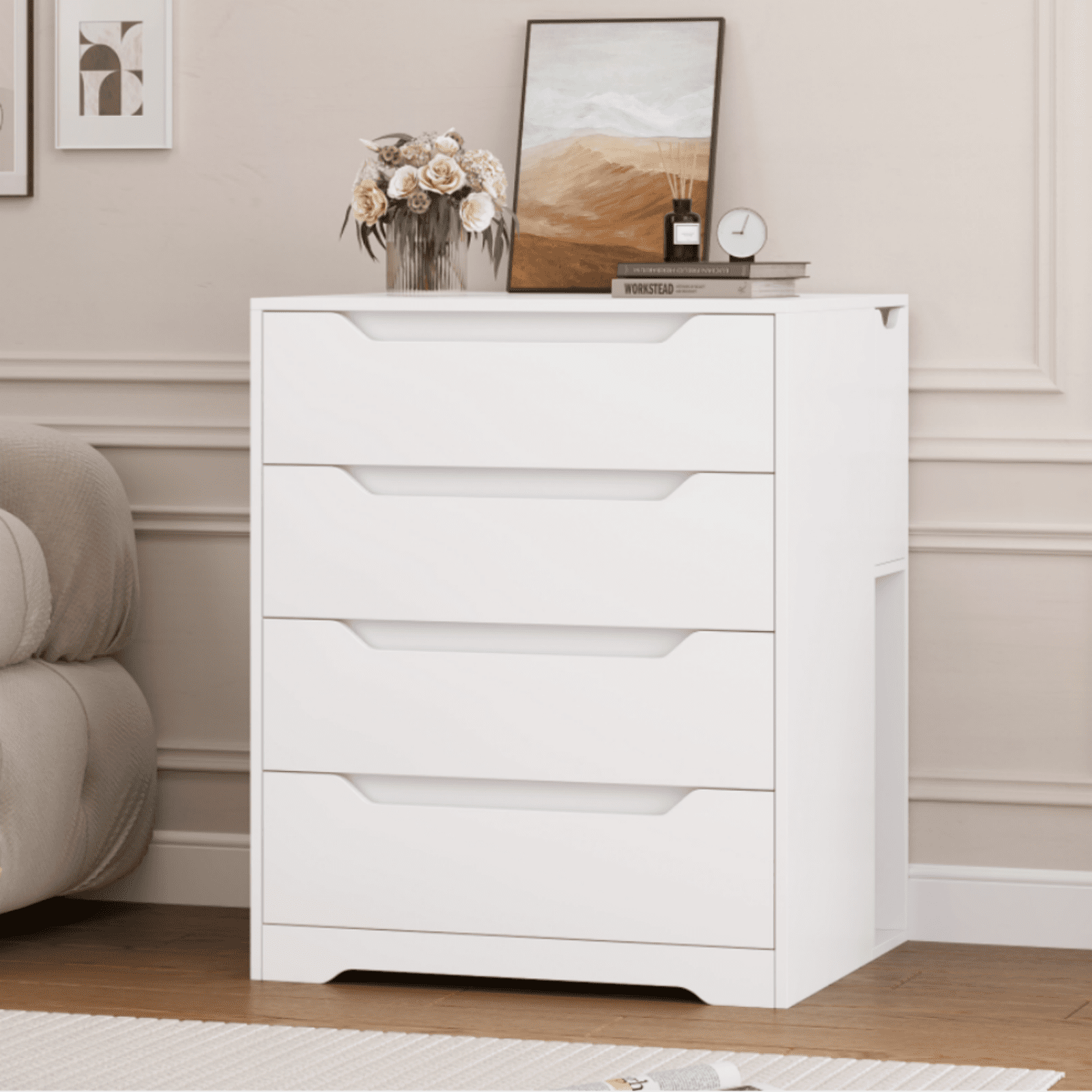 Homfa Compact Four-Drawer Dresser with Flip Top, Side Storage, White