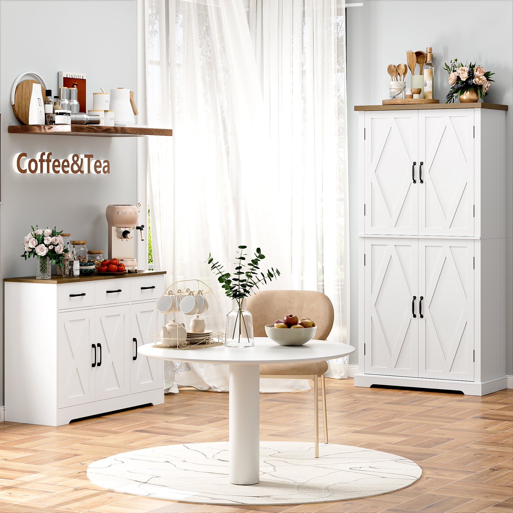 Homfa Farmhouse 63″H Kitchen Pantry Cabinet with Adjustable Shelf, Modern Wood Storage Cabinets for Small Space Department, White