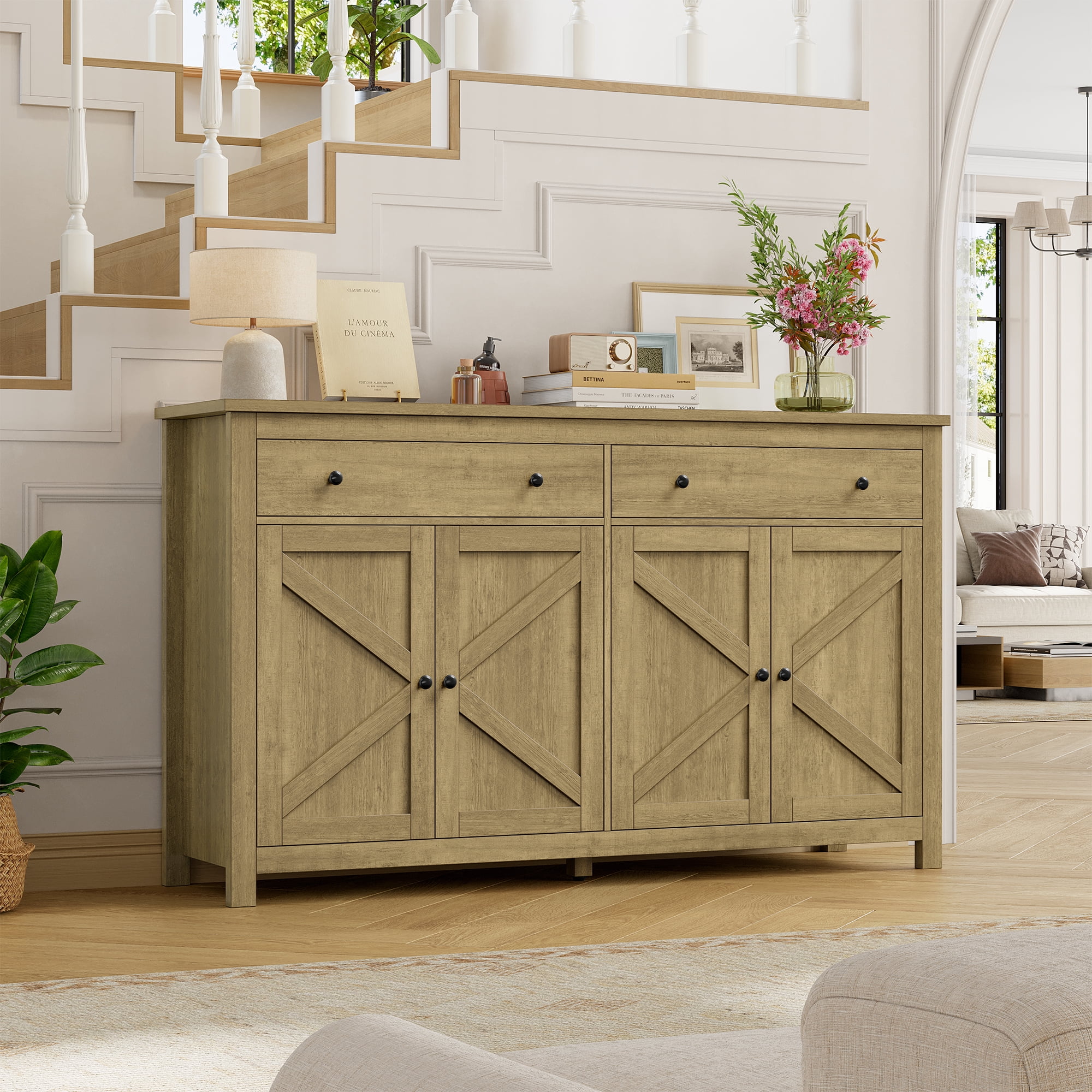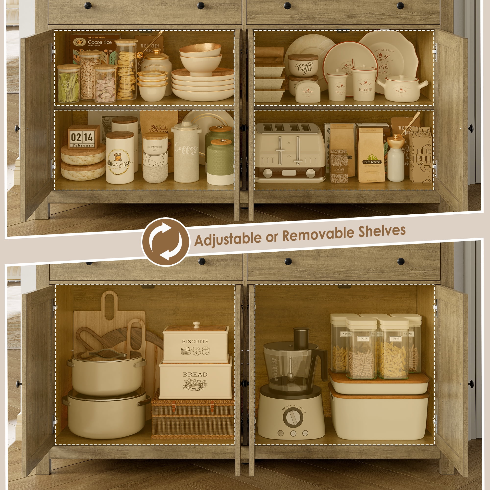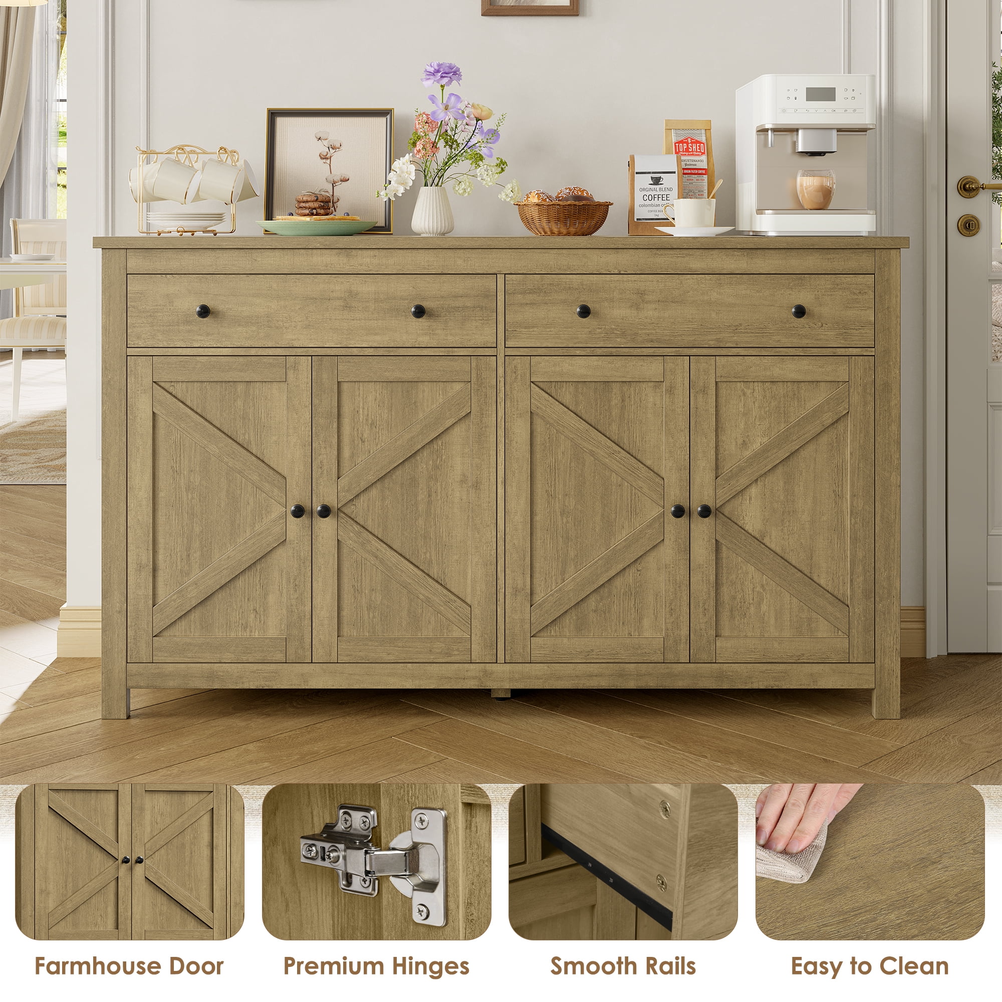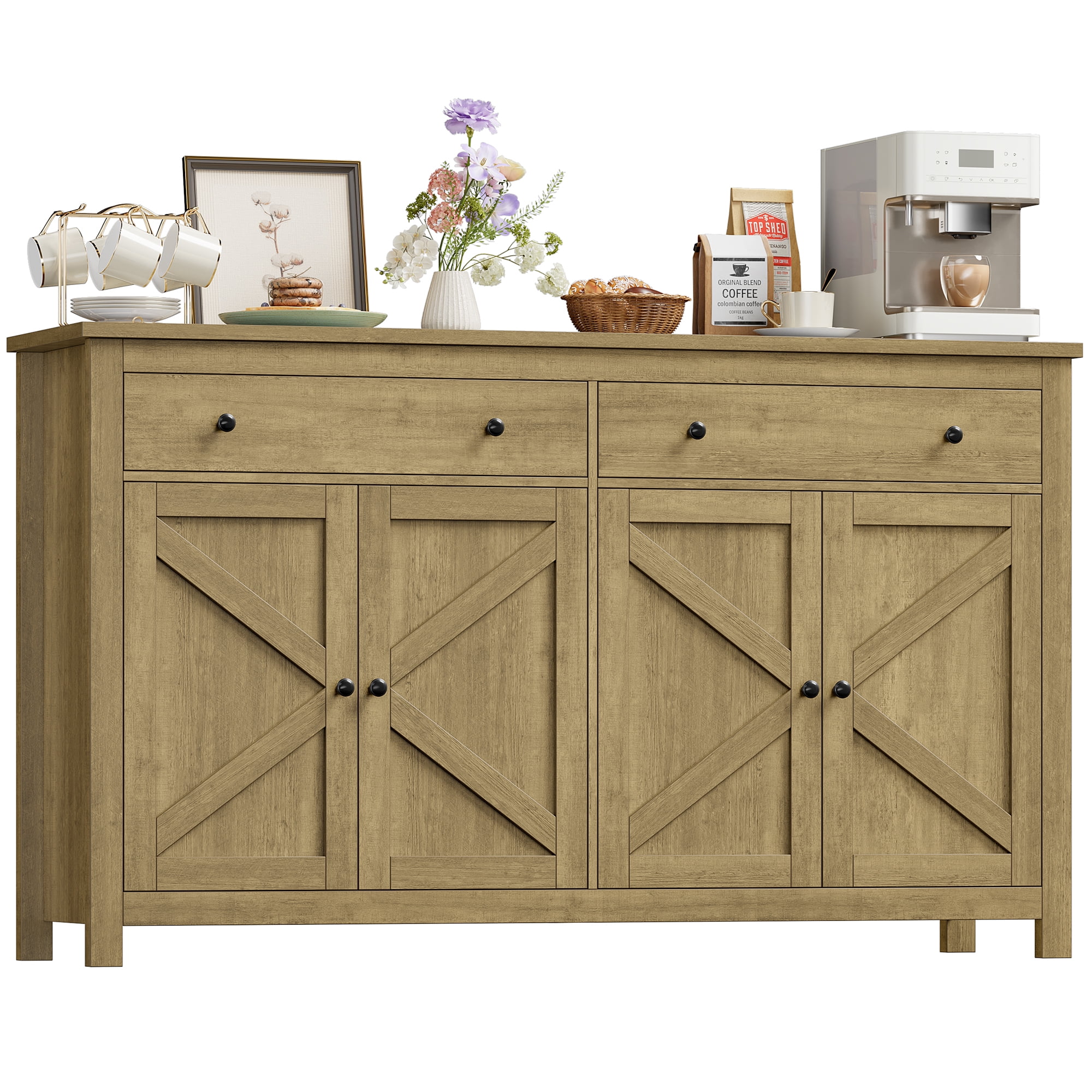 Homfa Farmhouse Kitchen Sideboard, 4-Doors 2-Drawers Wood Buffet Cabinet with Adjustable Shelves, Brown