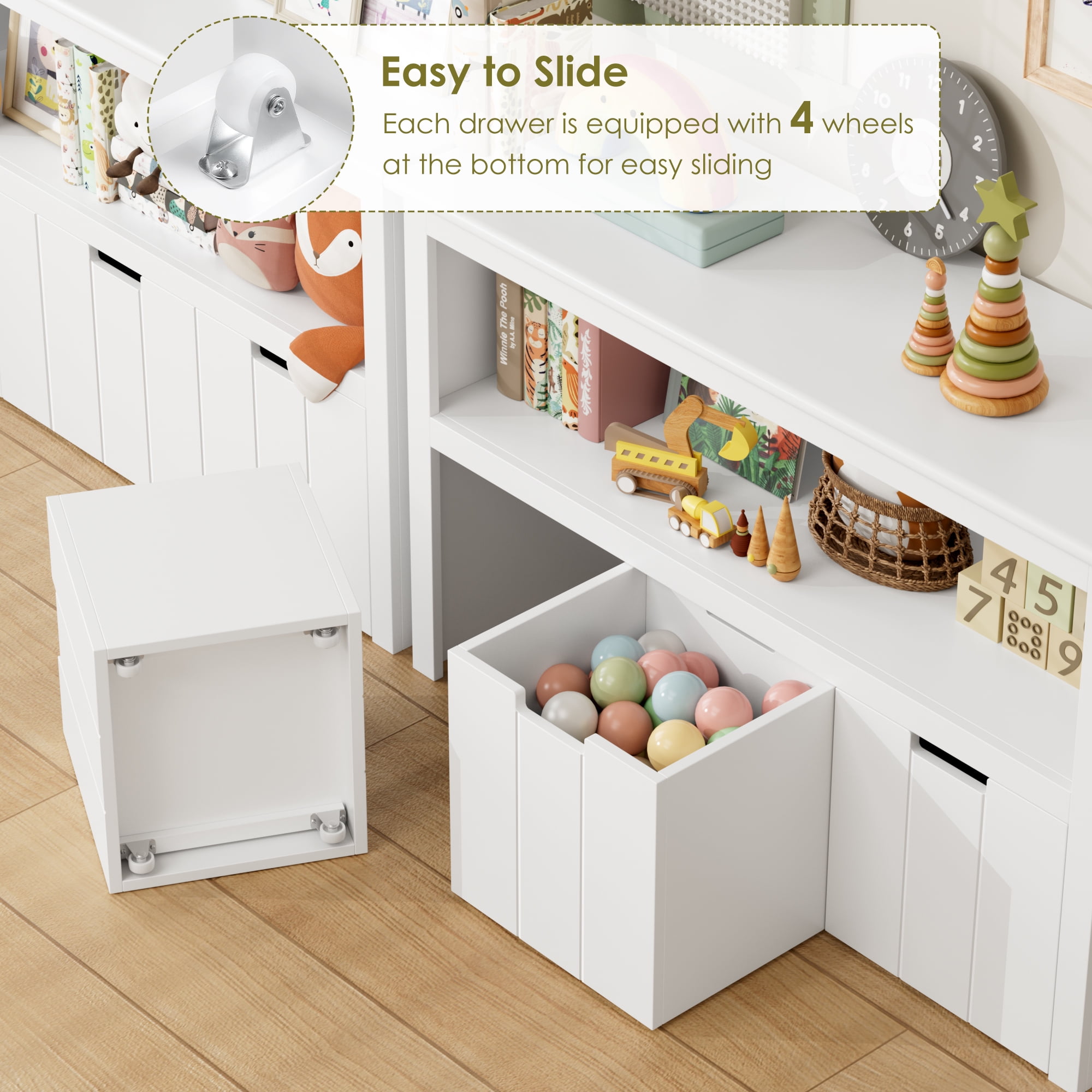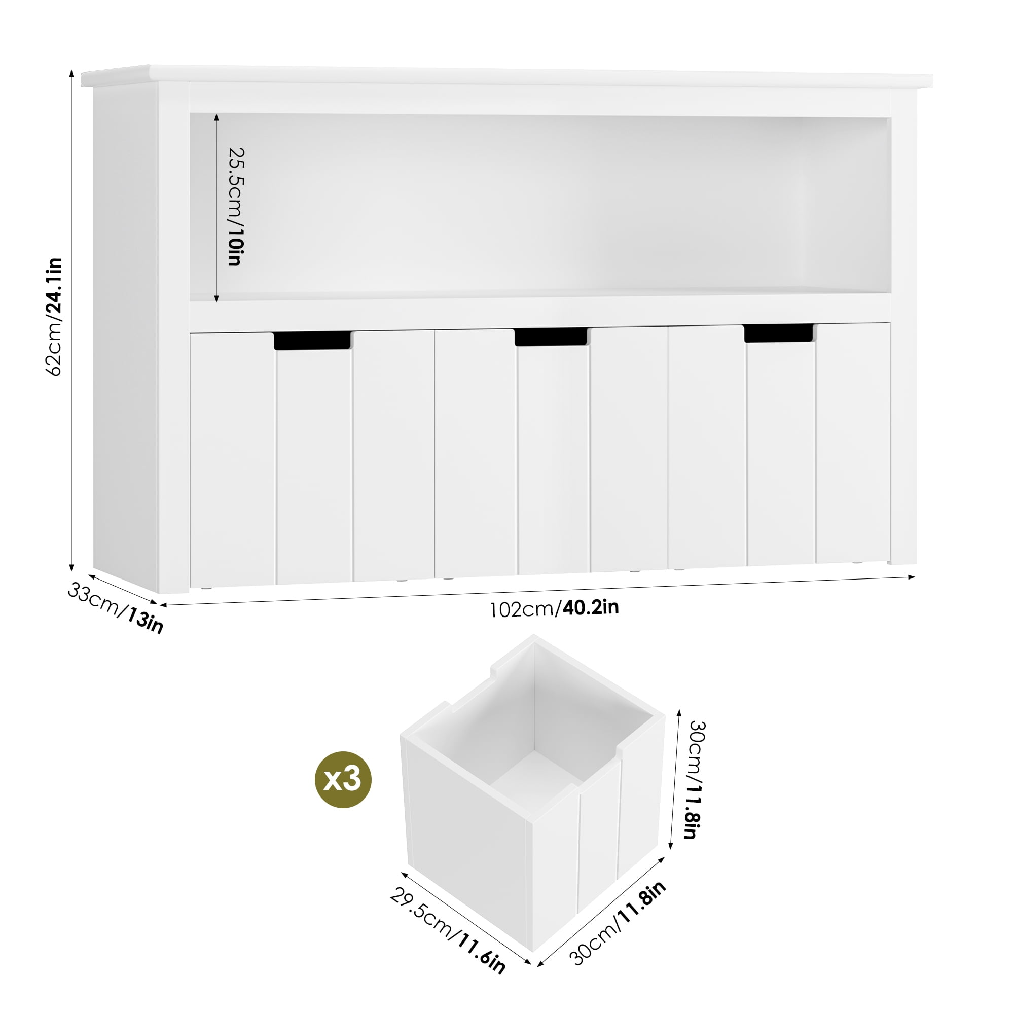 Homfa Kids Toy Storage, Cubes Storage Bins with 3 Drawers, White Toy Box with Shelves and Wheels
