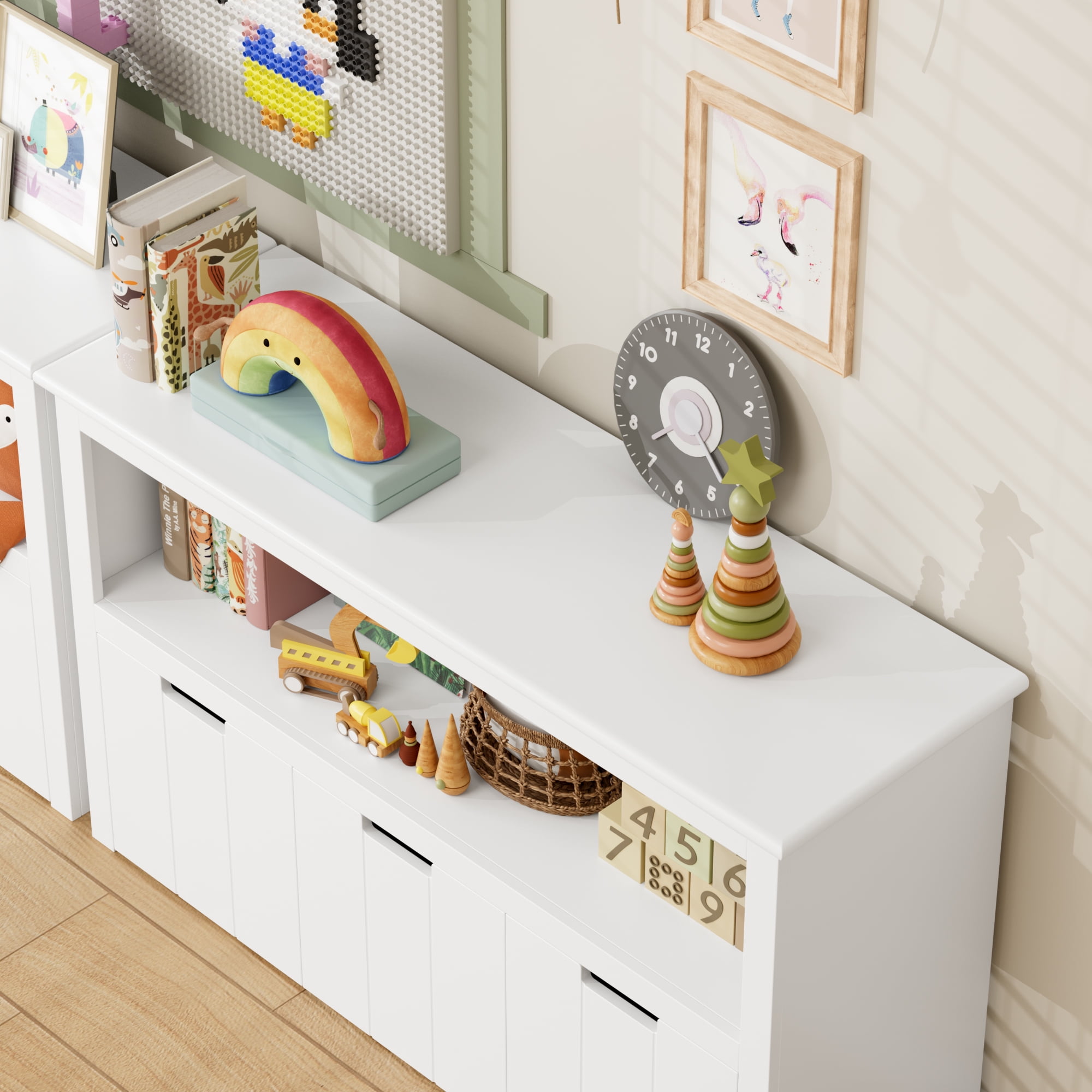 Features 【Best Gift for Kids】Homfa toy storage box is the perfect solution to keep your child’s room neat and organized, it develops good habits of organizing toys, which is a meaningful gift for your child. 【3 Creative Removable Drawers】Toy storage with 3 removable drawers provide ample storage space to make it a good habit for your child to pick up toys that are scattered around. 【Convenient Grooved Handle & Simple Line】Our toy box is made from hardwearing MDF with a clean white finish to complement classic and modern interiors. A groove at the upper end of the front panel of each drawer, so it’s easy to pull the drawers out of the storage chest. 【Solid Metal Omni-directional Wheels】There are 4 omnidirectional wheels under the drawers of the toy chests and toy storage so you can move it easily and freely. Metal wheels make drawers last longer. [NOTE!!: The wheels on the drawer cannot move on the carpet.] 【2-in-1 Kids Toy Storage】This toy chest can not only be used as a toy storage, but also as a small table for the baby. After taking out the movable drawer, the baby can write homework and draw pictures here. 【Easy to Assemble & 24/7 Customer Service】The toy storage organizer with drawers comes with all mounting hardware and detailed instructions, 1 adult can complete it easily in 20 mins. 24/7 quality customer service so you don’t have to worry about lost and damaged parts. Specifications Material: MDF Color: White Overall Size: 40″ W x 13″ D x 24″ H Each Drawer Size: 11.7″ W x 11.7″ D x 11.6″ H Weight: 53.35 lbs Weight Capacity: 80 lbs Package Contents 1 x Kids Toy Storage 1 x Assembly Kit 1 x Instructions