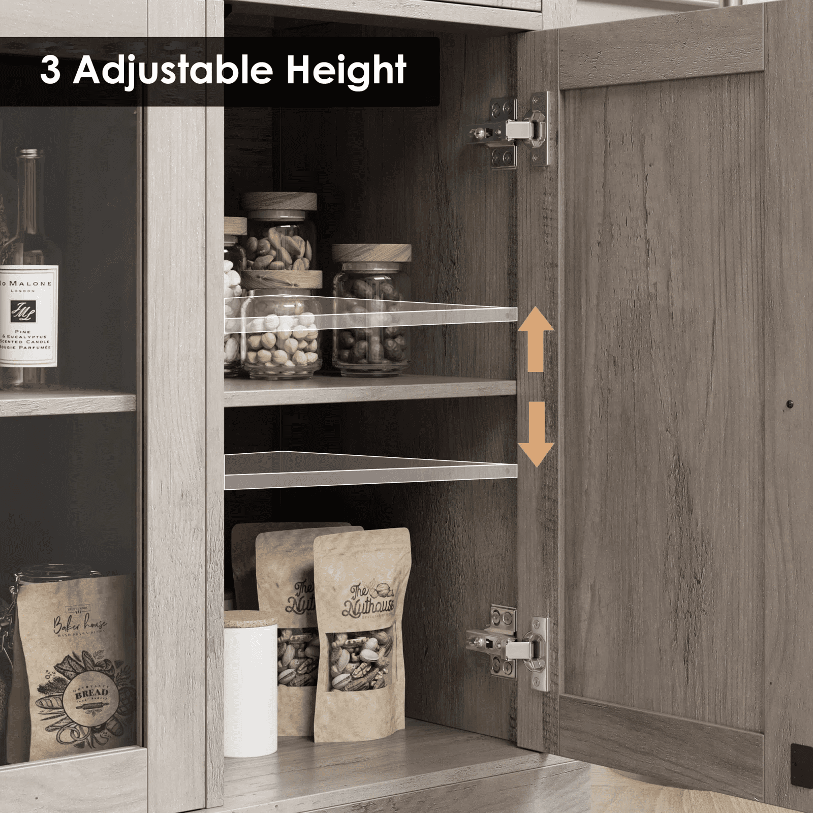 Homfa – Create a comfortable life! This Homfa kitchen buffet cabinet with 3 drawers and a 4 door cabinet interior shelf with adjustable board, which is and made of sturdy board, will meet your different storage needs perfectly, especially in your living room, kitchen, and coffee bar as your nice storage assistant. Accompanied with premium metal round handles and clean lines, this modern farmhouse kitchen buffet cabinet with drawer will do a good job in matching your various decor style, meanwhile the glass cabinet doors could be organized in 2 ways, bringing you more joy in house decor. * Attention: If any glass components in your order are damaged during shipping, please contact us with photos of the damaged items for replacement Explore more Homfa Products