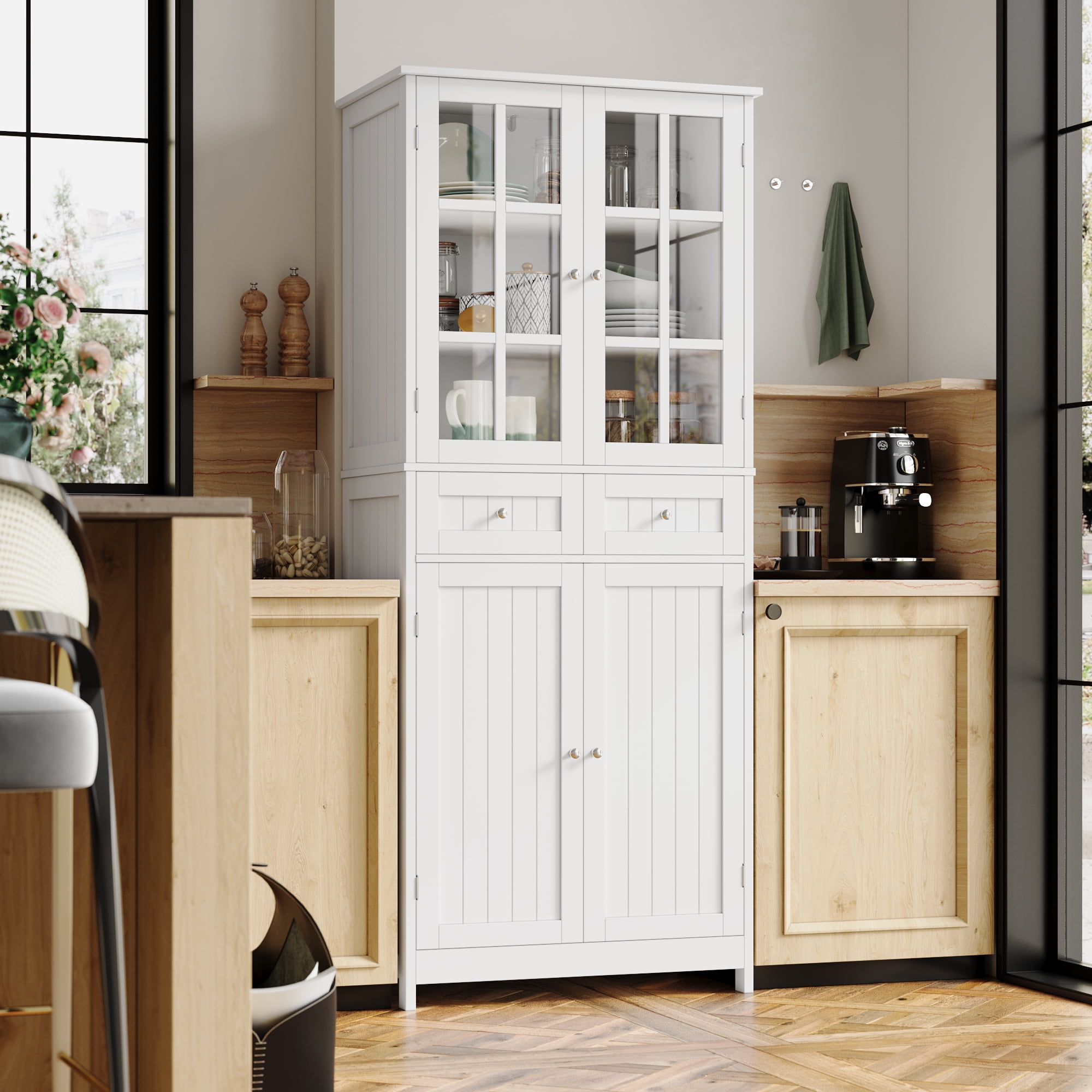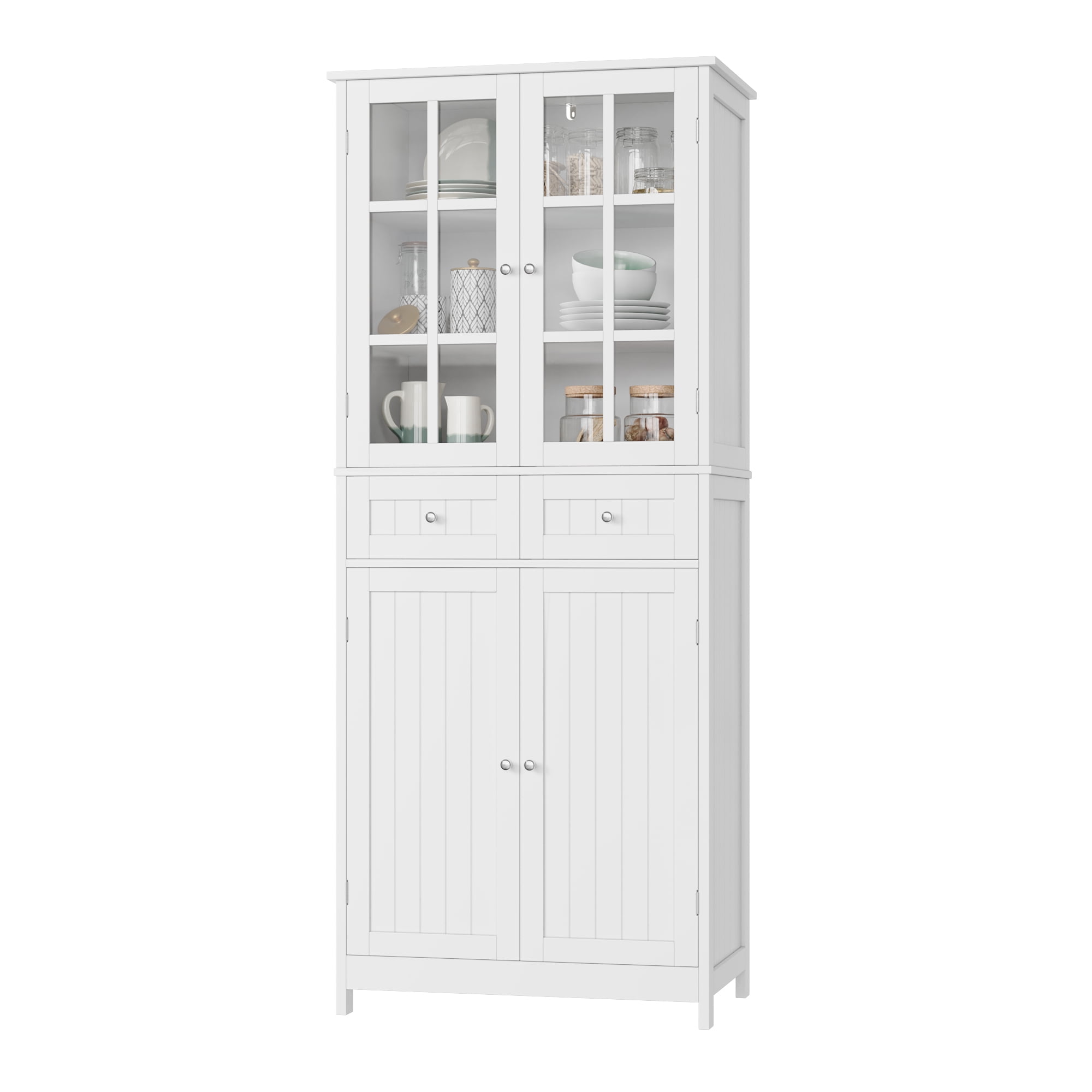 Homfa kitchen Pantry Cabinet with Glass Doors, 71” Tall Storage Cabinet for Dining Room Living Room, White