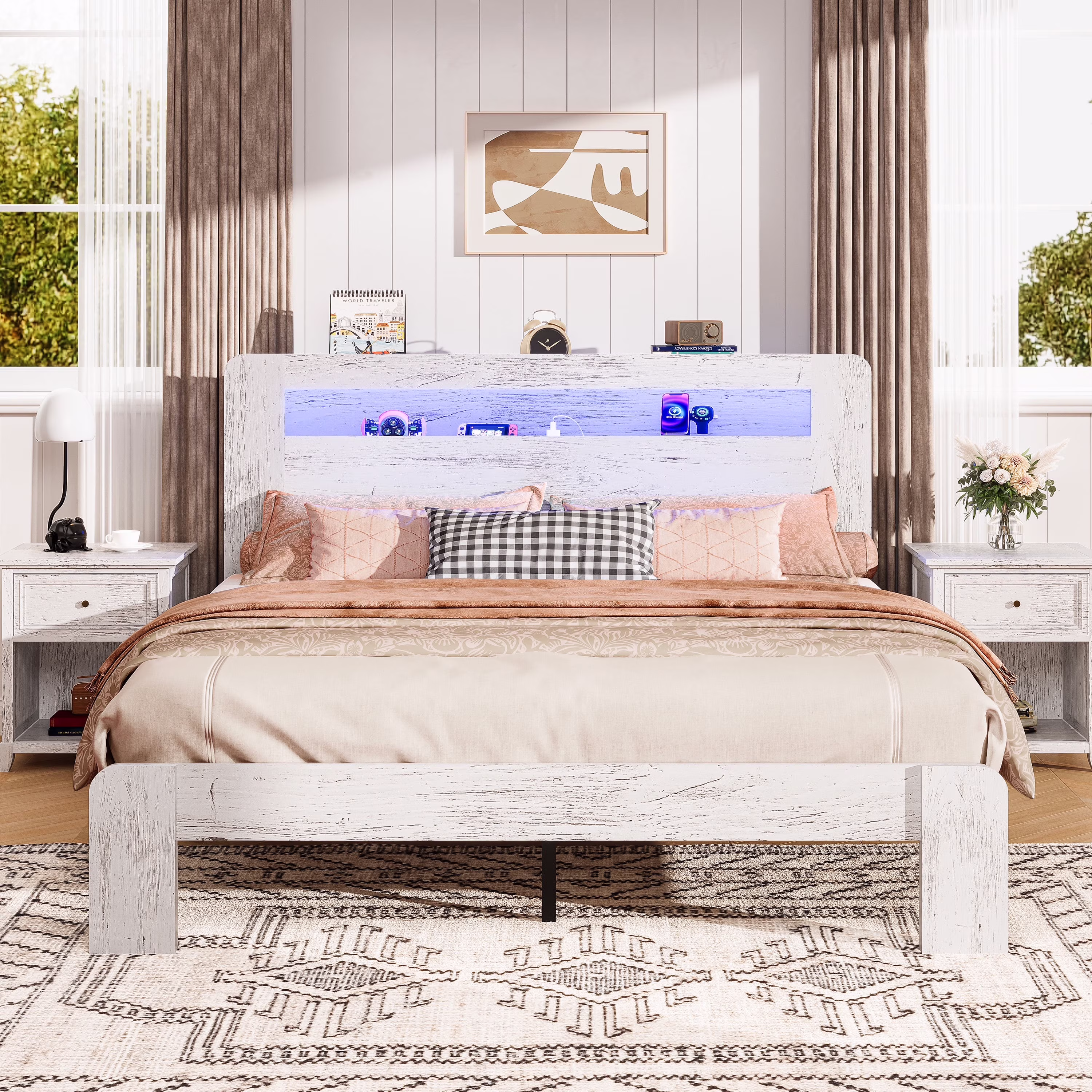 Features: 【54.3” Curved Wing-Back Headboard】 Classic tufted button design with 54.3” tall grand headboard, this queen size bed frame will bring the elegance of luxurious accents to your bedroom. 【Skin-friendly Velvet Upholstered】 The headboard is wrapped in high-quality, skin-friendly velvet tufted and filled with queen and soft high-density sponge to provide you with comfortable back support. 【Weight Capacity 850 Pounds】The queen size tufted platform bed frame has 12 solid wood slats and a metal support structure system, no box spring is needed. Recommended mattress height: 8-14”. 【Quiet & Noise Free】We use silent strips under all slats to prevent squeaking from the friction between the wooden slats and the metal frame, bringing you every quiet night. The tall tufted headboard is soft and comfortable to lean against. 【Easy to Assemble】The Velcro slat design simplifies the installation steps of this upholstered queen size platform bed frame. With the help of all mounting hardware and following detailed instructions, 2 adults can complete it easily in 1 hour. 【24/7 Customer Service】We provide quality and prompt customer support, if you have any questions about this queen size upholstered bed frame, please email us and we will reply within 24 hours. Specifications: Bed Size: Queen Color: Beige Fabric Material: Velvet, Foam Slat Material: Manufactured Wood Product Dimensions: 85.8″L x 63.4″W x 54.3″H Product Weight: 115 lbs Weight Capacity: 850 lbs Recommended Mattress Thickness: 8”-14” Height from the ground: 4.52” Assembly Required: Yes Package Contents: 1 x Queen Size Bed Frame 1 x Assembly Kit 1 x Instructions Manual