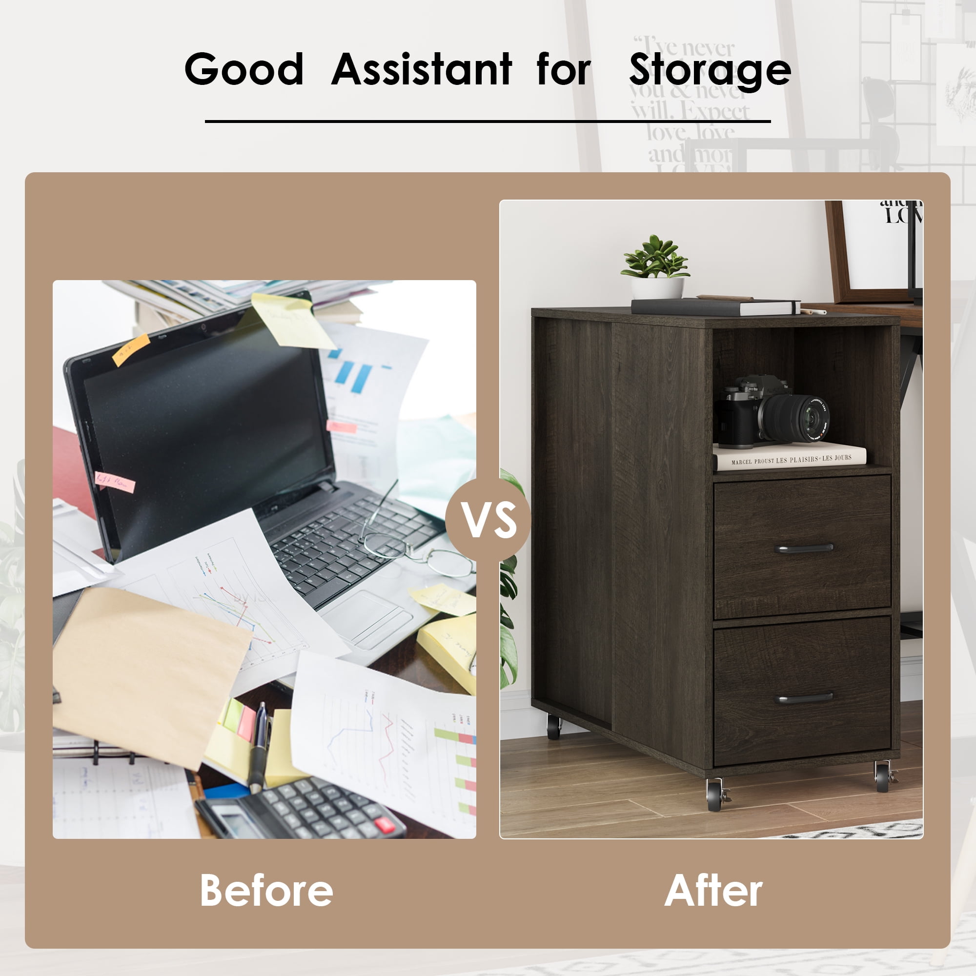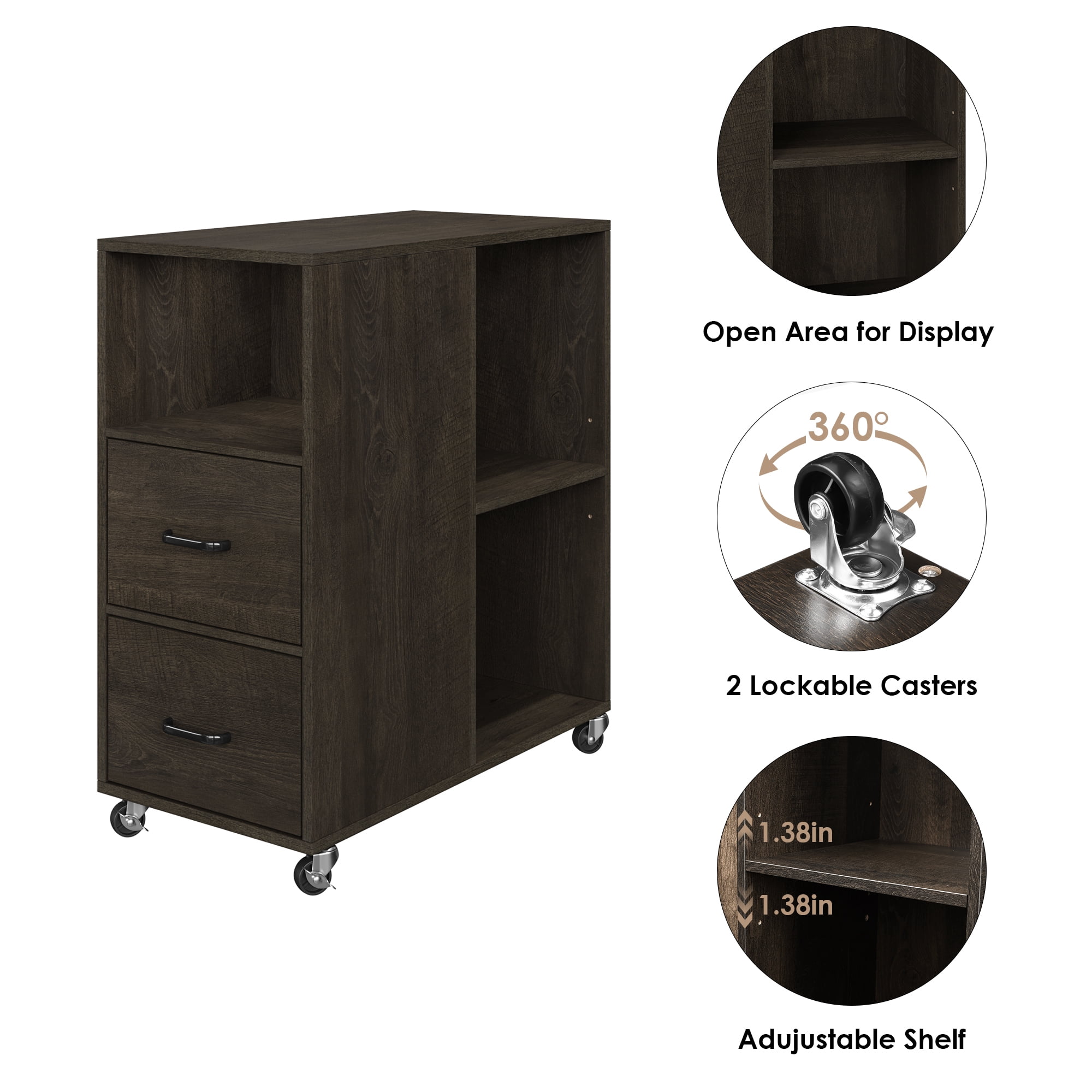 Homfa Side Table with 2 Drawers, Mobile File Cabinet Nightstand with Adjustable Shelf for Office Living Room, Dark Brown