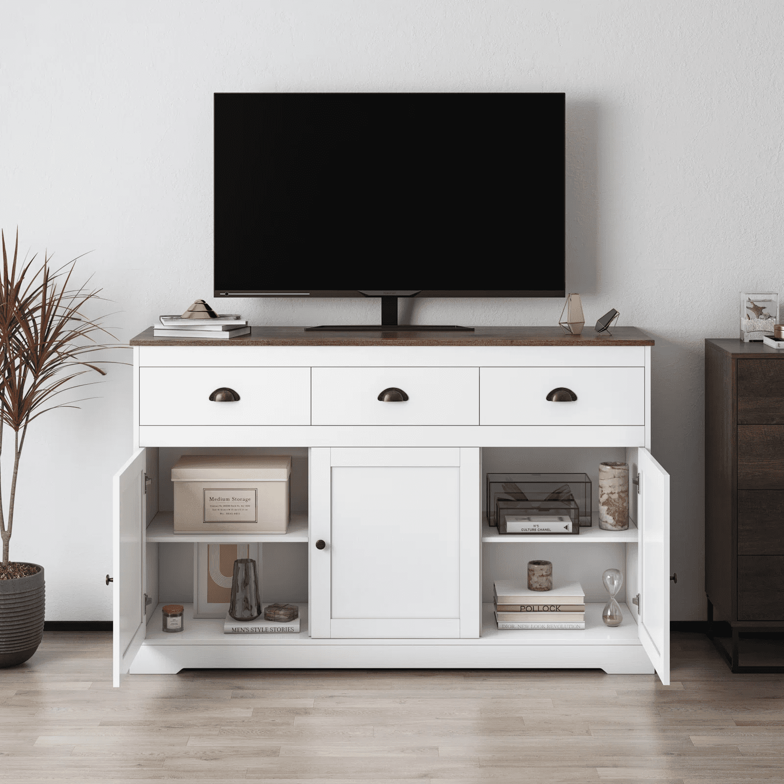 Homfa Sideboard Buffet Cabinet with 3 Drawers , 53.54” W Storage Cabinet with Adjustable Shelves for Kitchen Dining Room, White