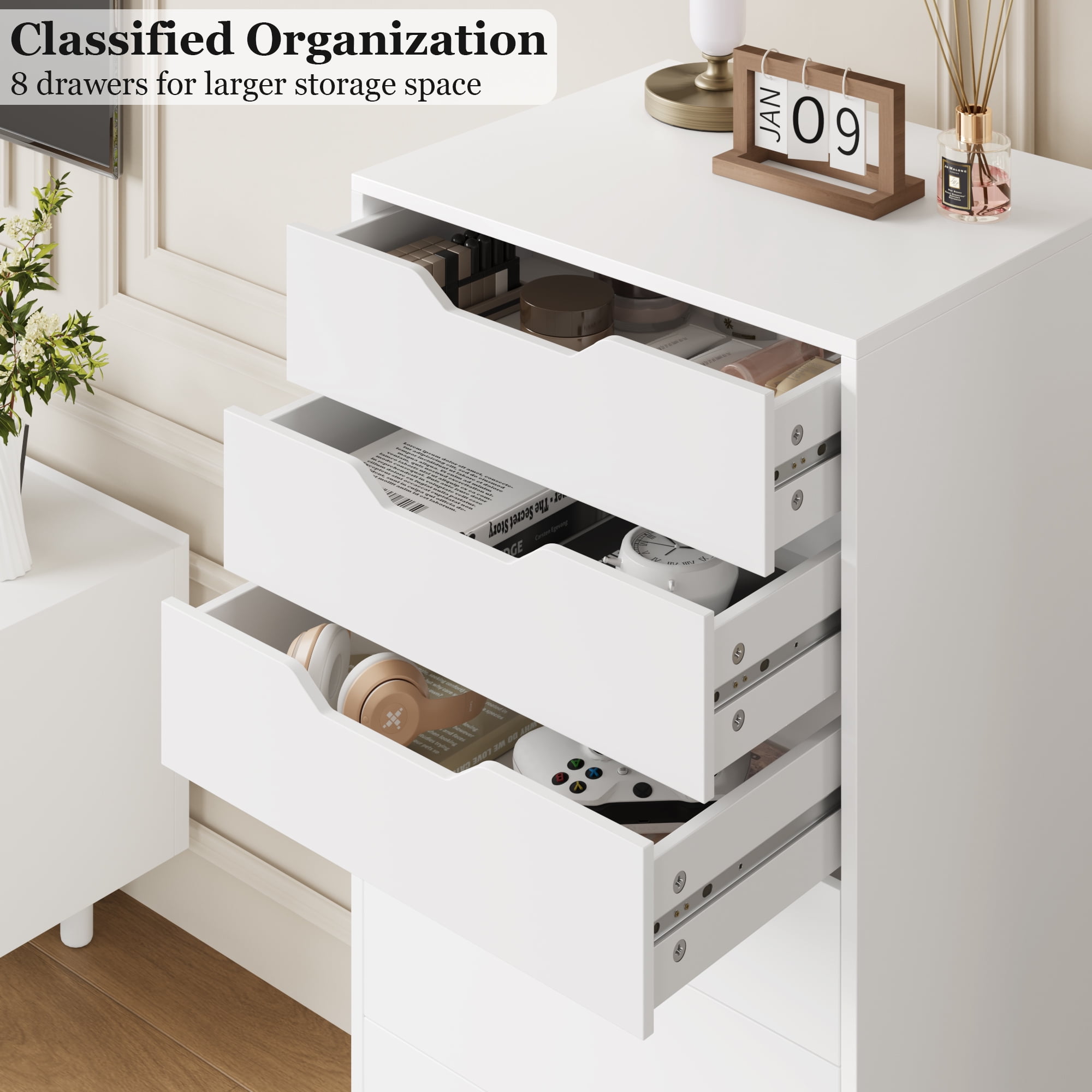 Homfa Vertical 8 Drawer Dresser, 44.5’‘H Modern Drawers Dresser for Bedroom Living Room, White