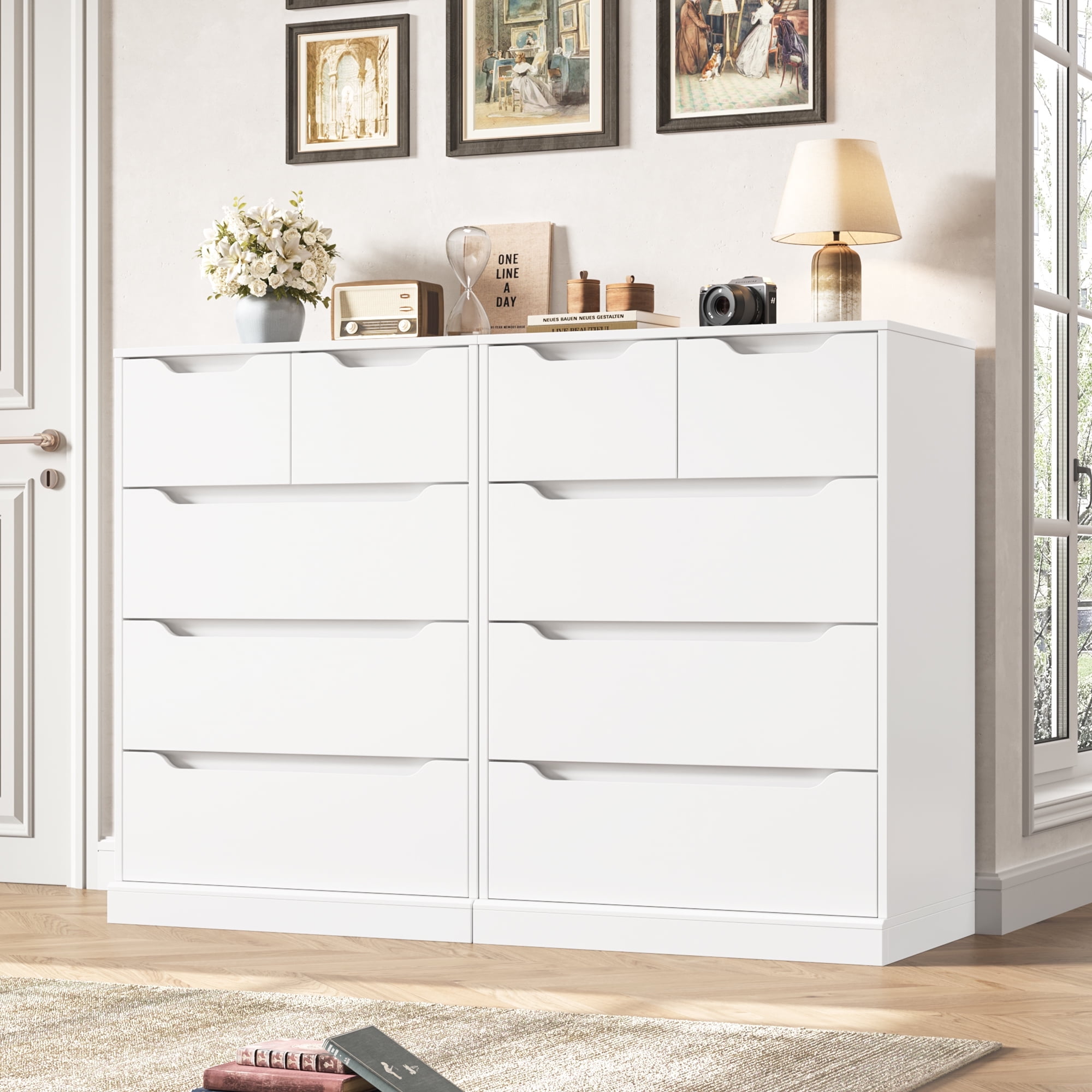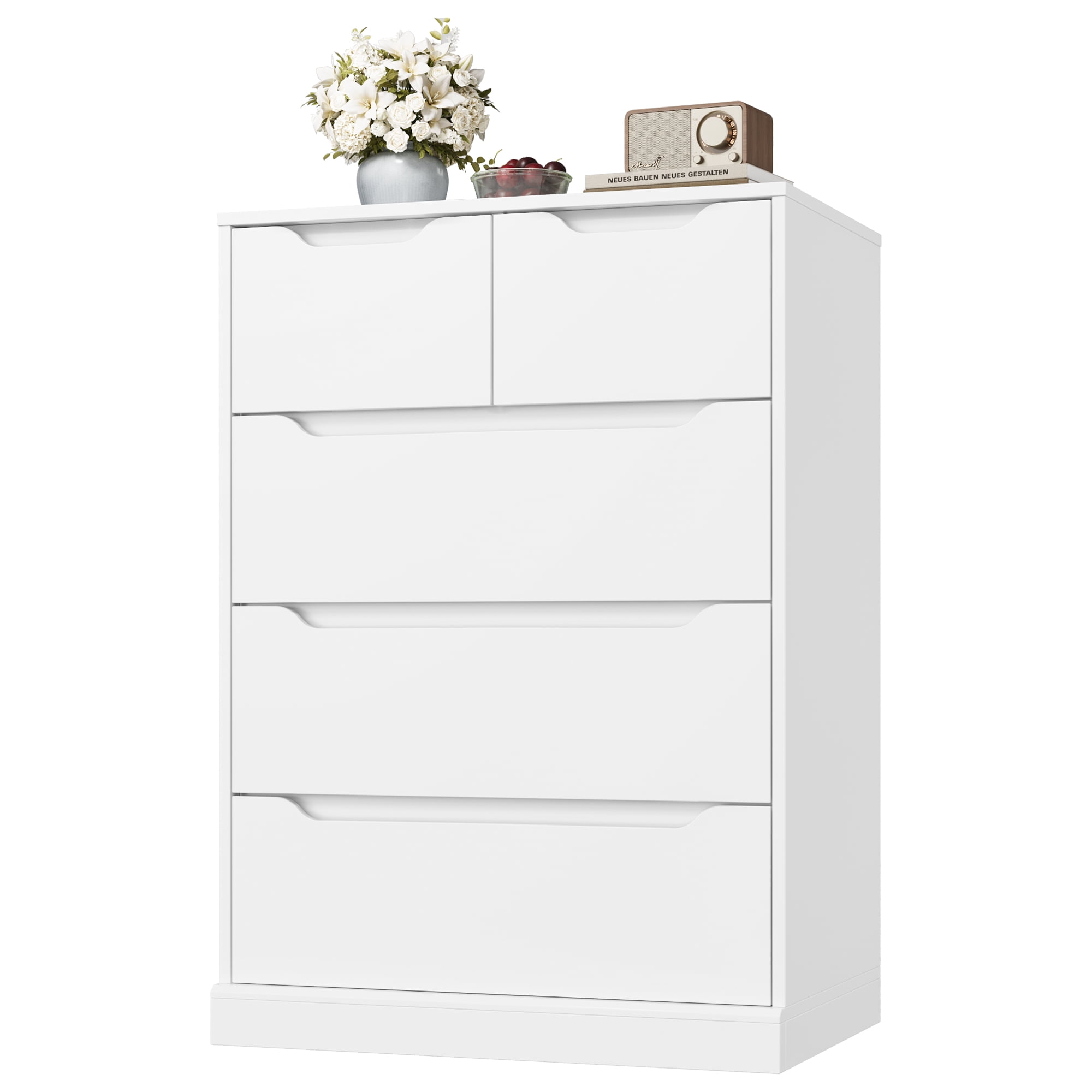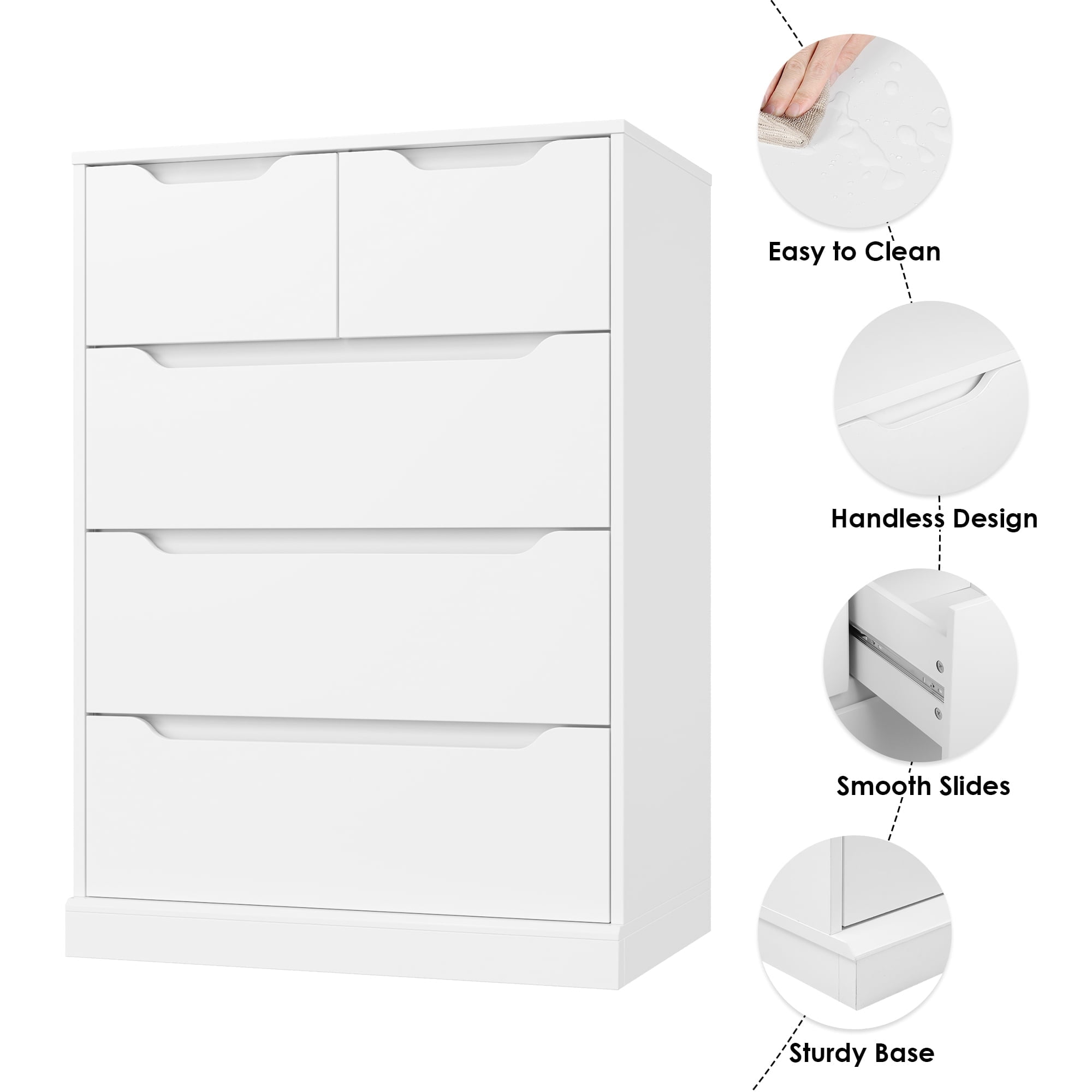 Homfa White Dresser for Bedroom, Vertical Chest of 5 Drawers Handleless Wood Storage Cabinet for Living Room