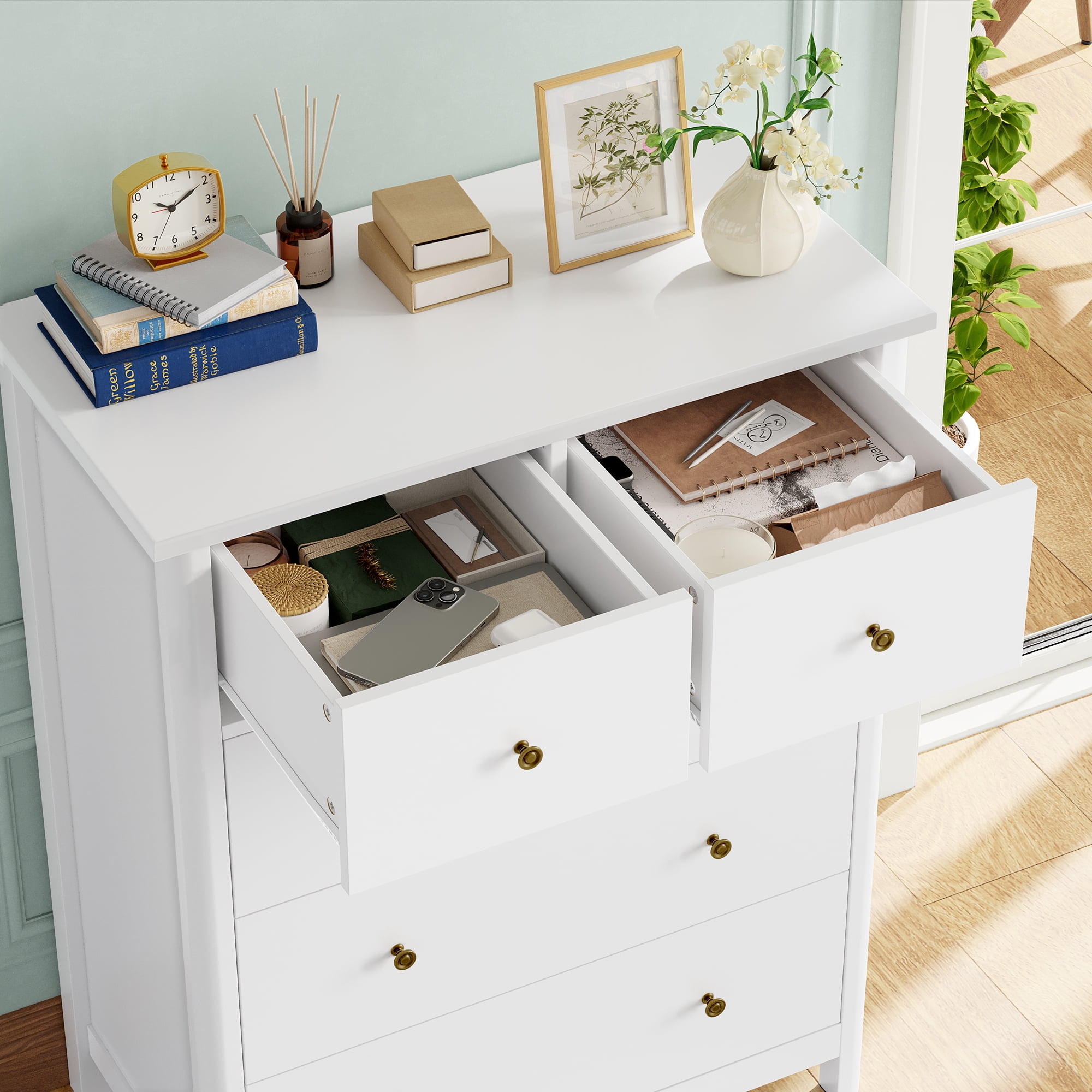 Homfa White Dresser of 5 Drawers, Dresser Chest with Easy Pull Handle for Bedroom, Living Room