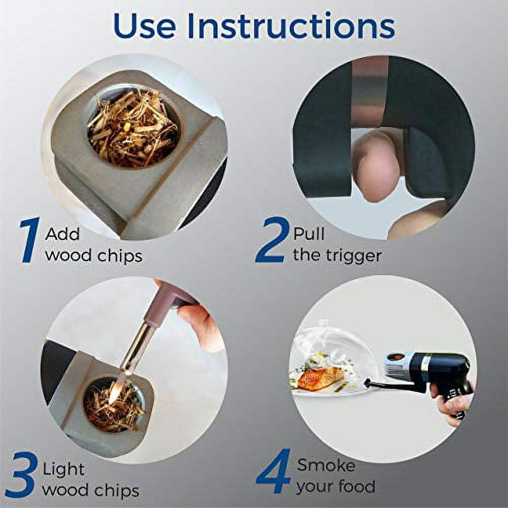 ✔️ COMPLETE SMOKING SET – Starter Kit Included 11 PCS – You get SMOKING GUN, convenient stand, Flexible hose, Disk LID, 4 flavors of wood chips, Nozzle for Bubbles, 4 x AA batteries, 3 extra mesh, tweezers for cleaning brush, screwdriver. Ready to use out of the box! Everything you need to try the best smoked food (Bubble Mixture is not included). ????PROFESSIONAL SMOKING GUN – With Metal burning Chamber and Metal Fan you can easily clean and maintain your new Smoke infuser. And with up to 2.3 m/s Fun Speed generates intense cold smoke that is easily absorbed into food and drinks for that tender smoky flavor ????EASY TO USE – Ergonomic Design perfectly fits in hand and a wide burn chamber helps to fast Lighting Wood Chips. Portable, convenient and easy to use Food Smoker will produce cold smoke and apply a delightful flavor to your grilled or sous vide meat, veggies, cheese, cocktails or salmon. ???? MULTIPURPOSE & GREAT GIFT – Meat, Fish, Cheese, Pasta, Whiskey, Cocktail – add a smoky flavor to virtually any food or Cocktail. And also you get regularly updated ONLINE RECIPES. This Food-smoker brings your weekend to new heights and makes you feel like a professional mixologist and chef. It also makes a useful gift for any close person in your life. Excellent gift choice for Father`s day and other occasions. ❤️ CUSTOMER SUPPORT&WARRANTY with our extended 1-YEAR WARRANTY you are 100% protected from defects or malfunctions. We are always here around you to resolve any arisen issue or answer any question you may have. It brings us joy to provide you with the highest level of support possible. Feel free to contact us anytime, we will be happy to help!