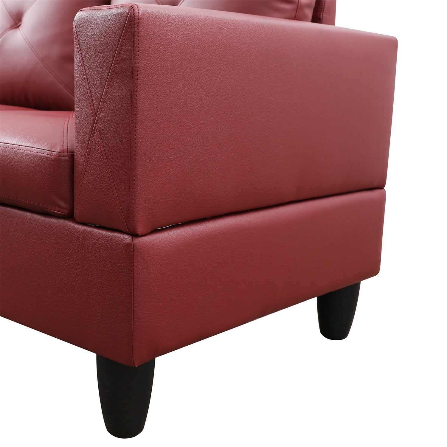 Hommoo 4-Seat Faux Leather Sectional Sofa Sets, L Shaped Sectional Couches and Sofas, Modern Living Room Furniture Sets, 16” Back Height, Red(No Ottoman)