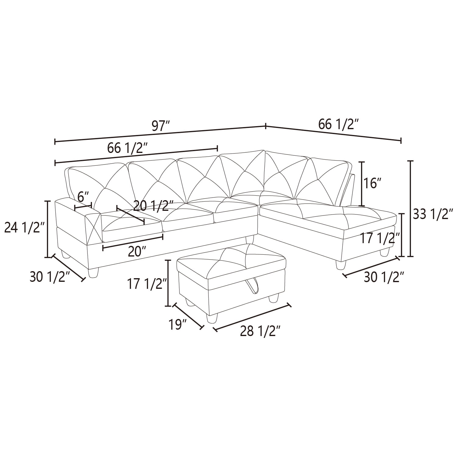 The modern Faux Leather 4-Seat Couch features an eternal polished design that complements any home. This set of furniture adopts a minimalist and streamlined L-shaped structure, allowing you to easily mix and match with other furniture. This L Shaped Sectional Couches and Sofas features a durable frame made of high-quality materials for durability. Using artificial leather decoration can extend the service life of the sofa. The sofa base adopts a conical design, providing strong support while protecting the floor from scratches. This Modern Living Room Furniture Sets Sectional Sofa Set is filled with foam, soft and comfortable. The soft Faux Leather interior and deep cushion allow you to enjoy a luxurious leisure experience. Practical and versatile, especially in small spaces, whether it’s a living room, apartment, or studio, the Faux Leather 4-Seat Couch showcases your unique style, taste, and perfect combination of fashion and functionality. This modern L Shaped Sectional Couches and Sofas uses simple lines and curved handrails on tapered high legs, giving a sense of Minimalism. The modern features of some sofa sets match well with most decorative styles.The back height is 16 inches.