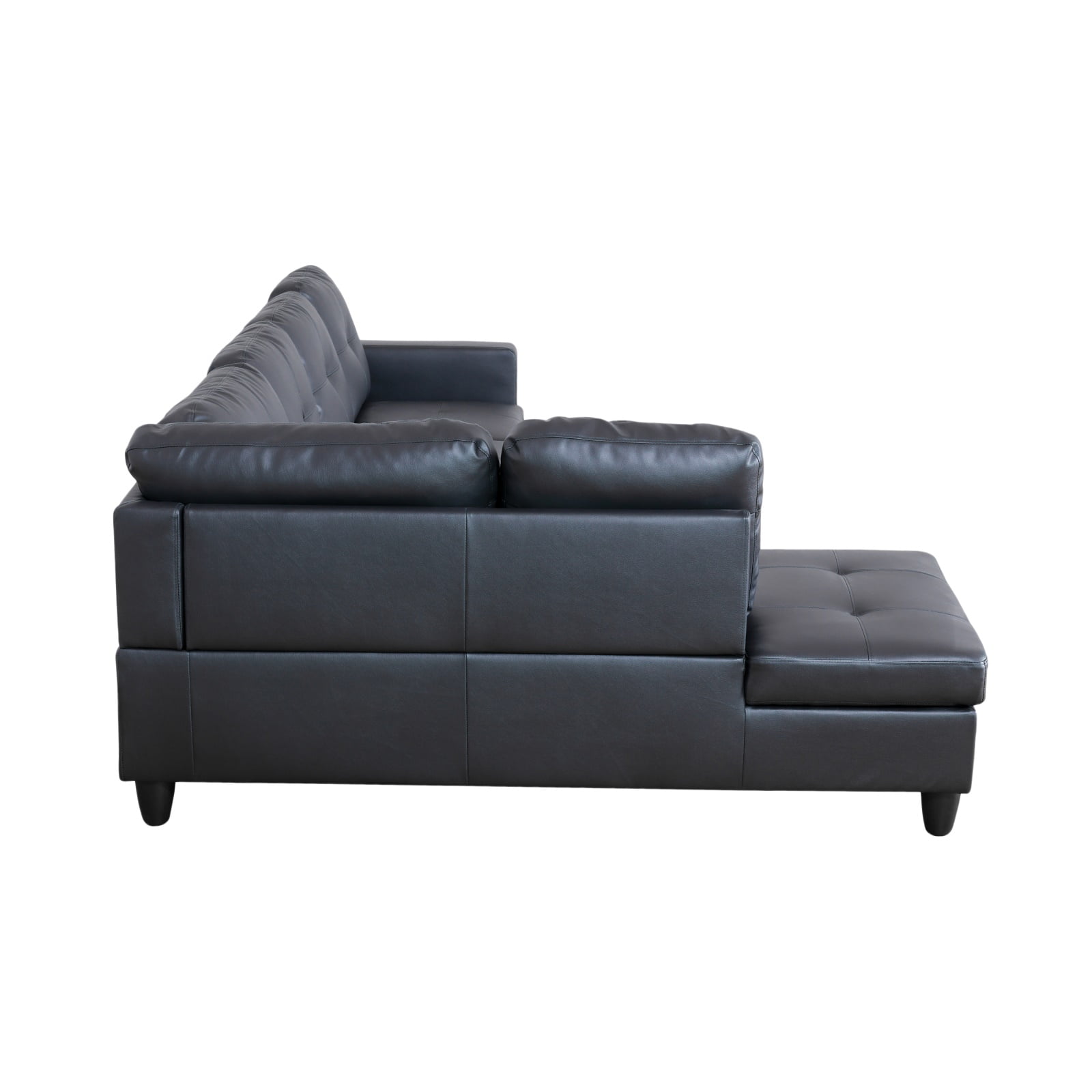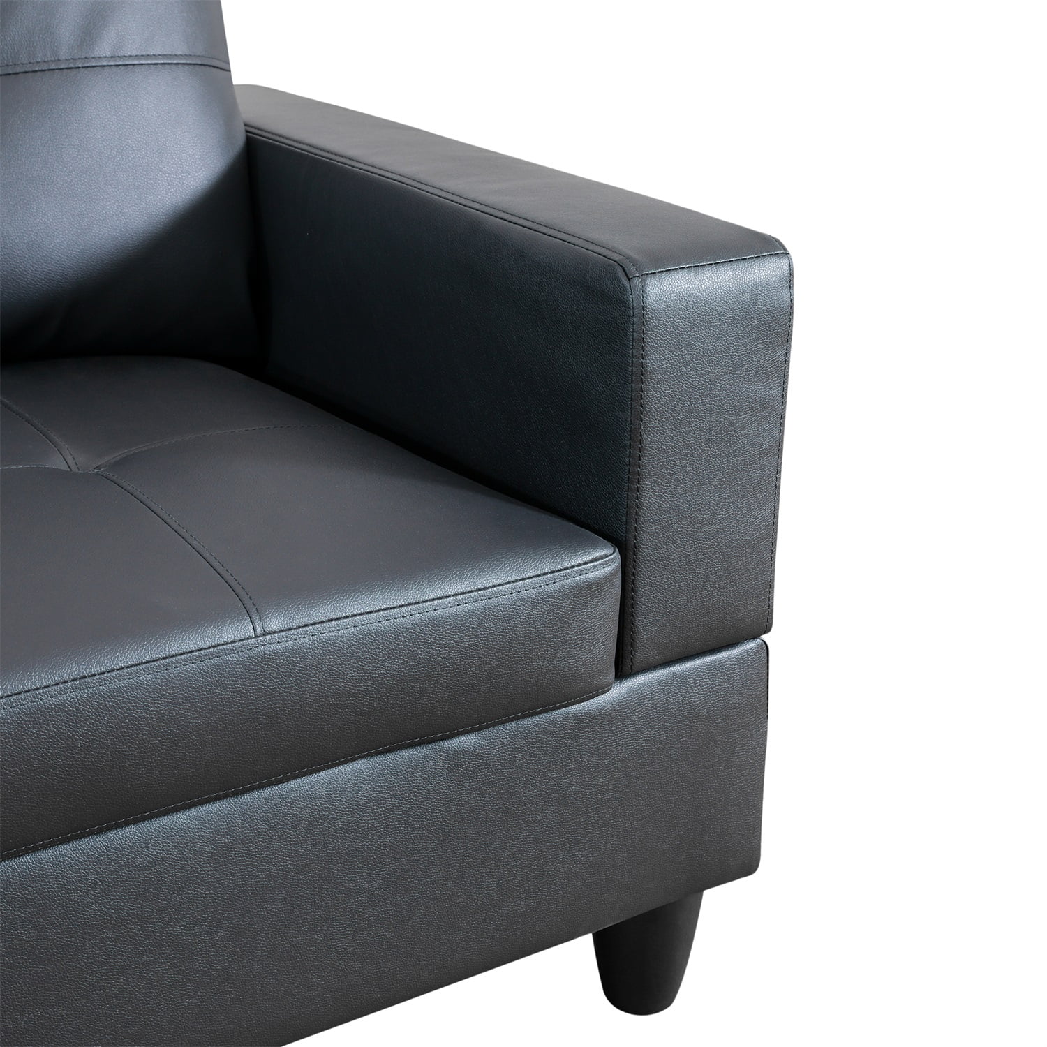 Hommoo 4 Seat Living Room Furniture Sets, Faux Leather Sectional Sofa, Modern L-Shaped Couches and Sofas Set for Home, Black(No Ottomans)