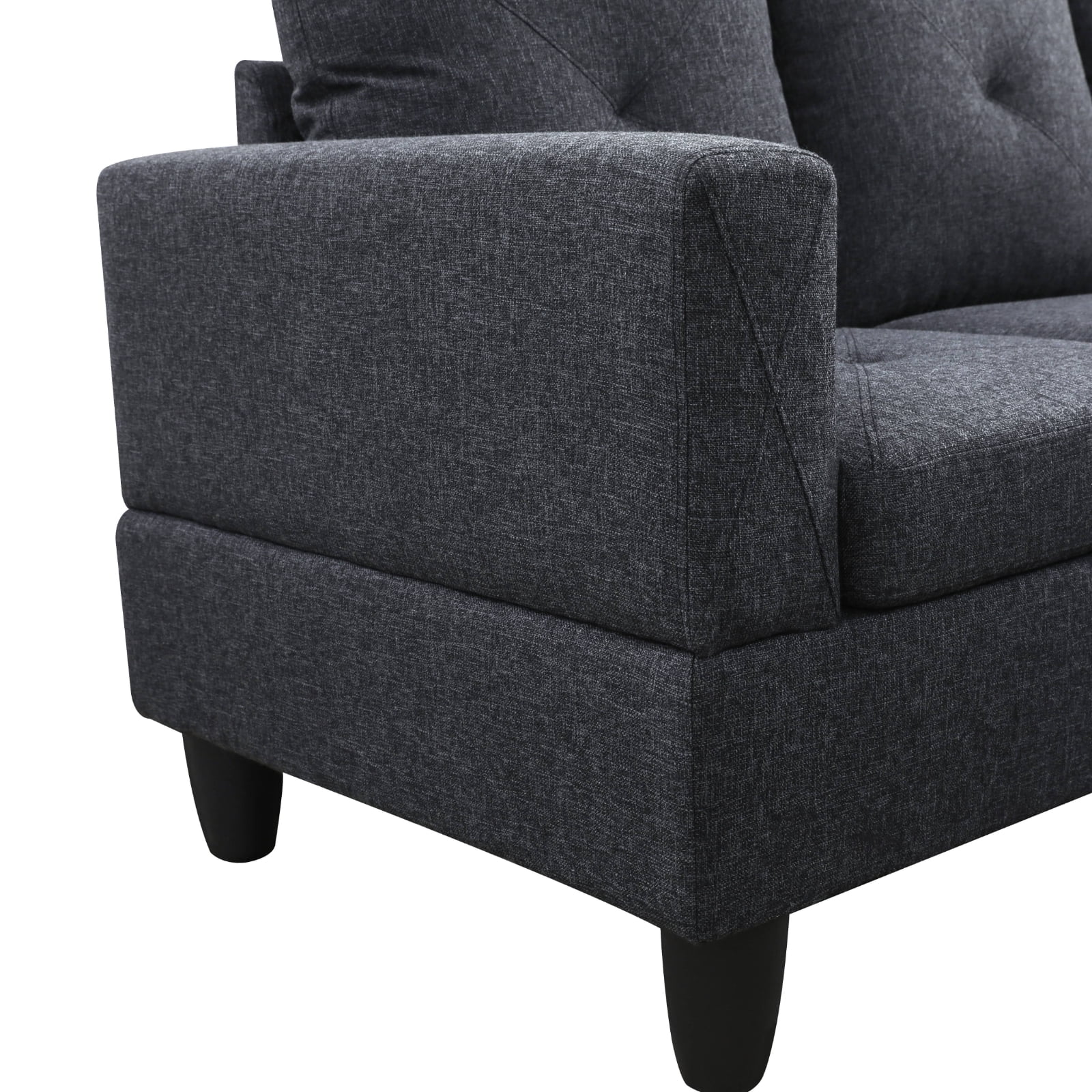 Hommoo 4 Seat Sectional Sofa Living Room Furniture Sets, Modern Flannelette L Shaped Couches and Sofas Model for Home, Black Grey(No Ottomans)