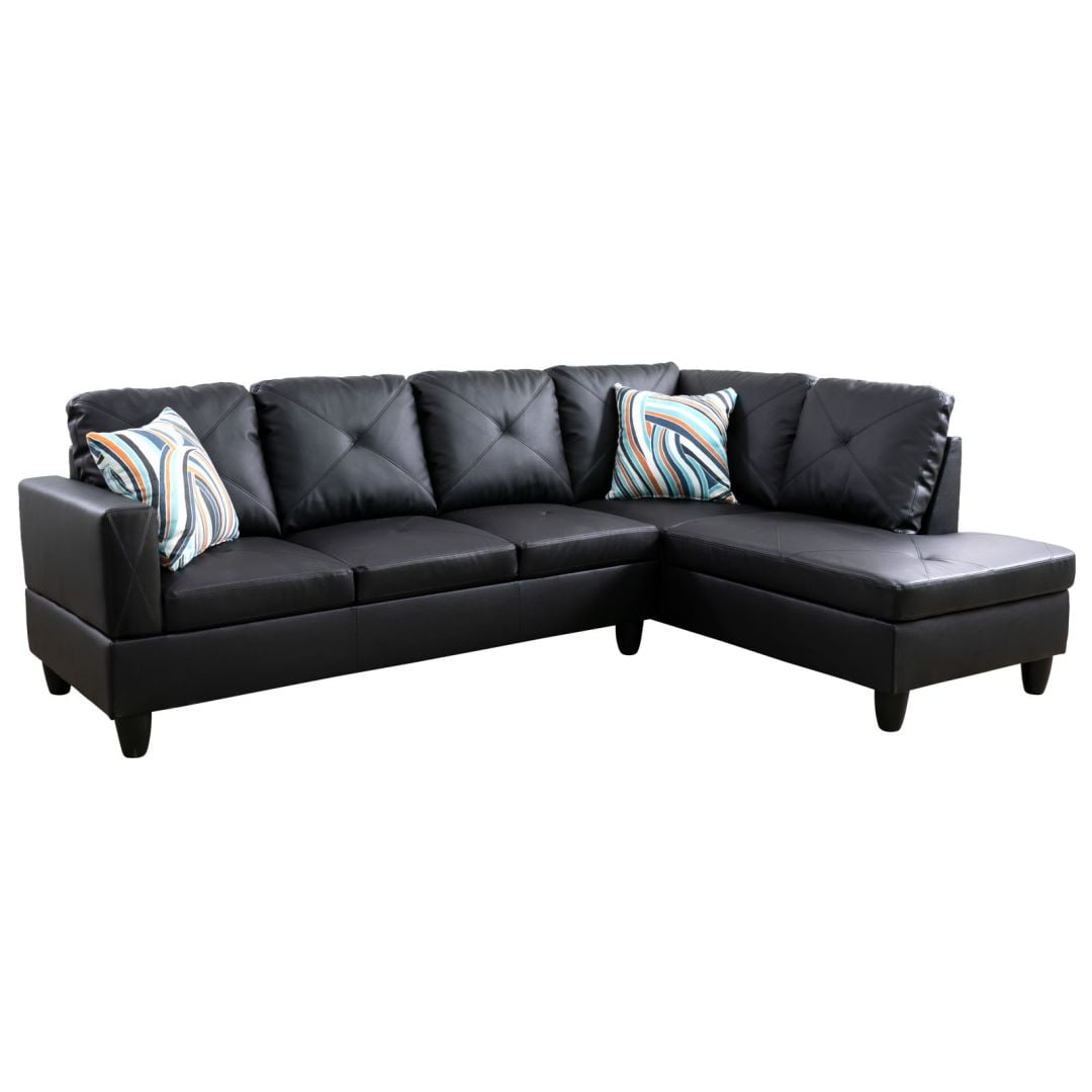 Hommoo 4-Seat Faux Leather Sectional Sofa Couch with Chaise Lounge, L Shaped Sofa Set living room furniture Sofa sets for Home, No Ottoman, Black