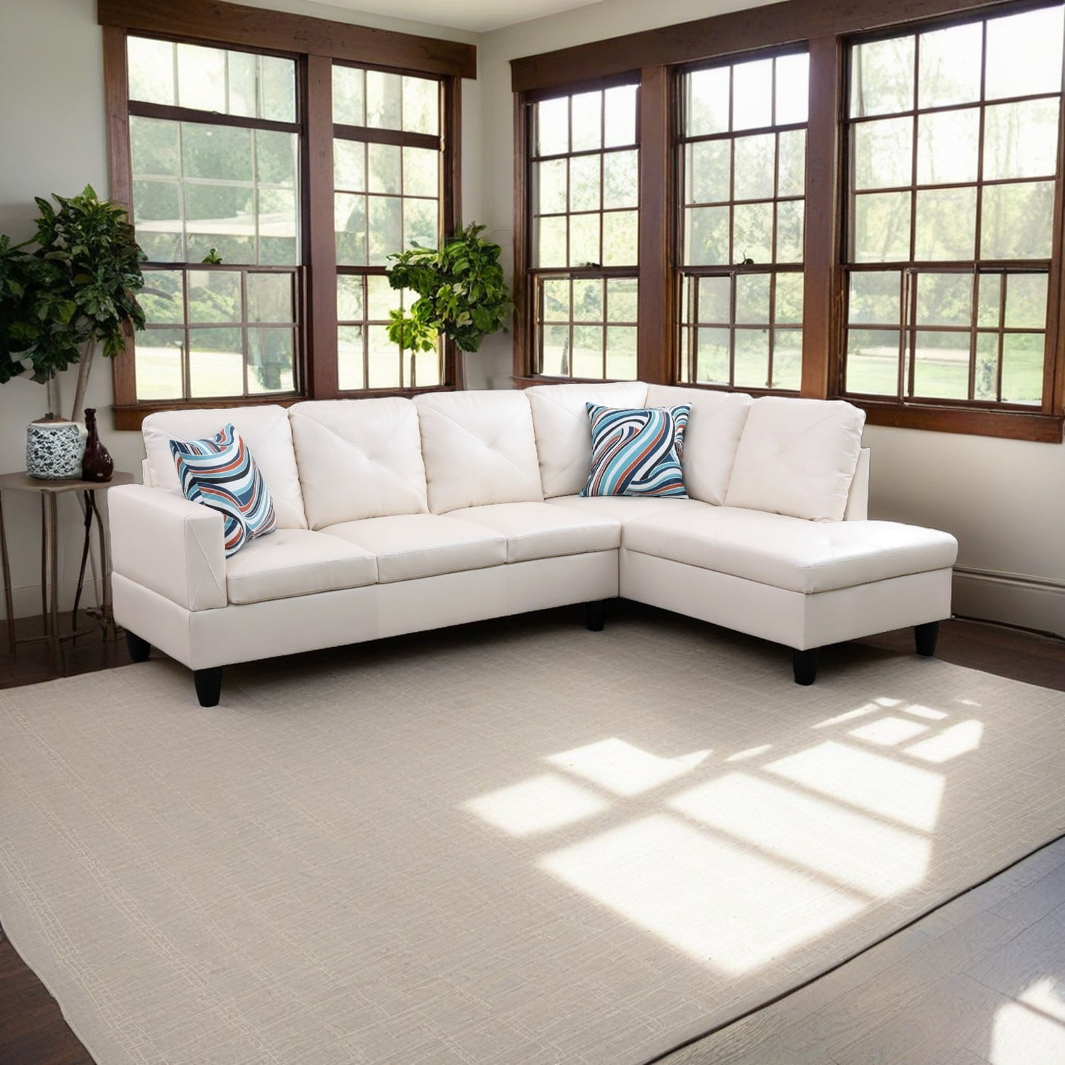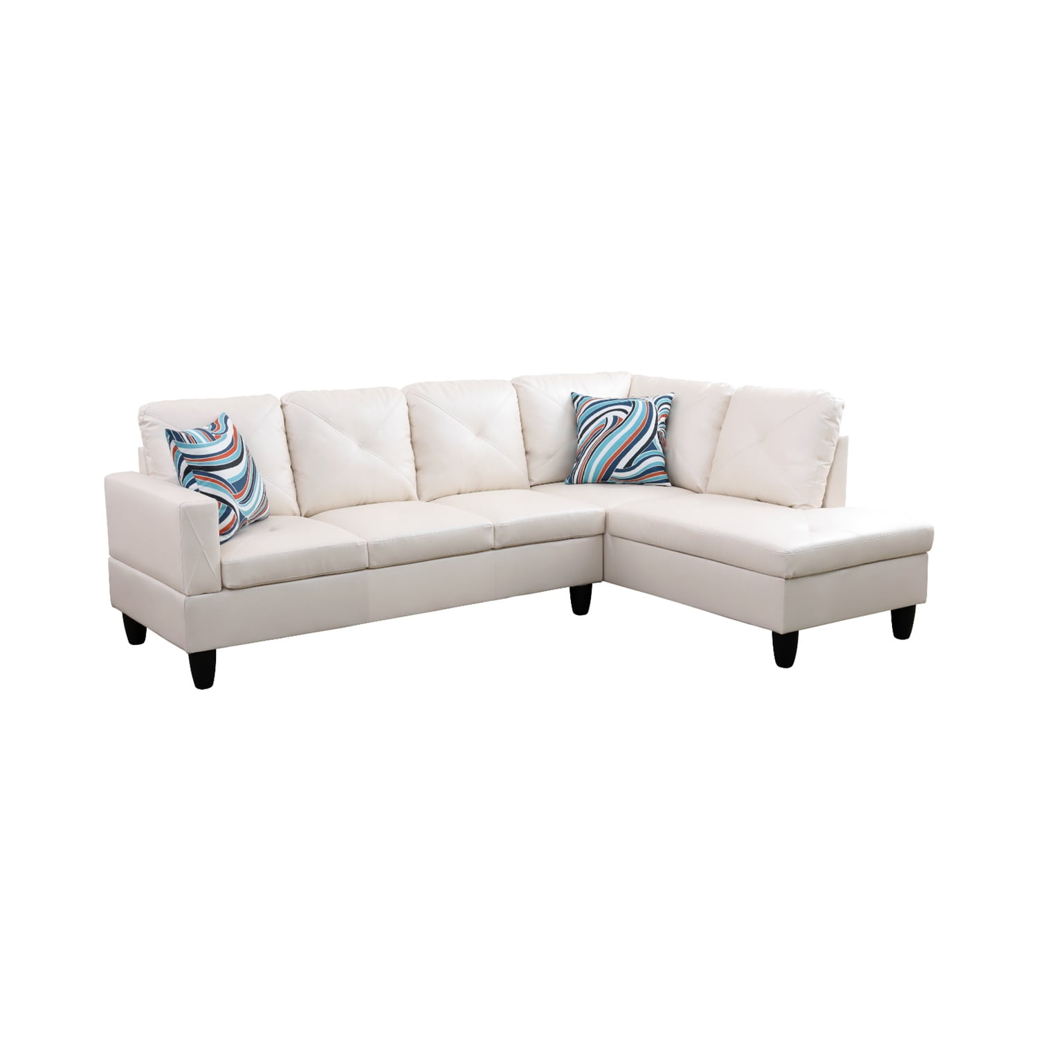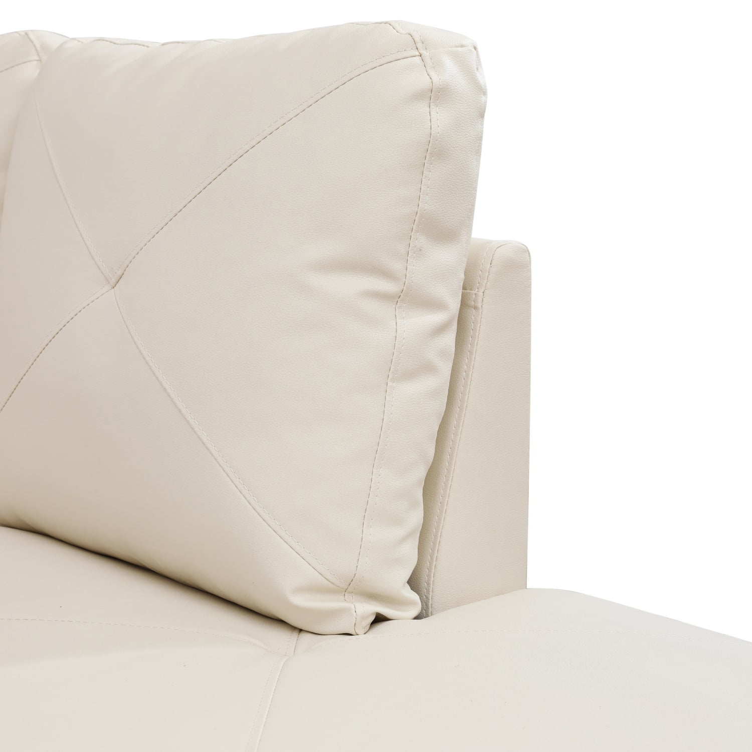 Hommoo Faux Leather Sectional Sofa, 4-Seat L-Shaped Couch, Modern Indoor Living Room Furniture, Apartment, Office, White(Without Ottoman)