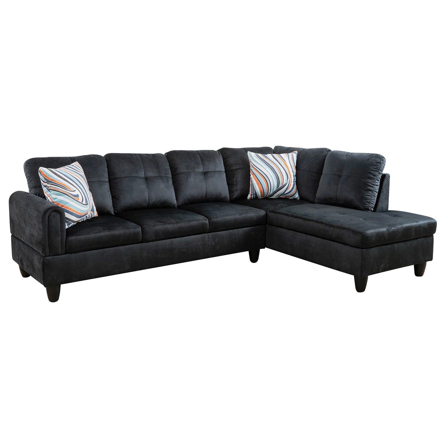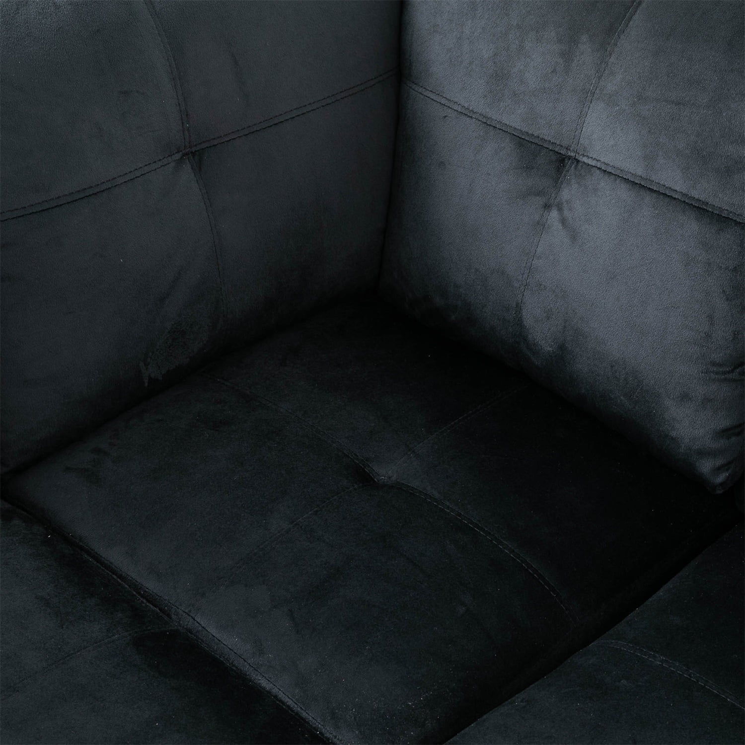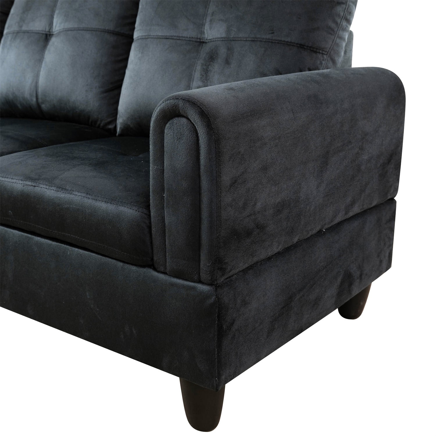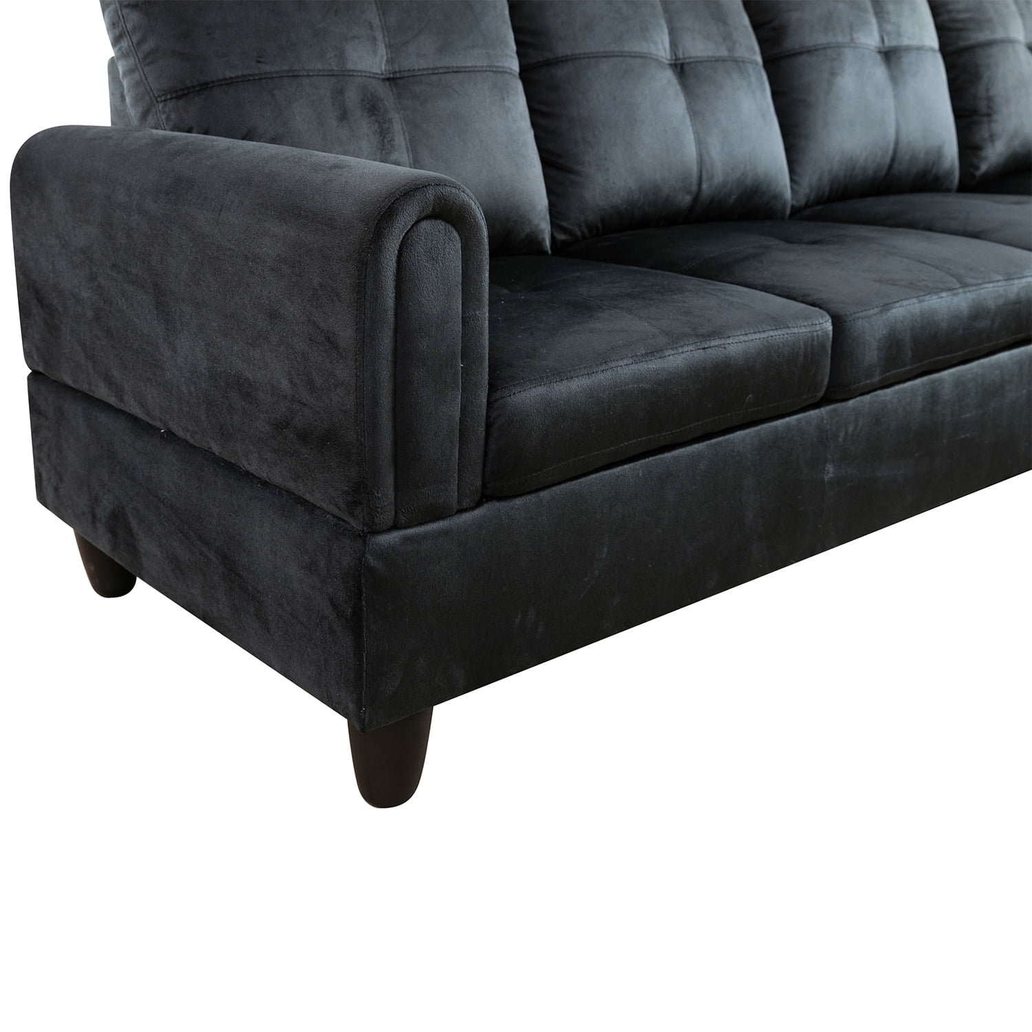Hommoo Flannel 4-Seat Couch Sofa Set, L Shaped Couch Living Room Sofa Set, Sectional Sofa for Small Space, Black(No Ottoman)