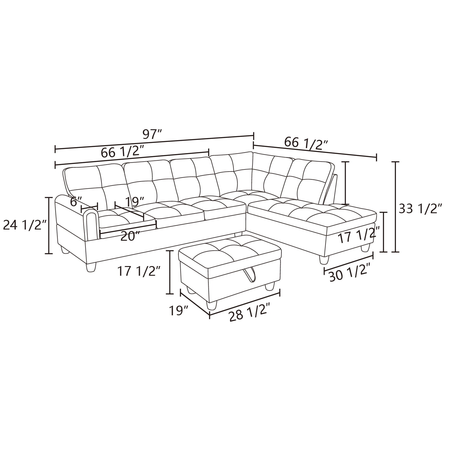 Description Are you looking for a comfortable sofa for your family? If that’s the case, we strongly recommend using this Flannel 4-Seat Couch Sofa Set. This modern L Shaped Couch Living Room Sofa Set hair can provide ample seating when guests are present, making it perfect for small spaces and easy to nap while lying on it. The cushion you are sitting on is both good and sturdy, providing you with the most stable and comfortable seat and mattress like feeling. You never have to worry about getting stuck. The more you sit, the better. After you have this Sectional Sofa, you can completely relax on the sofa, watch a movie, read a book, take a nap, and spend a leisurely afternoon or a quiet night. So what are you waiting for? Don’t hesitate, it’s worth buying! Hommoo Flannel 4-Seat Couch Sofa Set, L Shaped Couch Living Room Sofa Set, Sectional Sofa for Small Space, Black(No Ottoman) Specification Main Color: Black Main Material: Flannel Product Dimensions Assembled Length (in.): 66.5 Assembled Width (in.): 30.5 Assembled Height (in.): 33.5 Weight (lbs.): 92