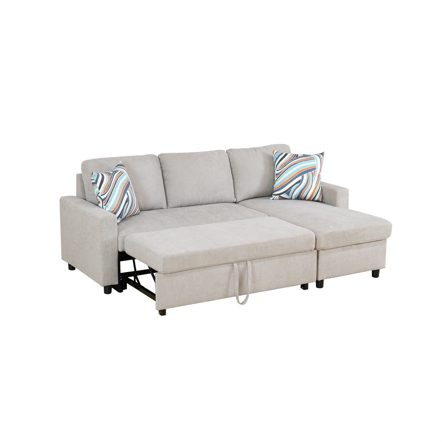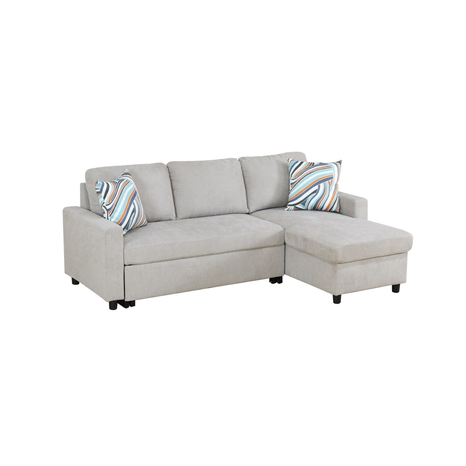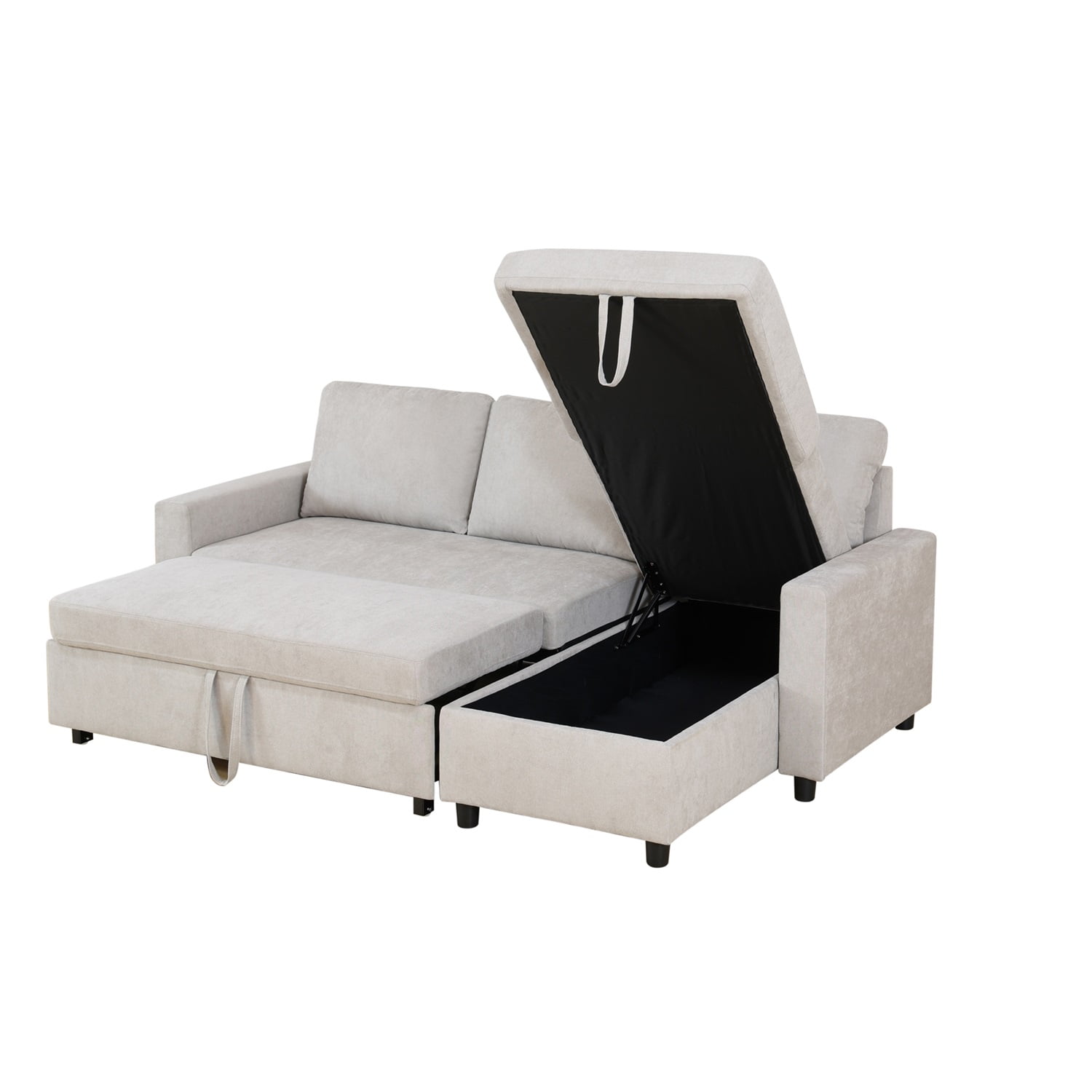 Description If you are looking for a Section Sofa, this L-Shaped Sleeper Sofa Bed with Storage is a good choice.? Our Flannelette Reversible L-Shaped Sleeper Sofa Bed is beautifully designed to be both beautiful and comfortable, and has plenty of storage space. The section of this Sectional Couch Sofa Bed with storage is interchangeable, so it can be perfectly matched to your living room, house or meeting to meet all your needs. Take it home and enjoy the sofa in the living room, especially in the small space, this sofa appears more suitable, whether it is an apartment, an apartment or a studio, you can show your unique style and taste, the perfect combination of fashion and function. The stylish Pull-Out Couch Sofa features a modern L-shaped partial sofa design that complements any living space. You can relax completely on the L-Shaped Sleeper Sofa Bed, watch a movie, read a book, have a cup of tea, take a nap, spend a leisurely afternoon or a quiet night. Hommoo Flannelette Reversible L-Shaped Sleeper Sofa Bed, Modern Sectional Couch Sofa Bed with Storage,? Pull-Out Couch Sofa for Living Room, Bedroom and Office, Grey Specification Main Color: Grey Main Material: Flannelette Filler: Foam Product Dimensions Assembled Length (in.): 83 Assembled Width (in.): 55.5 Assembled Height (in.): 34 Back Height (in.): 16.5 Weight (lbs.): 180.55