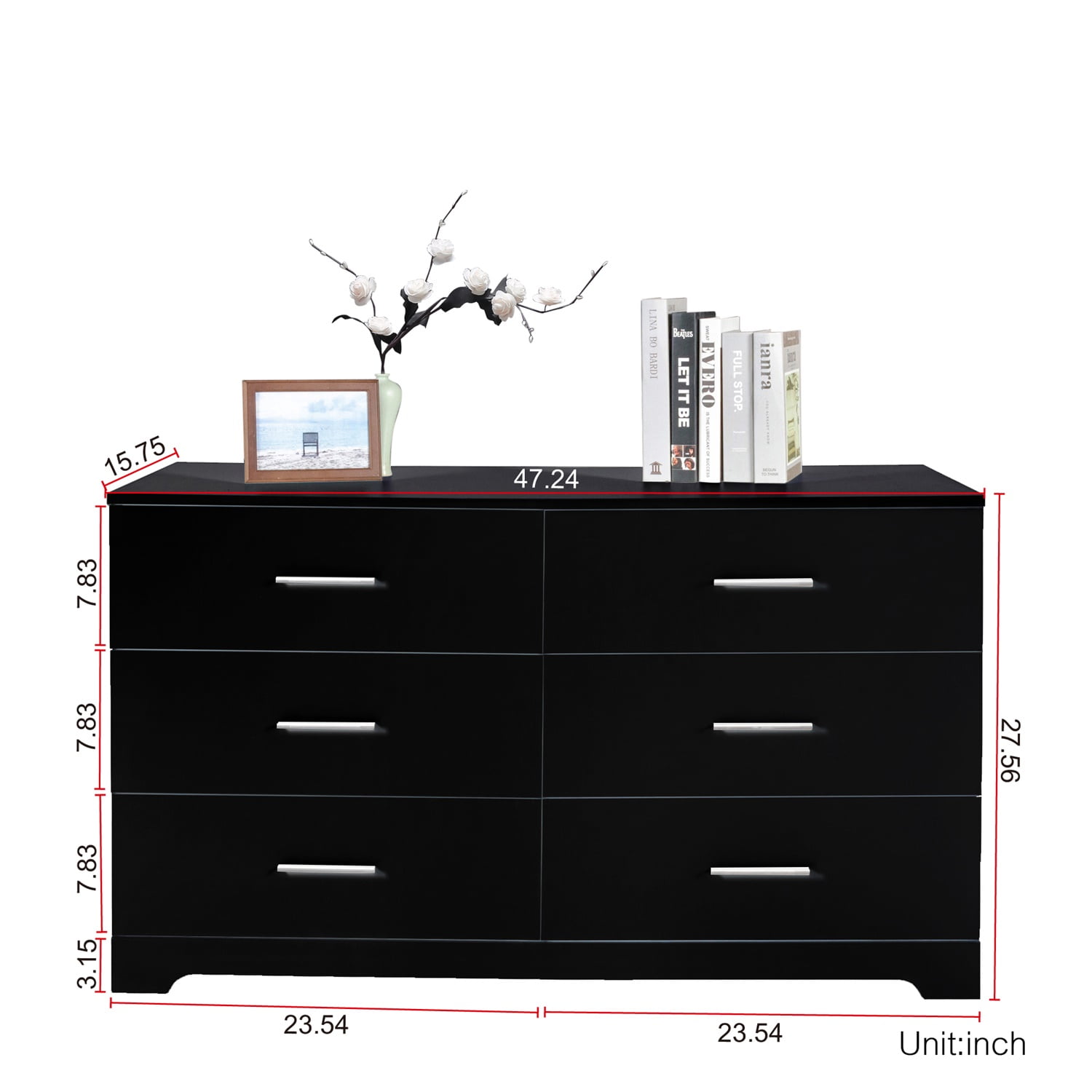 Hommoo Furniture,6 Drawer Double Dresser for Bedroom, Wide Storage Cabinet for Living Room Home Entryway, Black