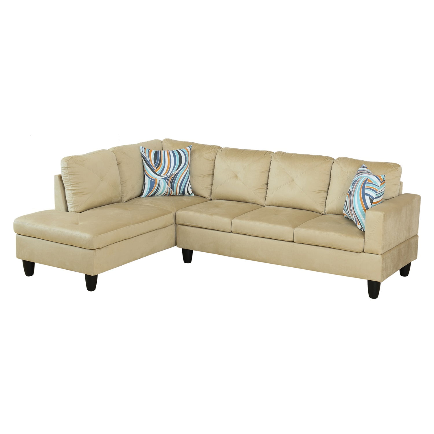Hommoo Microfiber Modern Sectional Sofa, Living Room Furniture Set, L Shaped 4-Seat Couch Sofa for Home, Apartment, Dorm, 16” Back Height, Beige(No Ottomans)