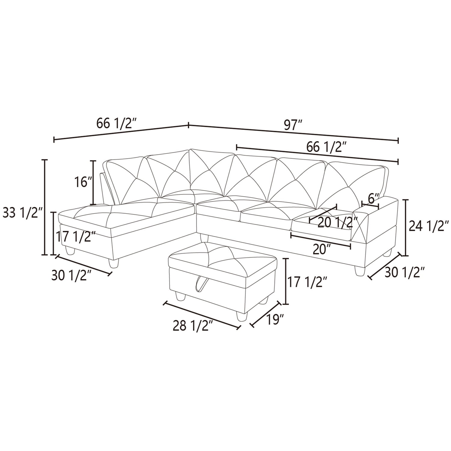 This Modern L-Shaped Couch Sofa is made of soft, durable, and very comfortable Microfibers. The seat cushion, backrest, and square armrests are all designed with tufts, giving it a beautiful, simple, and elegant appearance. This Microfiber Modern Section Sofa is an excellent choice for your home decor. Section Sofa not only provides you with a comfortable sitting posture, but also perfectly matches with other furniture to create a warm and comfortable home. Our Modern 4-Seat Section Sofa has two different positioning options, allowing you to freely choose according to the living room space and meet the various living needs of different families. If you need a segmented sofa in another direction, please go to another link to purchase. The frame of this modern Living Room Furniture Set is made of high-quality solid wood. Solid wood frames can provide more support for sofas, making modular sofas more stable and durable. The cushion is made of high resilience foam material, which has good resilience and softness. The sofa cushion is filled with high-quality foam, which is fluffy and soft. The surface is soft, non pilling, non wrinkling, and has strong moisture absorption. The total size of Modern 4-Seat Section Sofa is 97 inches (W) x 66.5 inches (D) x 33.5 inches (H), with a seat back height of 16 inches. Space saving and durable. If you have any questions, please feel free to contact us at any time. We are happy to serve you.