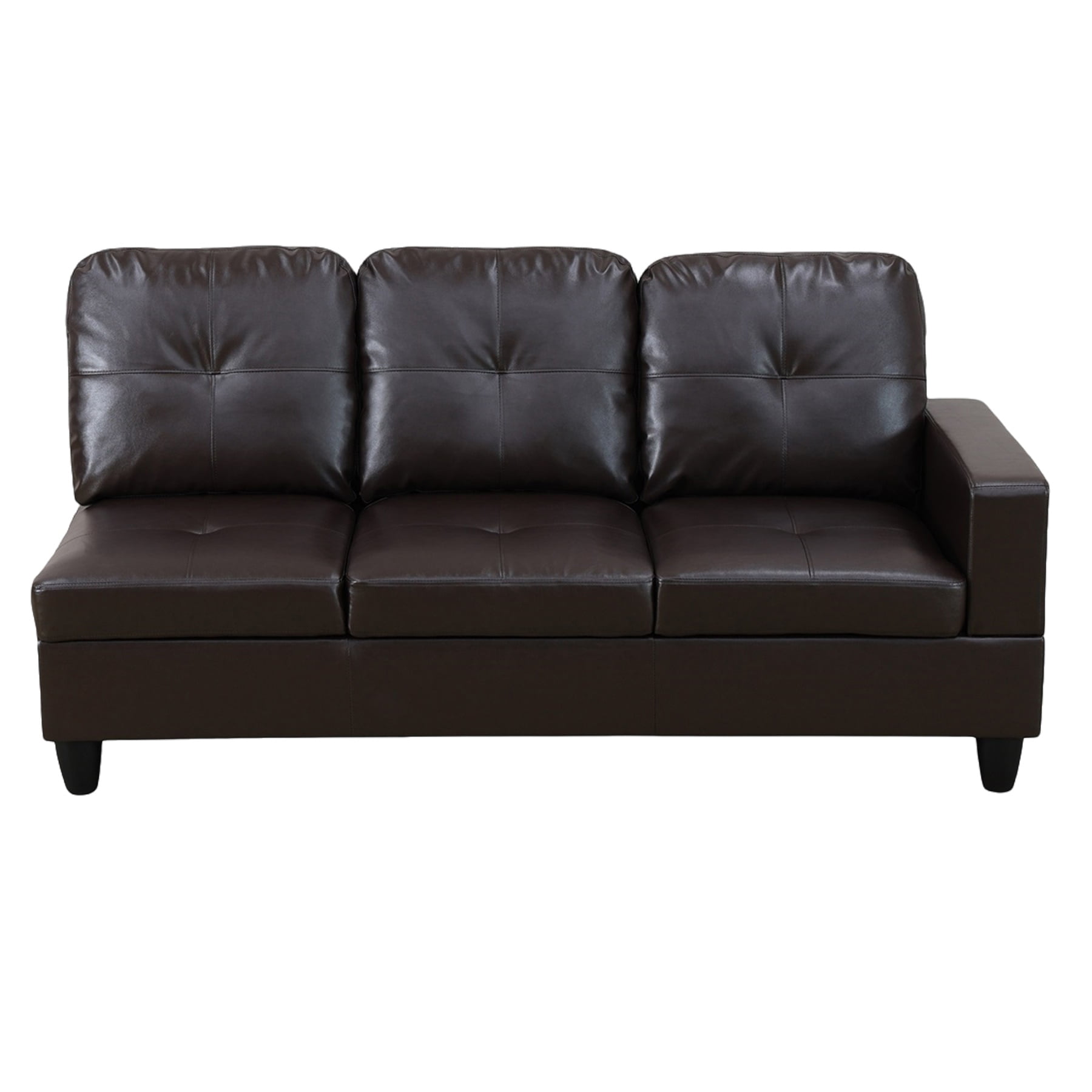 Description Decorating this Modern Faux Leather Section Couch and Sofa Set living room to enjoy life or hosting various parties or elegant cocktails will be a visual and sensory enjoyment. This L Shaped Section Sofa is made with a sturdy and durable wooden frame and an easy to clean Faux Leather. This L-shaped profile sofa features elegant plush details and curved armrest decorations, suitable for apartments, attics, bungalows, and various modern style houses. You can choose sofas in different directions based on the space in your home room, turning idle corners into ideal anchors for L Shaped Section Sofa. Use this Living Room Furniture Set to illuminate your living room. Hommoo Modern Faux Leather Section Couch and Sofa Set, L Shaped Section Sofa, Living Room Furniture Sets, Brown (No Ottoman) Specification Main Color: Brown Main Material: Faux Leather Product Dimensions Assembled Length (in.): 103.5 Assembled Width (in.): 74.5 Assembled Height (in.): 35 The Back Height (in.): 17.5 Weight (lbs.): 188.6