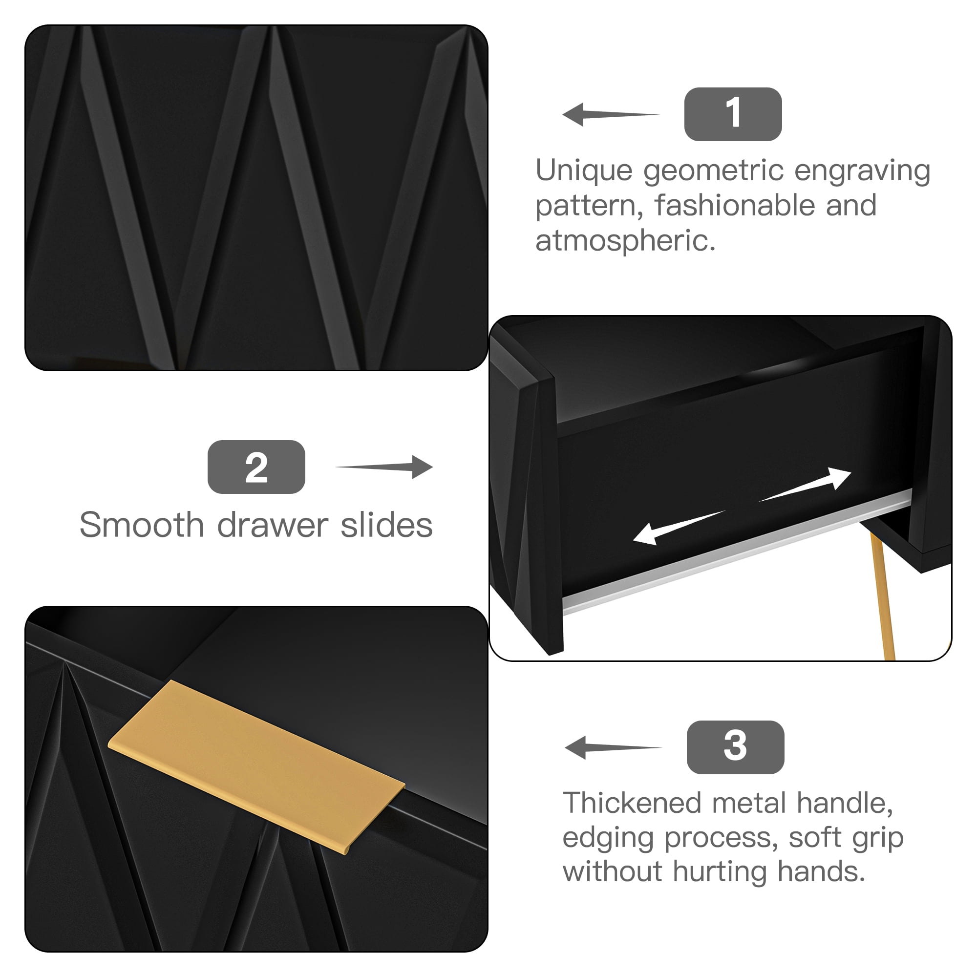 1. Nightstand drawer panels are 3D engraved, Bedside Table is unique and reflects a different style