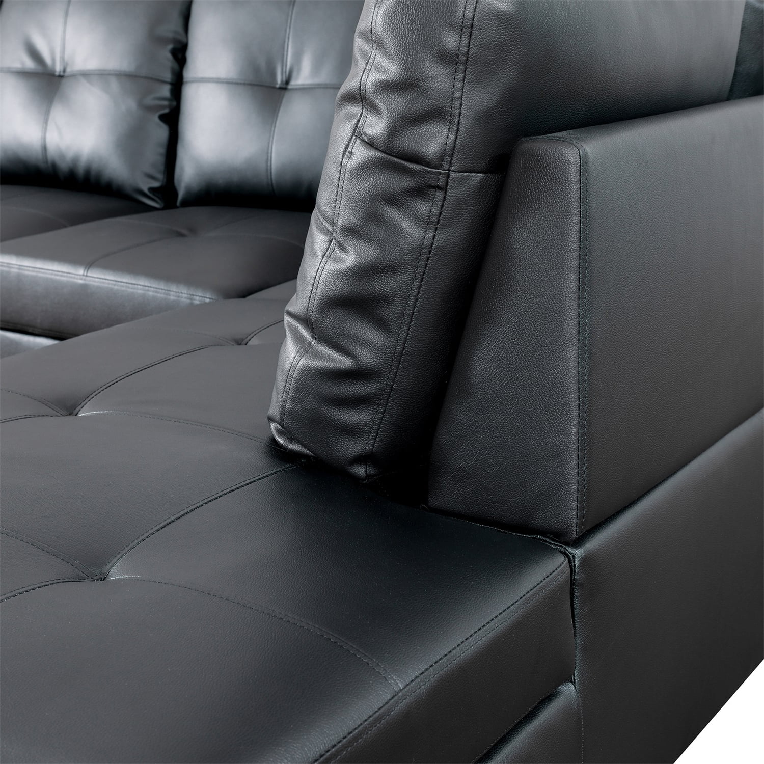 Hommoo 2-Piece Faux Leather Sofa Set, Living Room Furniture Set, L-Shaped Sectional Sofa Couches for Living Room, Black