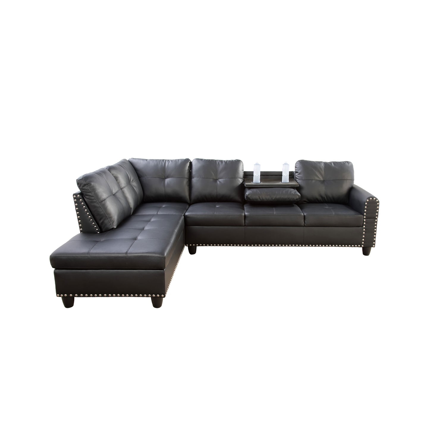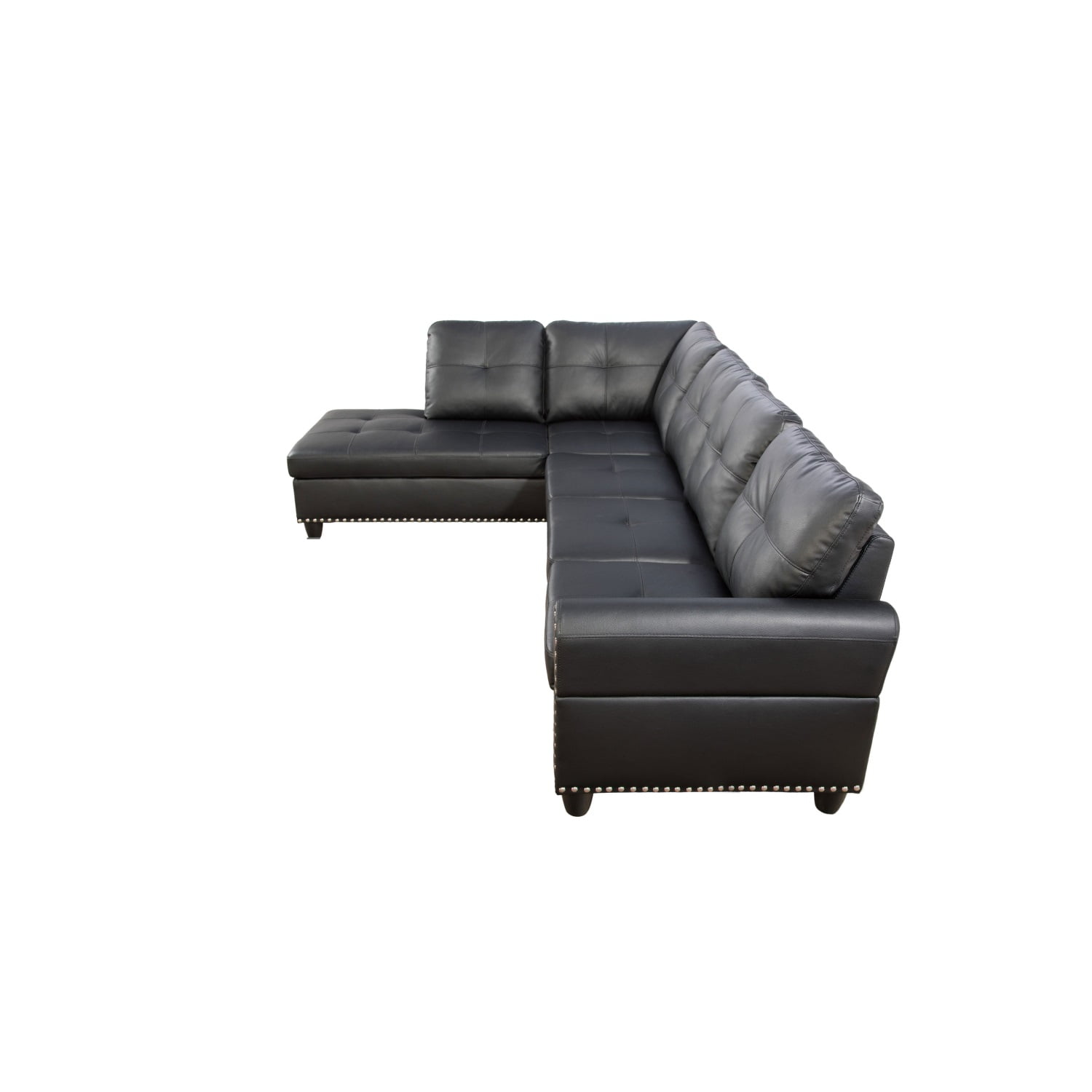 Hommoo Sofa Set, Faux Leather 2-Piece Sofa Living Room Sofa Set,L-Shaped Living Room Sofas,Black