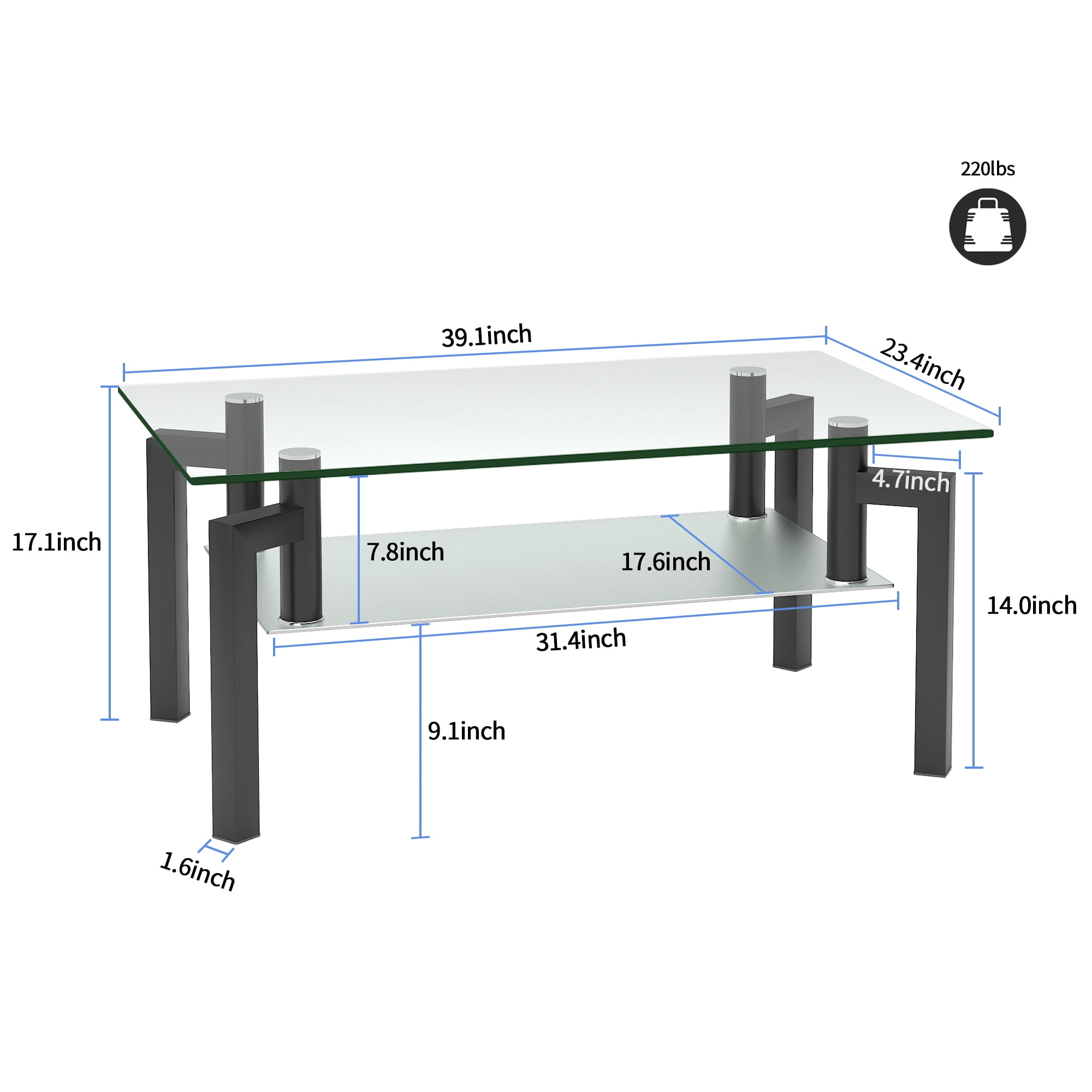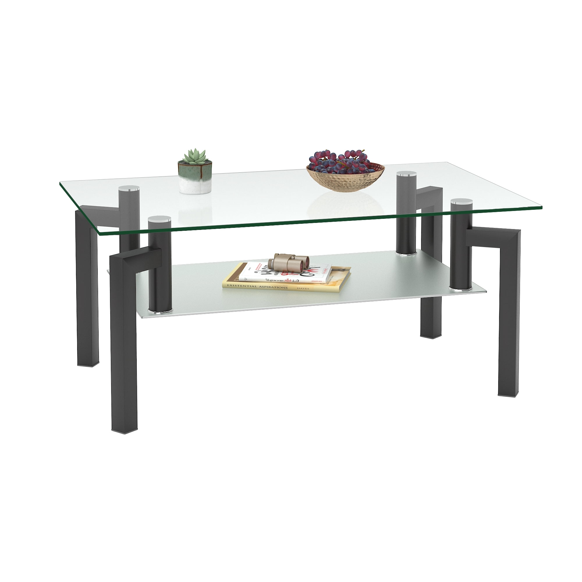 Description This is our bright wood clear glass table top coffee table, center table features a rectangular look and a 2 tier glass shelf, the bottom shelf provides great storage space for books, magazines, remote controls, tea sets or other decorative items, perfect for your durability needs. center table compact construction and beautiful textures can be surprisingly prominent Perfect for your home decor, center table is perfect for your office, store, living room, or bedroom.