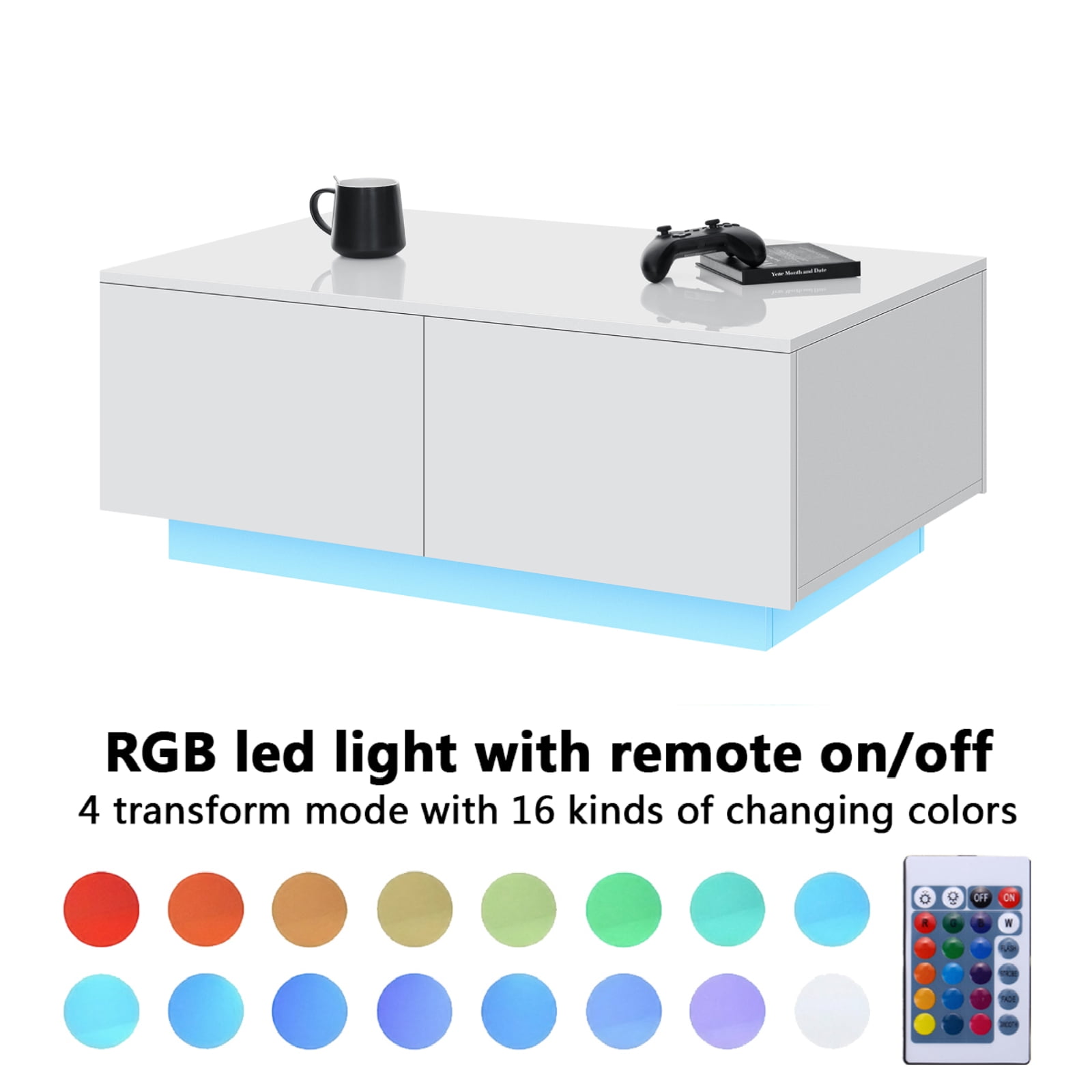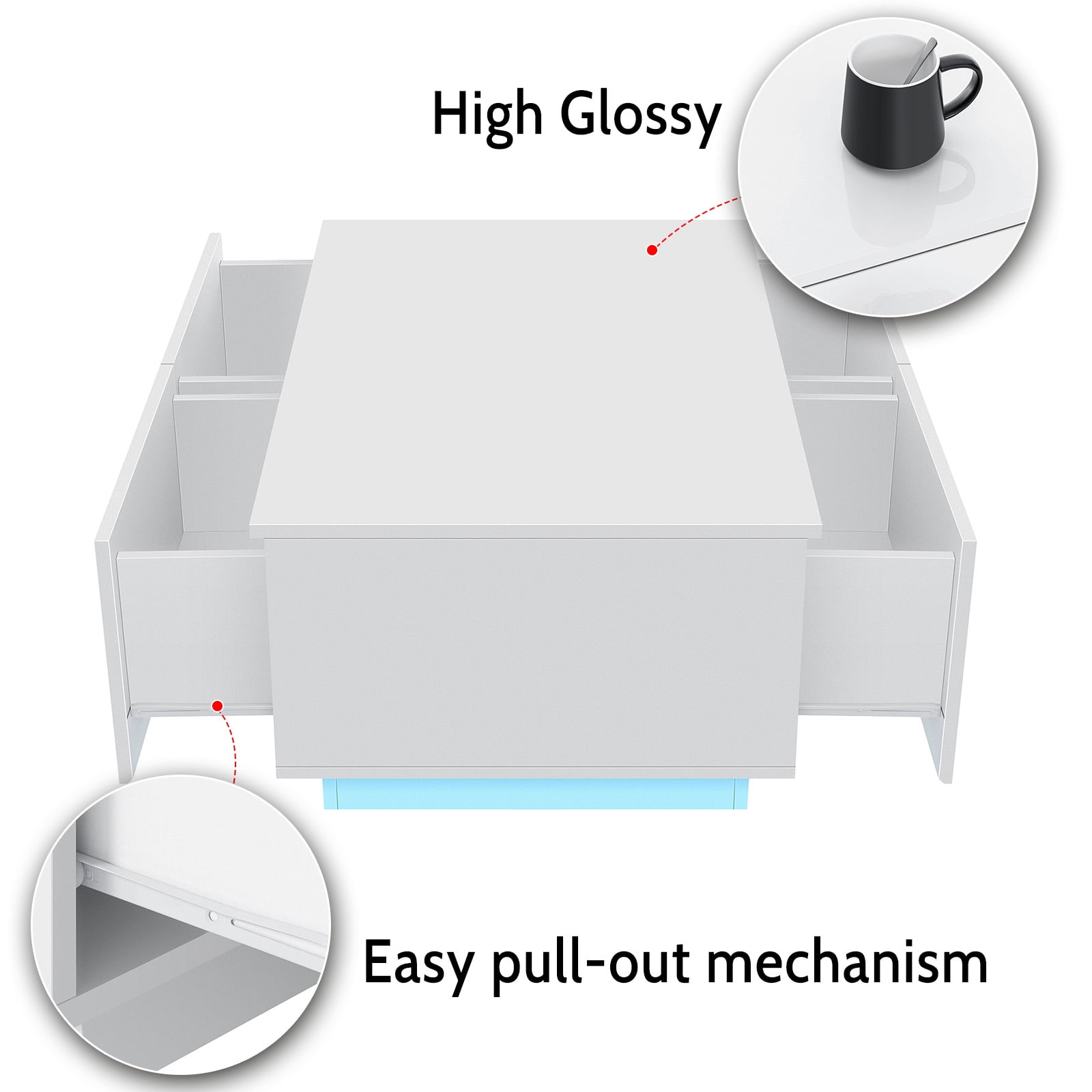 Hommpa Coffee Table with 4 Drawers LED Center Cocktail Side Table White High Gloss Finish