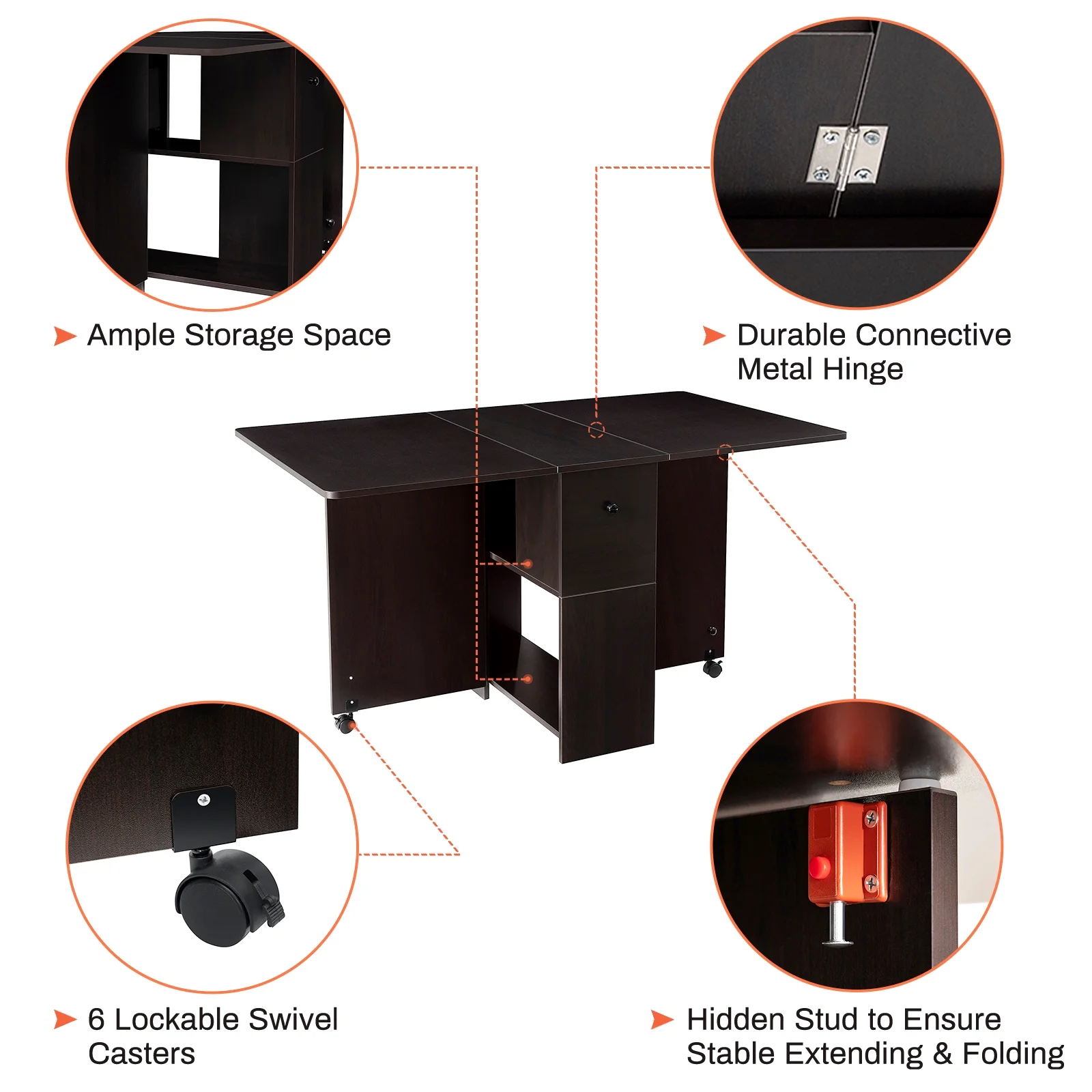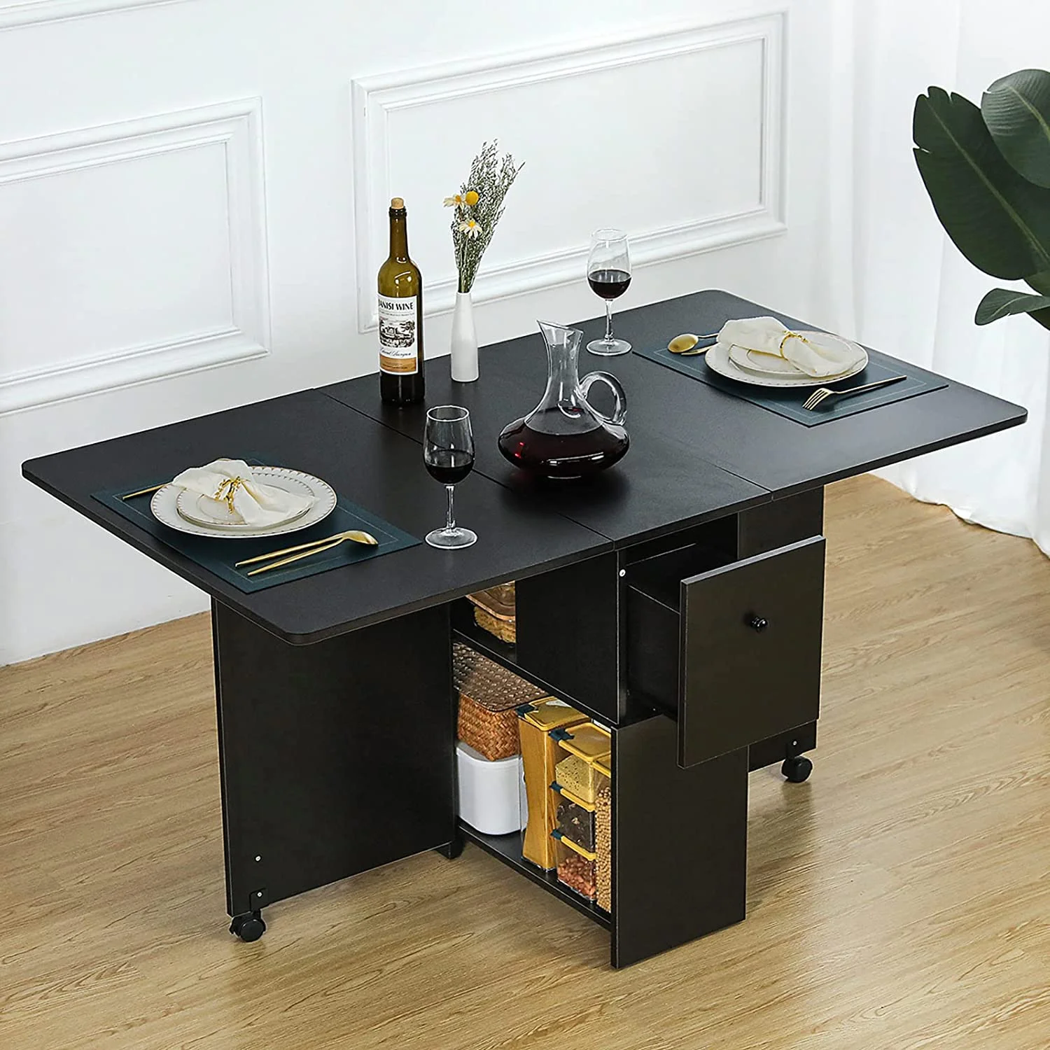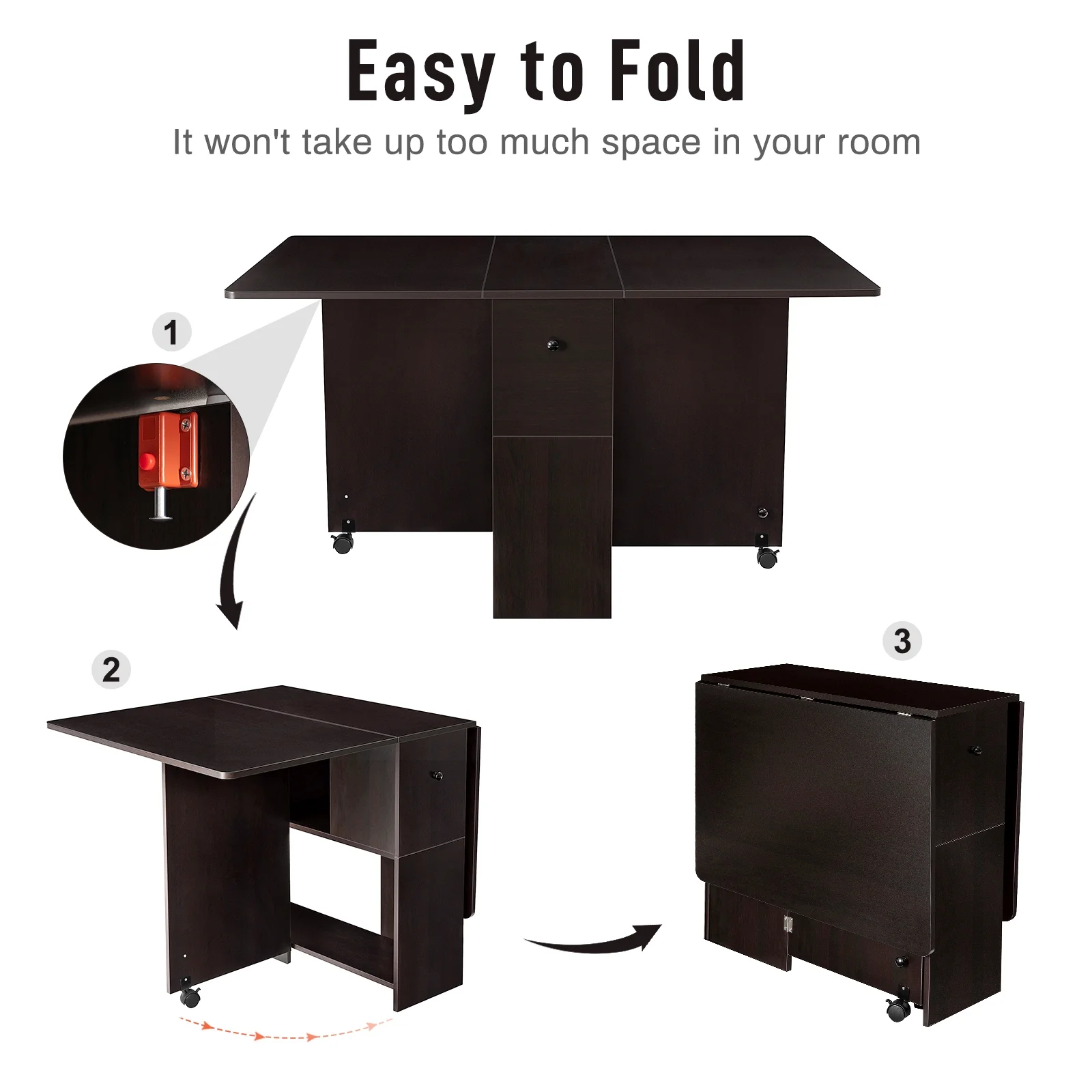 【Multifunctional Folding Tables】 【Sturdy & Movable Foldable Table】 【Folding Kitchen Tables For Small Spaces】 【Foldable Dining Table with 2 Storage Drawers】 【Easy to Assemble and Clean】