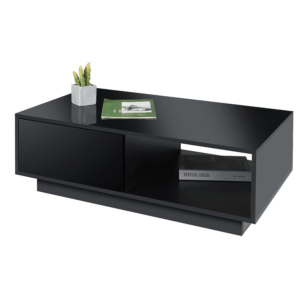 Hommpa High Gloss Black Coffee Table with 2 Drawers LED Sofa Side End Tea Table Modern Cocktail Tables with Storage