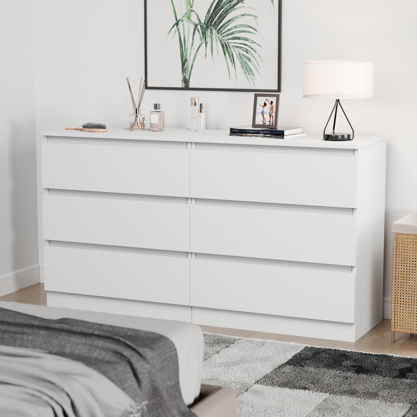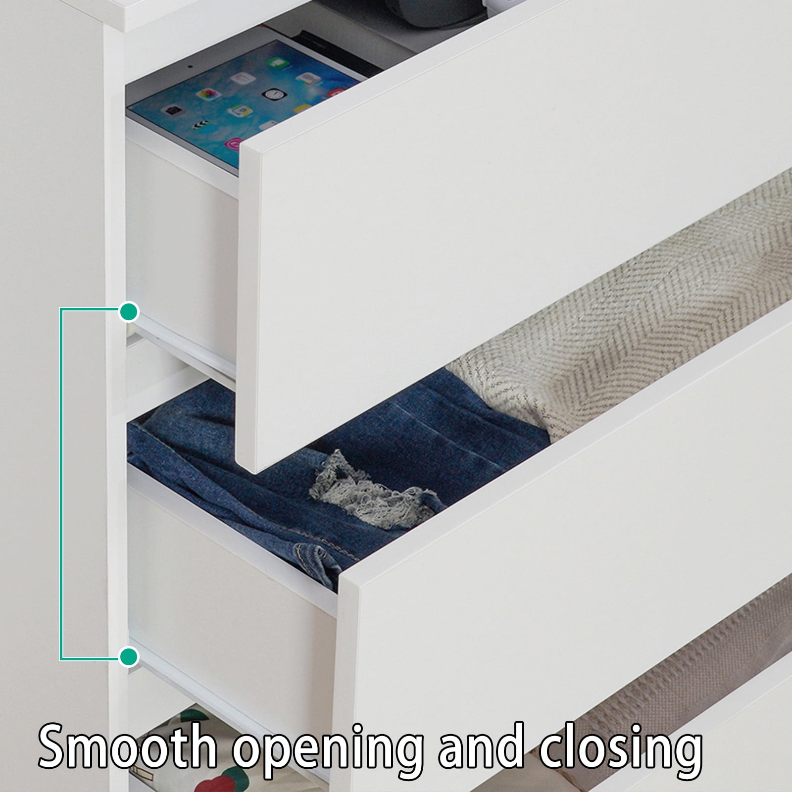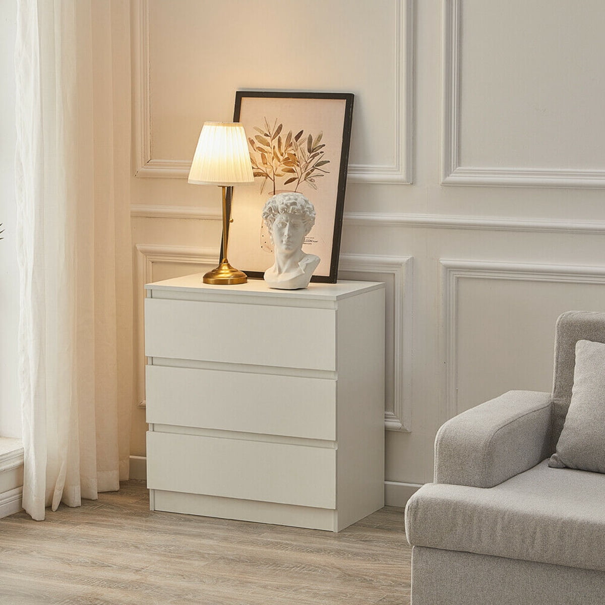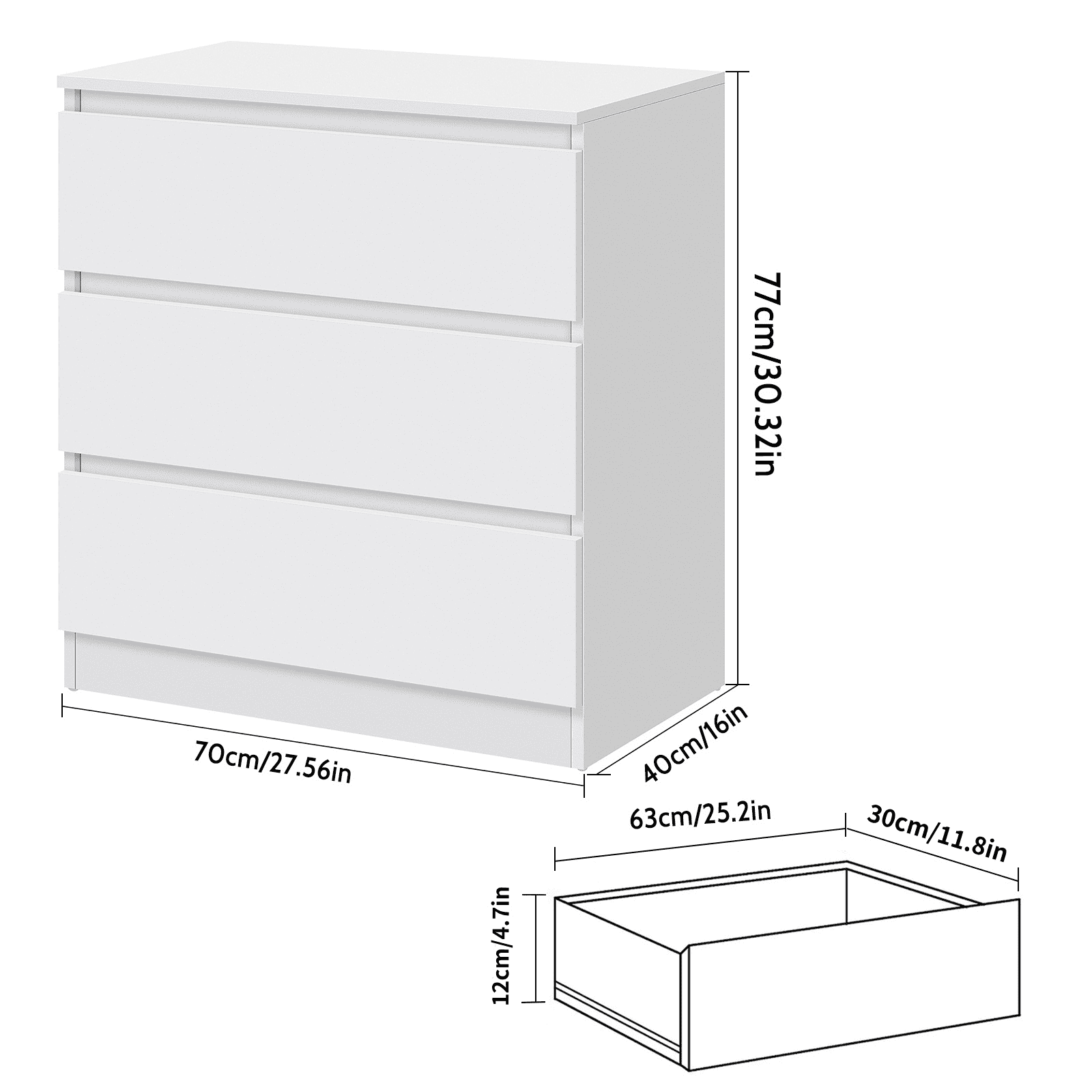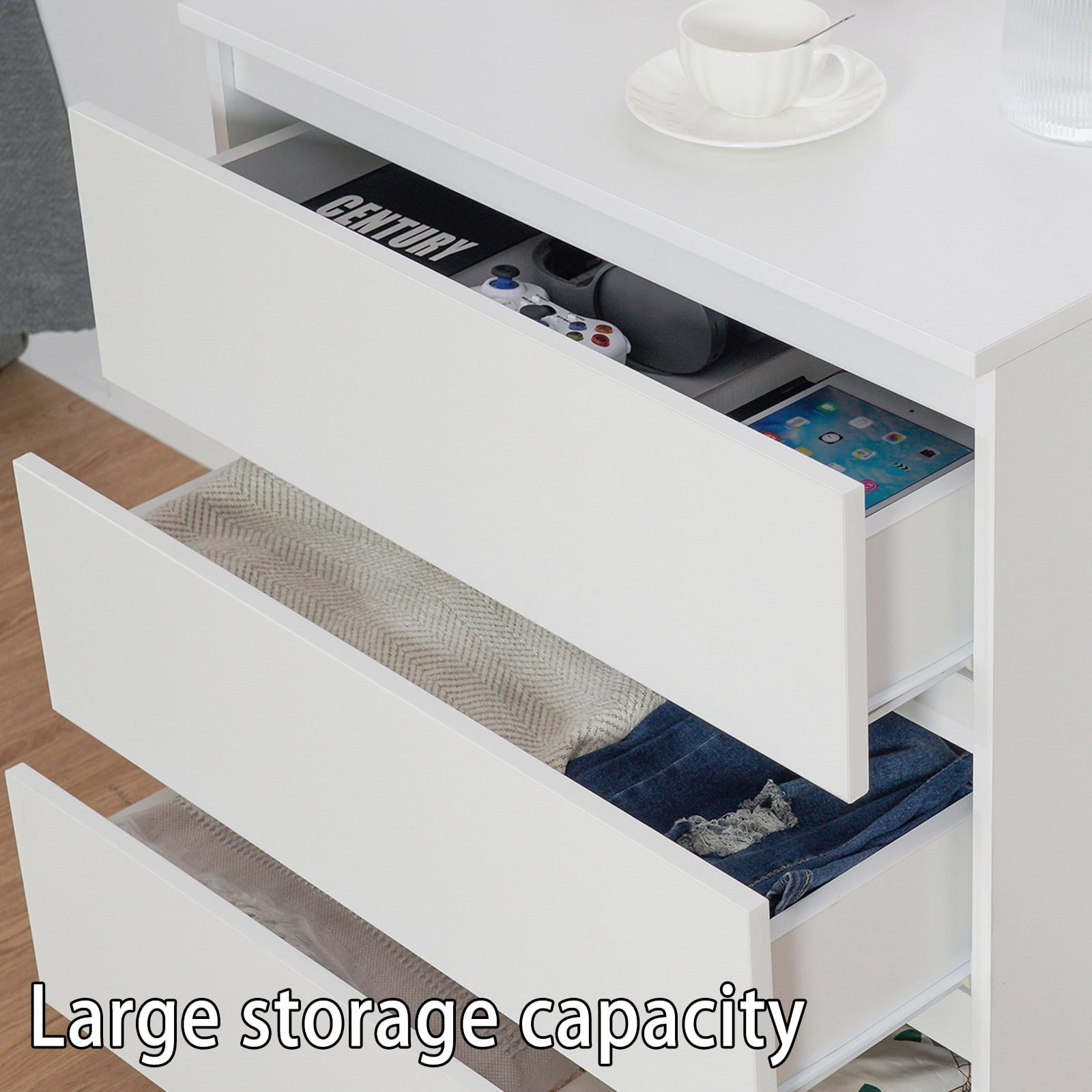 【Durable & Sturdy】 Made of wood and featured with stable construction, it will bring you sturdy and durable drawer dressers that provide long durability. 【Anti-Toppling Design】 The anti-tilt device ensures that the cabinet does not tip over to protect your family and pets. 【Multi-functional Dressers】 White dresser featured with concise appearance, ideal as a drawer chest, end table, side table, or bedside table in the bedroom, hallway, living room, etc., and will be practical for you to use as a storage table. 【Large Storage Space】 This exquisite nightstand provides spacious storage to meet your need. It will be perfect for organizing your clothes, blankets, scarves, socks, and other accessories. The top is perfect for displaying lamps, clocks, books, glasses, etc. 【Easy to Clean & Assemble】 The chests of drawers with a clean finish is easy to clean with a soft cloth. This drawer dresser table with sample structure and all the accessories are included with the detailed installation instruction, which is easy to assemble.