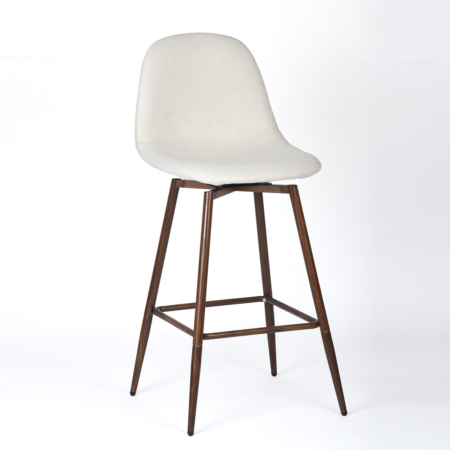 Upgrade your kitchen or bar area with this sophisticated 2-piece swivel bar stool set. Featuring a beige fabric seat and walnut-finished metal legs, these stools bring a blend of modern elegance and practical functionality to your home. The 26-inch seat height is perfect for counter heights between 40-43 inches, making them ideal for your kitchen island or breakfast bar. The 360-degree swivel function allows for effortless movement and interaction, while the high backrest and contoured seat provide ergonomic comfort. With a sturdy construction that supports up to 250 lbs, these stools are durable and stylish, making them a perfect addition to your living space. Whether you’re enjoying a quick meal, a drink, or just some quality time with family and friends, these bar stools will enhance your home decor.