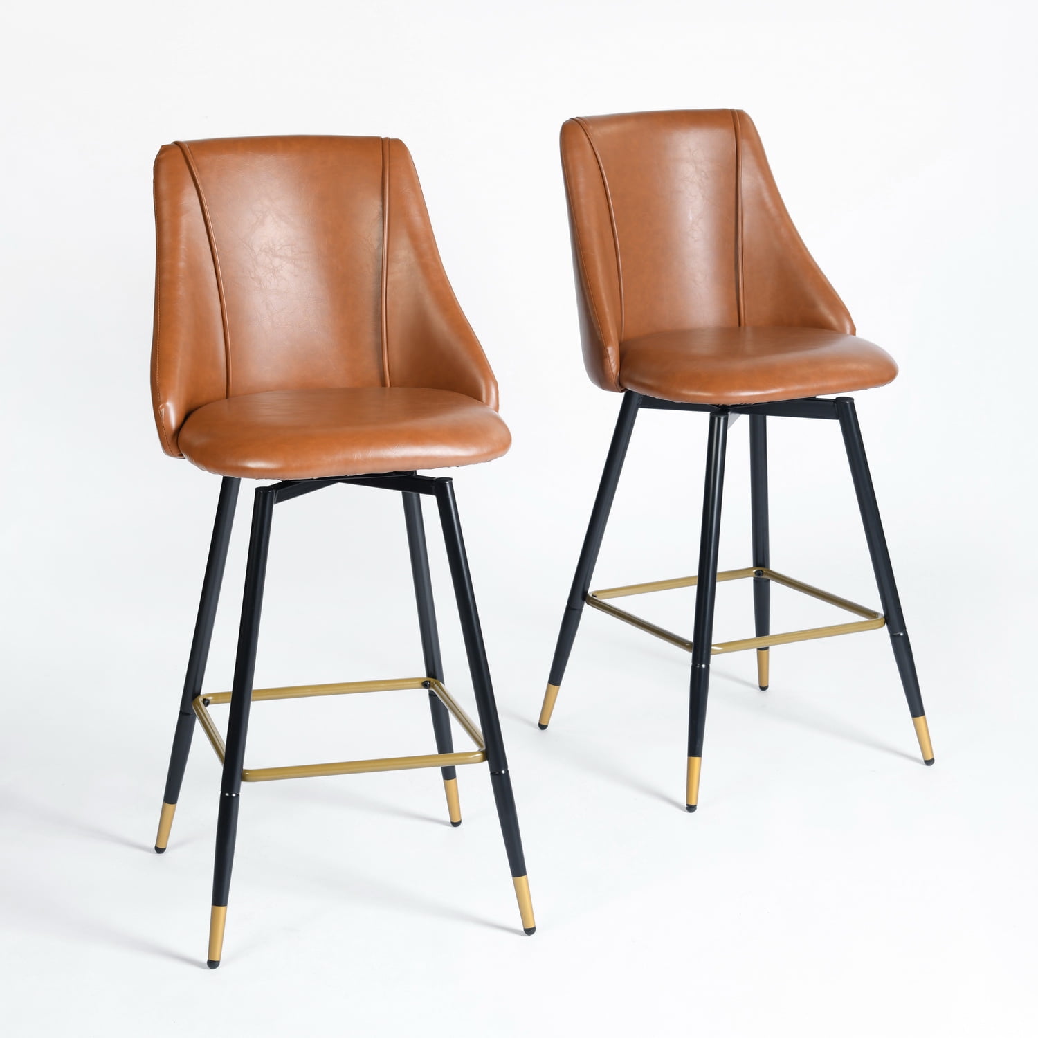 Homy Casa 26 inch Bar Stools Set of 2, Adjustable Swivel Counter Height for Kitchen, Cognac Brown