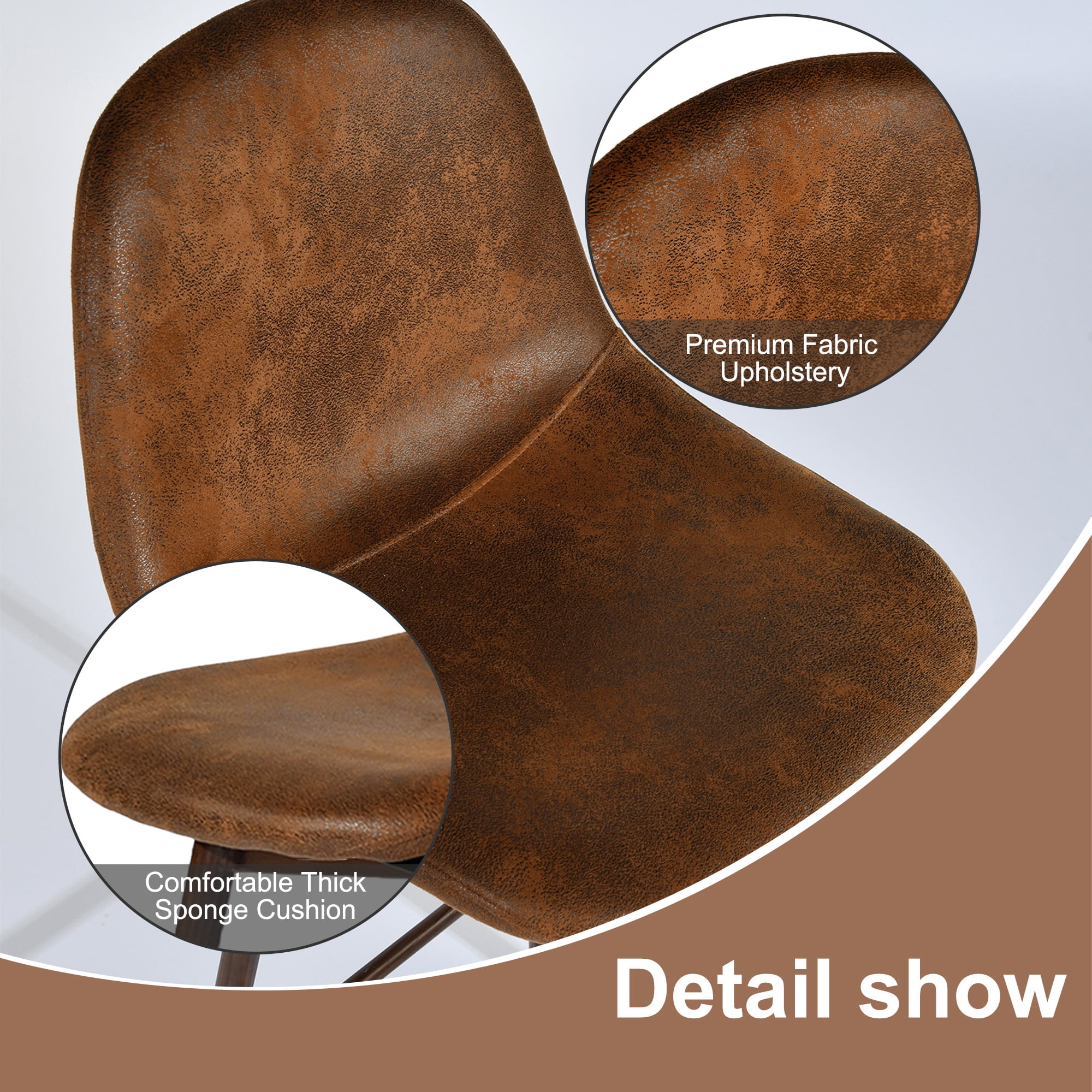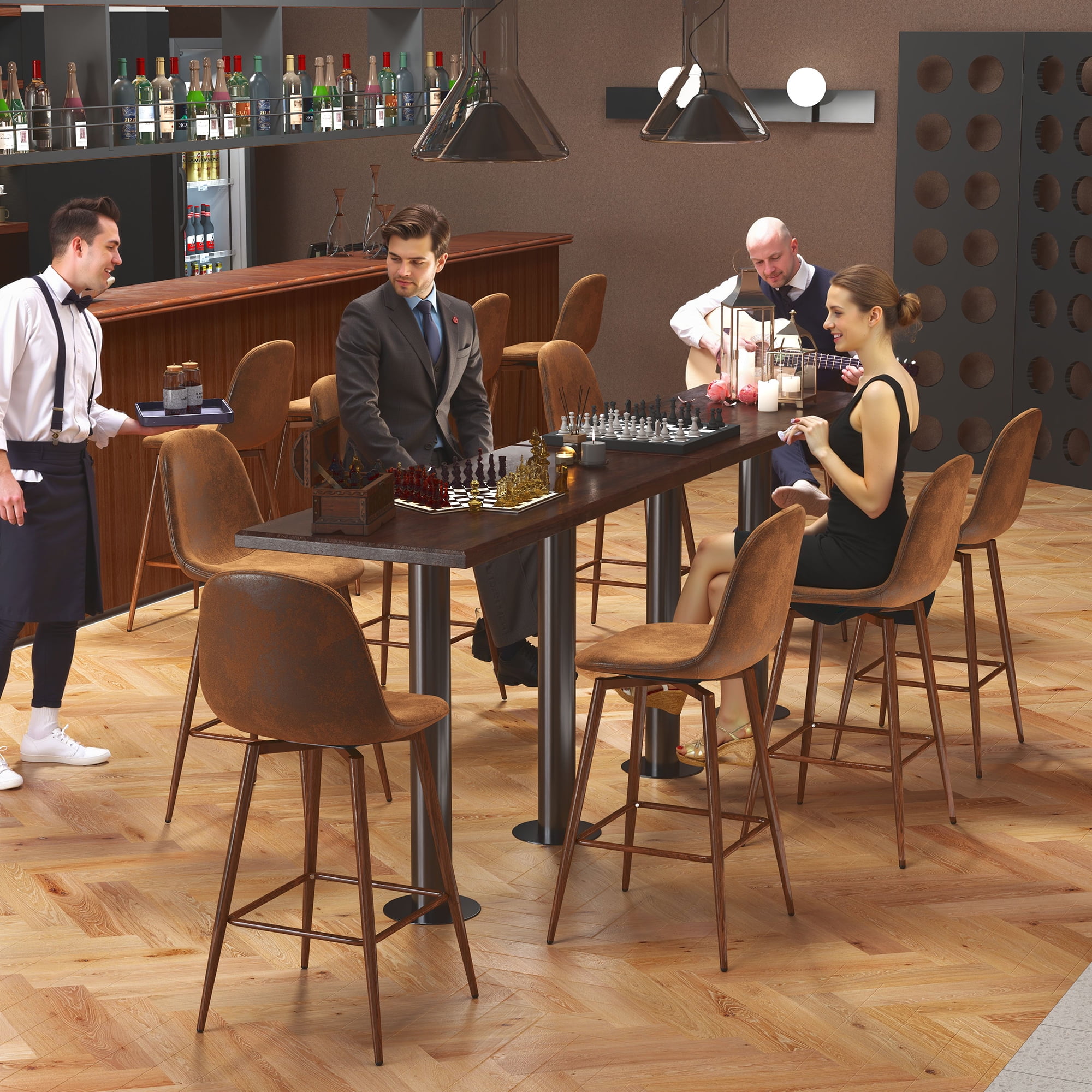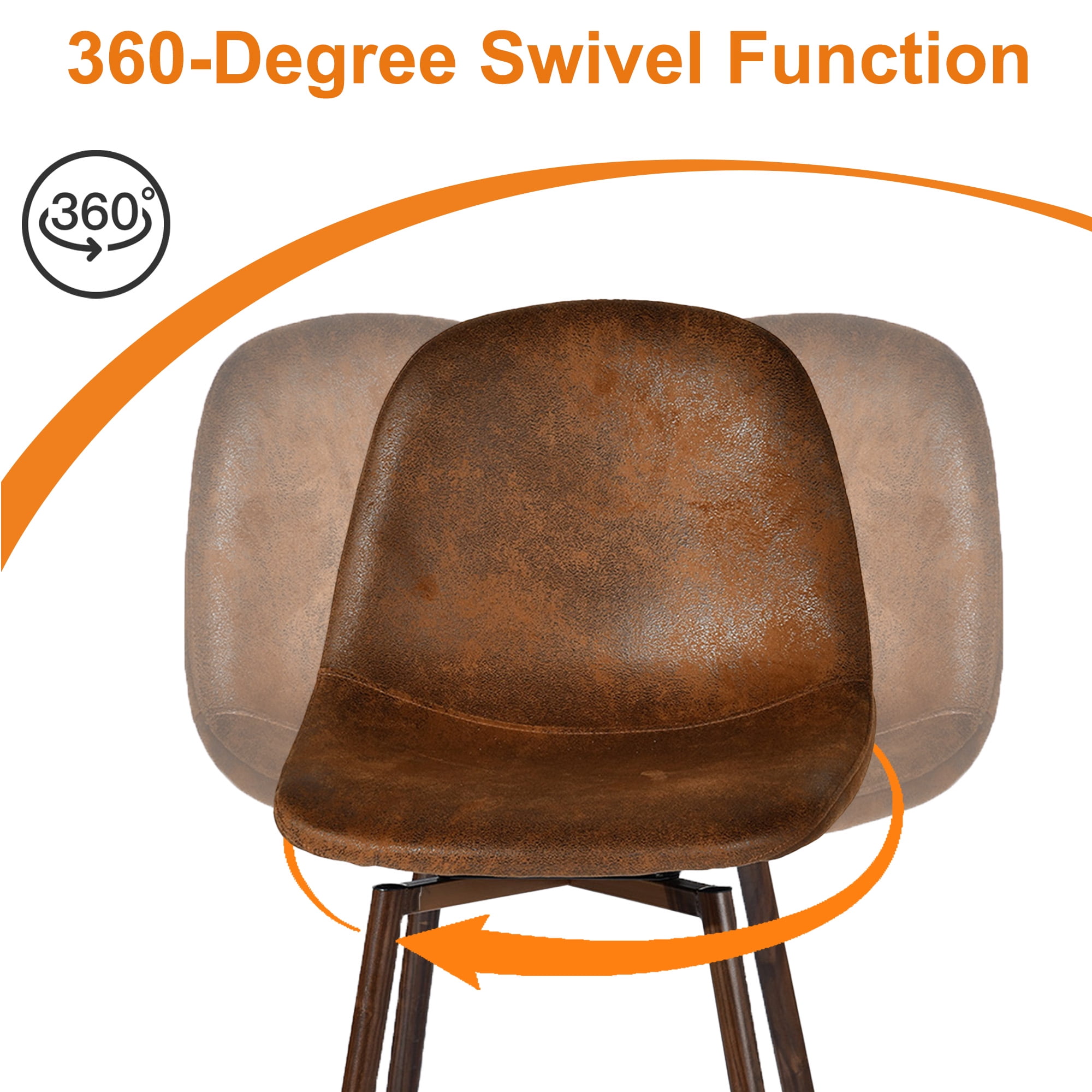 Add warm, vintage style to your dining or bar area with this set of 2 Homy Casa swivel stools. Covered in brown faux suede with a 26″ seat height, they’re perfect for kitchen counters and home bars. The 360° swivel and ergonomic backrest offer comfort and mobility. Durable metal legs with a wood finish ensure strength and character.