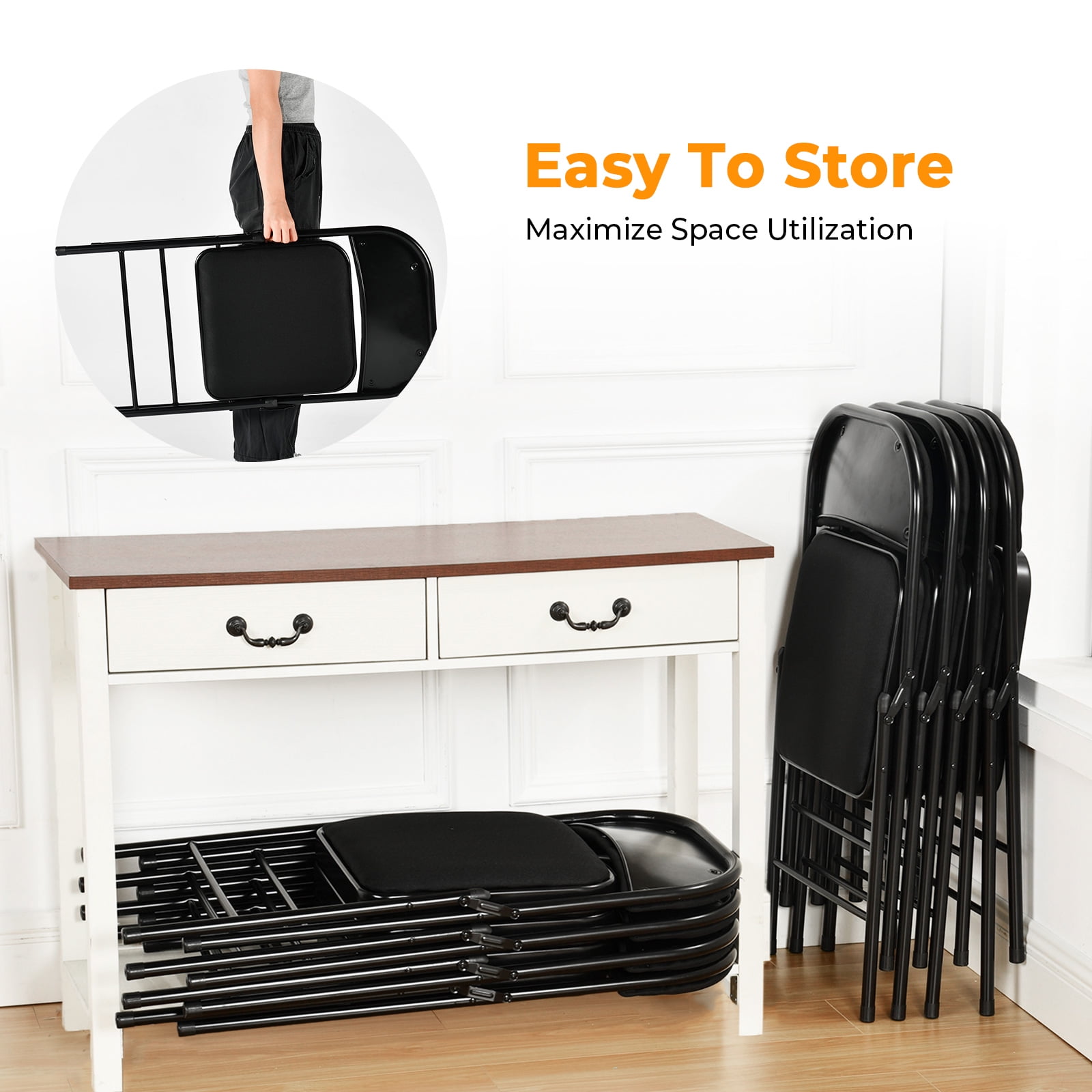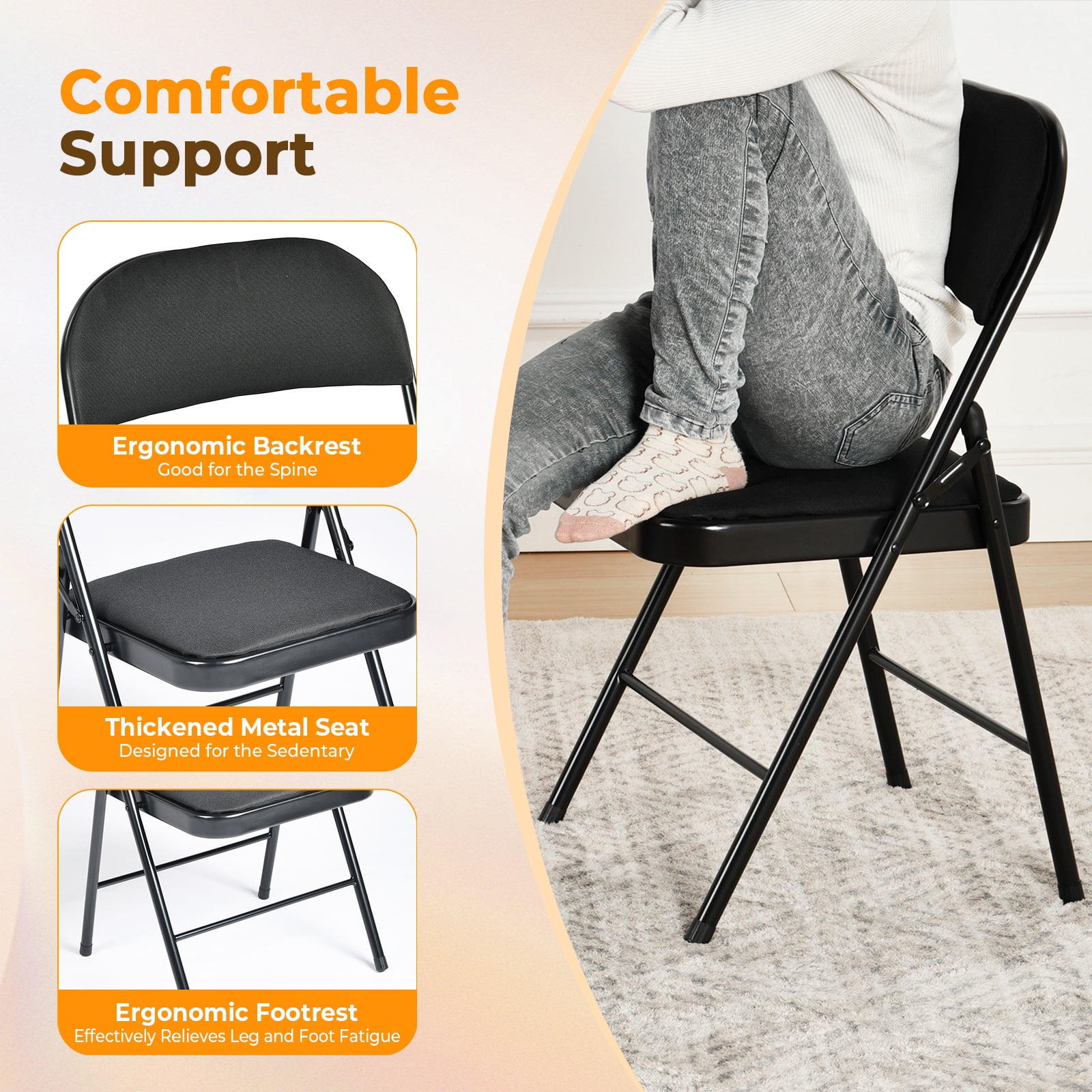 Enhance your comfort and convenience with this 4-piece folding chair set, featuring cushioned seats for extra comfort. Ideal for various indoor and outdoor activities, these chairs require no assembly and fold up easily for compact storage. Whether you’re hosting a family gathering, attending a sporting event, or relaxing at the beach, these versatile chairs provide quick, comfortable seating without the hassle. Lightweight and portable, they’re perfect for any occasion that requires easy, comfortable seating.