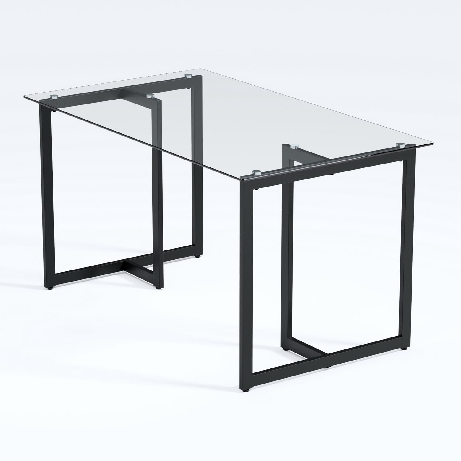 Enhance your workspace with this stylish glass office desk. The tempered glass top and strong iron tube legs with a sleek metal finish fit perfectly into any modern home. The clear glass surface adds a clean look to your home office, living room, or study area. This desk is perfect for home work, studying, or household tasks, offering a practical and elegant solution for any age group.