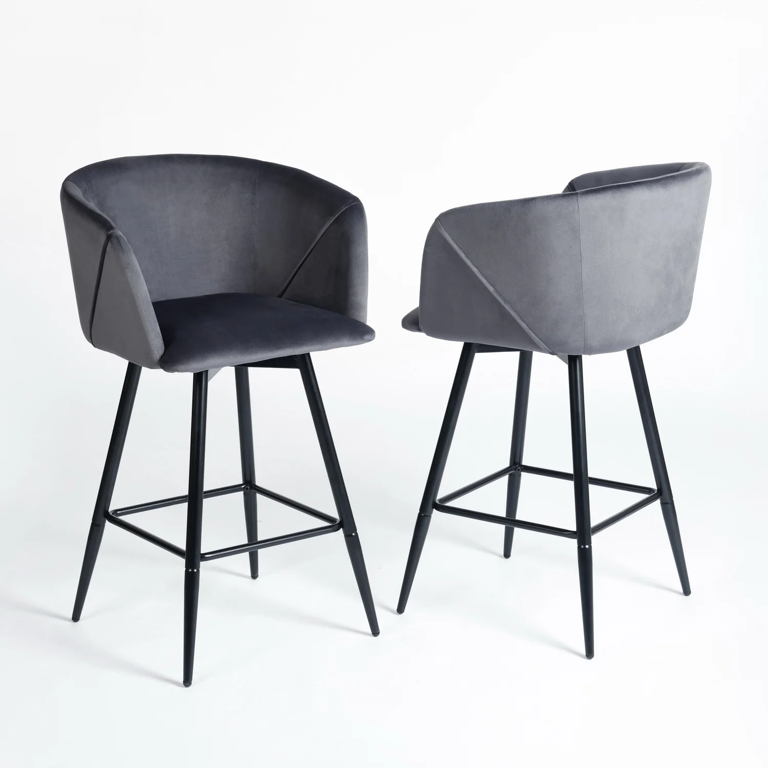 Homy Casa Counter Height Bar Stools, Set of 2, 26″ Upholstered Velvet Modern Stools for Home Kitchen, Grey