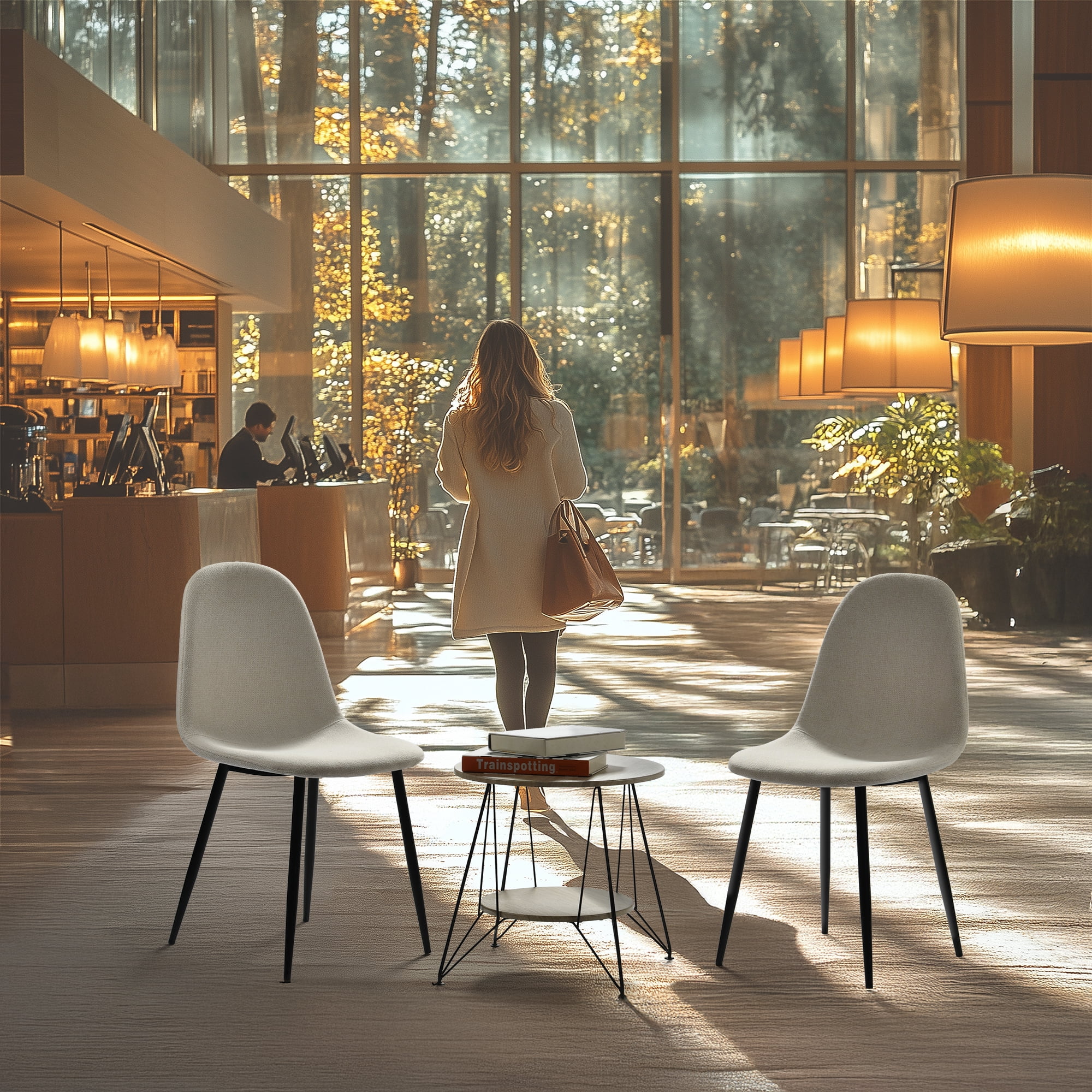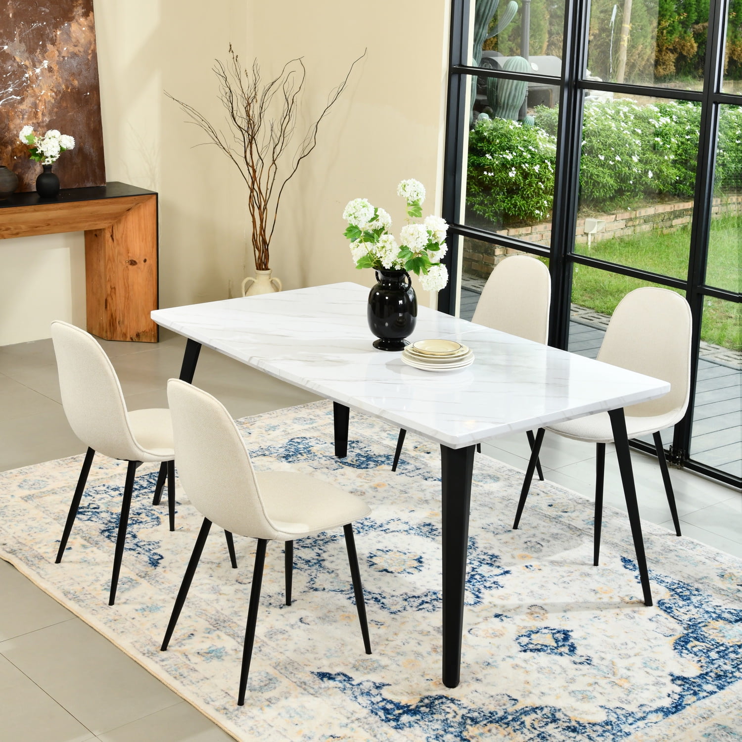 Stylish and Modern Design: The sleek, minimalist look fits seamlessly with various home décor styles, adding a touch of elegance to any room. Ergonomic Comfort: Designed with a curved backrest and padded fabric seat, these chairs offer great comfort, making them perfect for long dining sessions or work meetings. Sturdy Metal Frame: The durable black metal legs provide excellent stability and support, with a weight capacity of up to 250 lbs. Compact and Space-Saving: Its compact footprint makes these chairs fit easily under most dining tables, saving valuable space in smaller areas. Versatile Usage: Ideal for dining rooms, kitchens, home offices, or occasional seating in any living space. Easy Assembly: The chairs come with simple assembly instructions, ensuring you can set them up quickly and enjoy them immediately. Dimensions: Overall height: 33.9 inches Backrest height: 16.9 inches Seat width: 17.7 inches Seat depth: 15.7 inches Seat height from floor: 18.1 inches Chair width (leg span): 21.7 inches Leg depth: 17.7 inches Package Included: Dining chairs set of 4