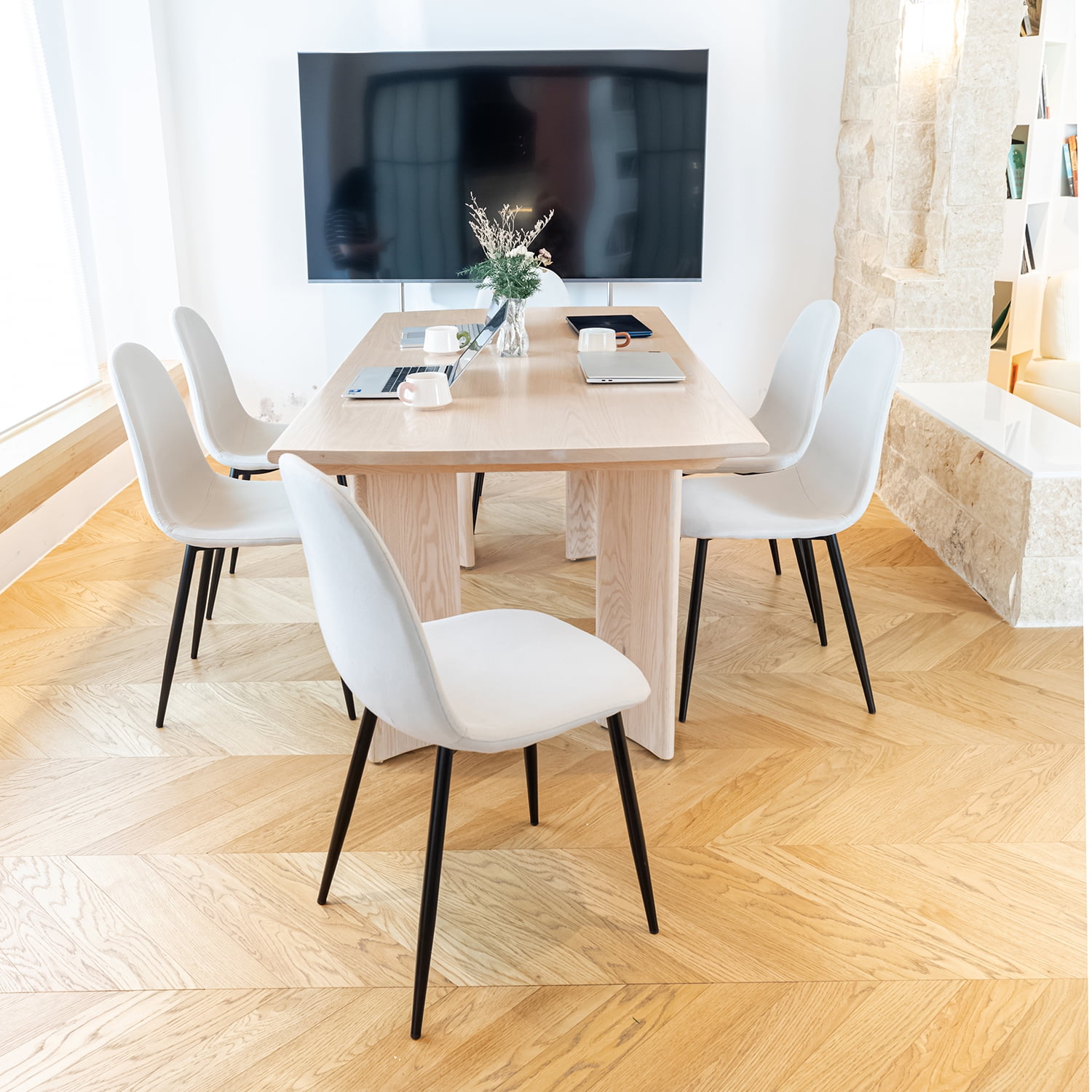 Homy Casa Dining Chairs Set of 4 Upholstered Fabric Chairs with Metal Legs for Living Room Beige