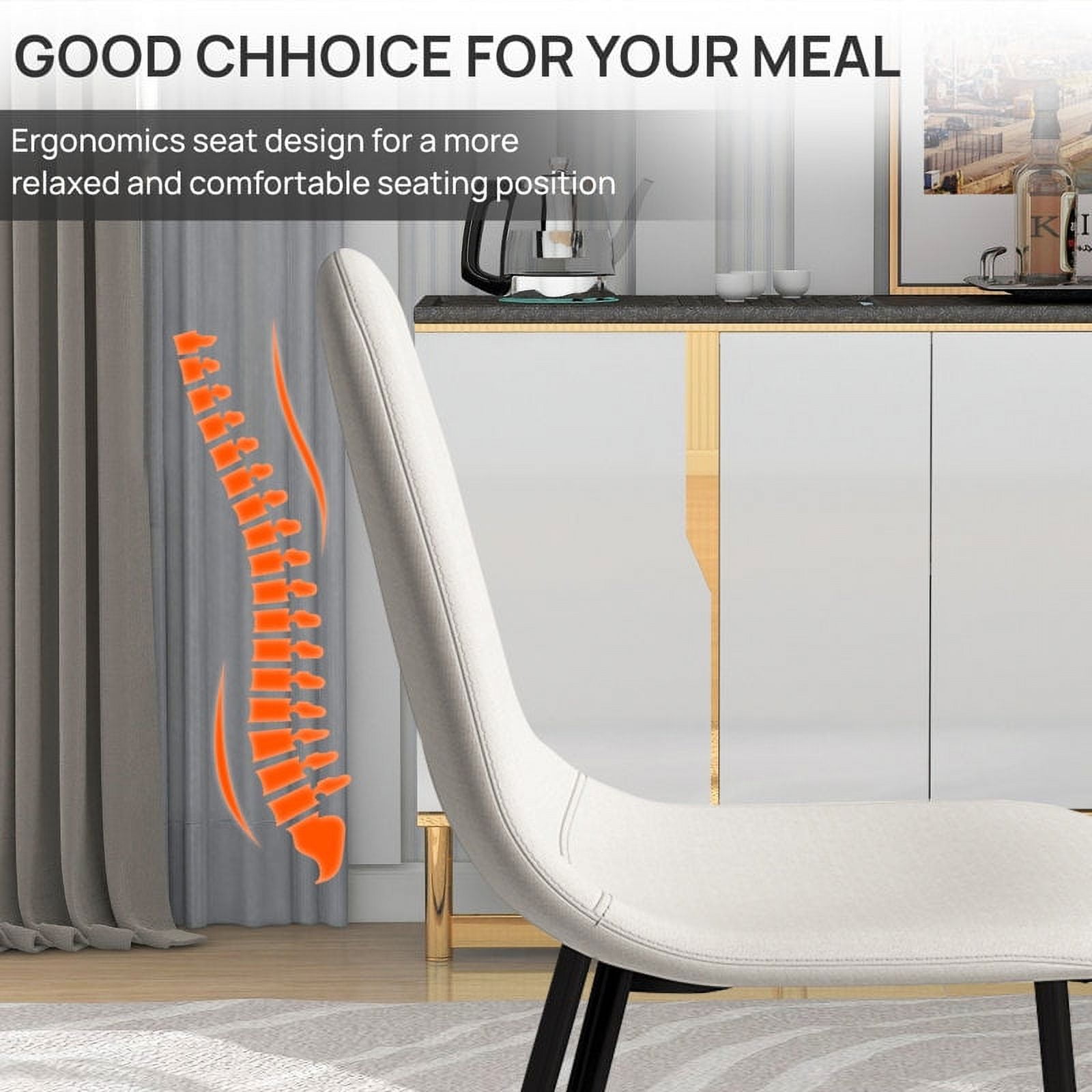 Homy Casa Dining Chairs Set of 4, Upholstered Fabric Side Chairs with Black Metal Legs, Beige