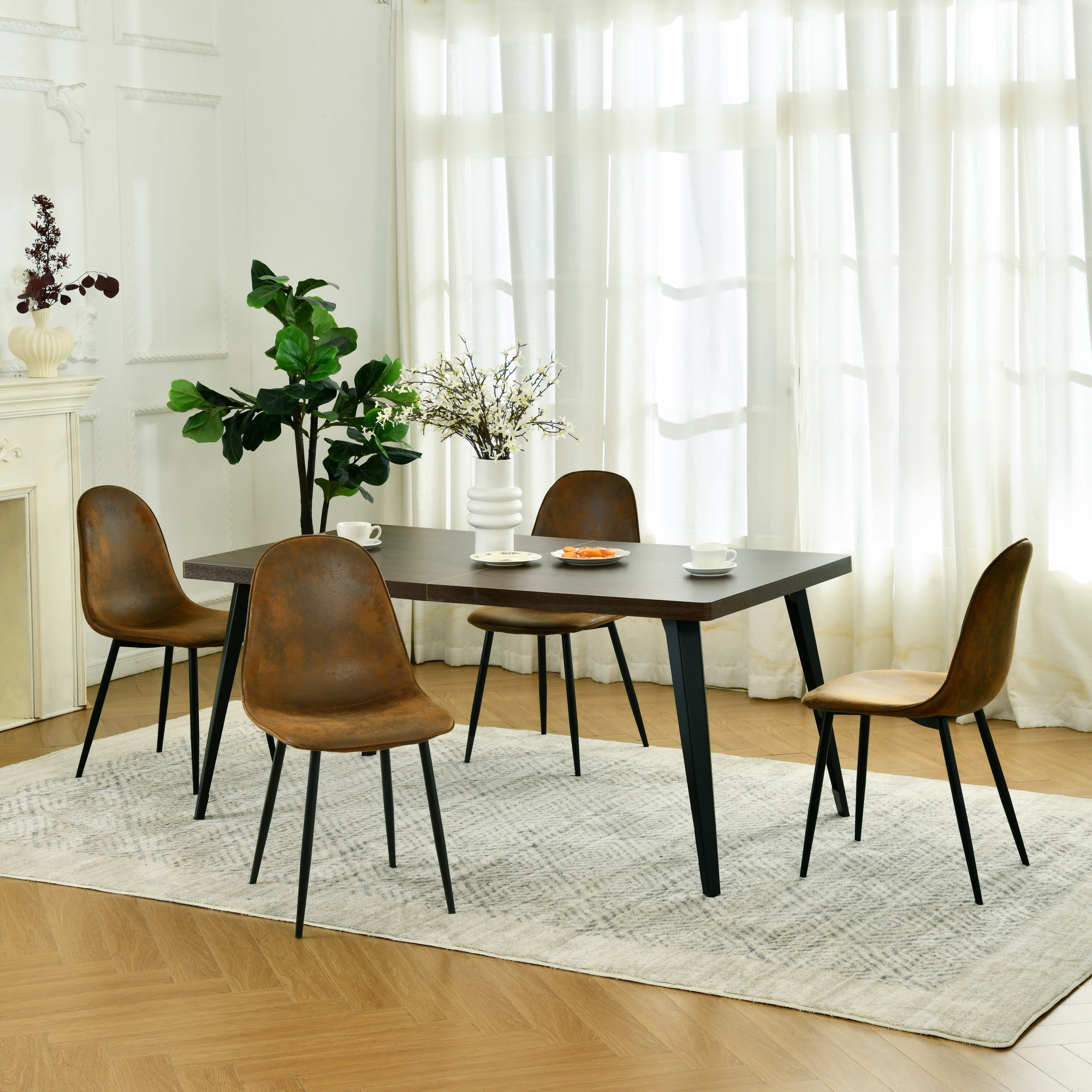 Warm & Welcoming Rustic Design: Wrapped in soft brown suede fabric with a curved backrest, these dining chairs bring a natural, cozy feel to your dining room or kitchen space. Comfort You Can Count On: The gently cushioned seat and ergonomic back support make every meal more enjoyable—whether it’s a quick breakfast or a long family dinner. Stable & Strong for Everyday Use: Built with durable metal legs and a 250lbs weight capacity, these chairs are made to last through daily meals, homework sessions, and weekend gatherings. Versatile Look That Matches Any Table: The earthy brown tone blends beautifully with wooden, metal, or marble dining tables—perfect for both farmhouse and modern décor styles. Quick Assembly, Easy to Maintain: Simple step-by-step instructions for fast assembly. The suede-like fabric is also easy to clean, so your dining space always feels fresh and inviting.