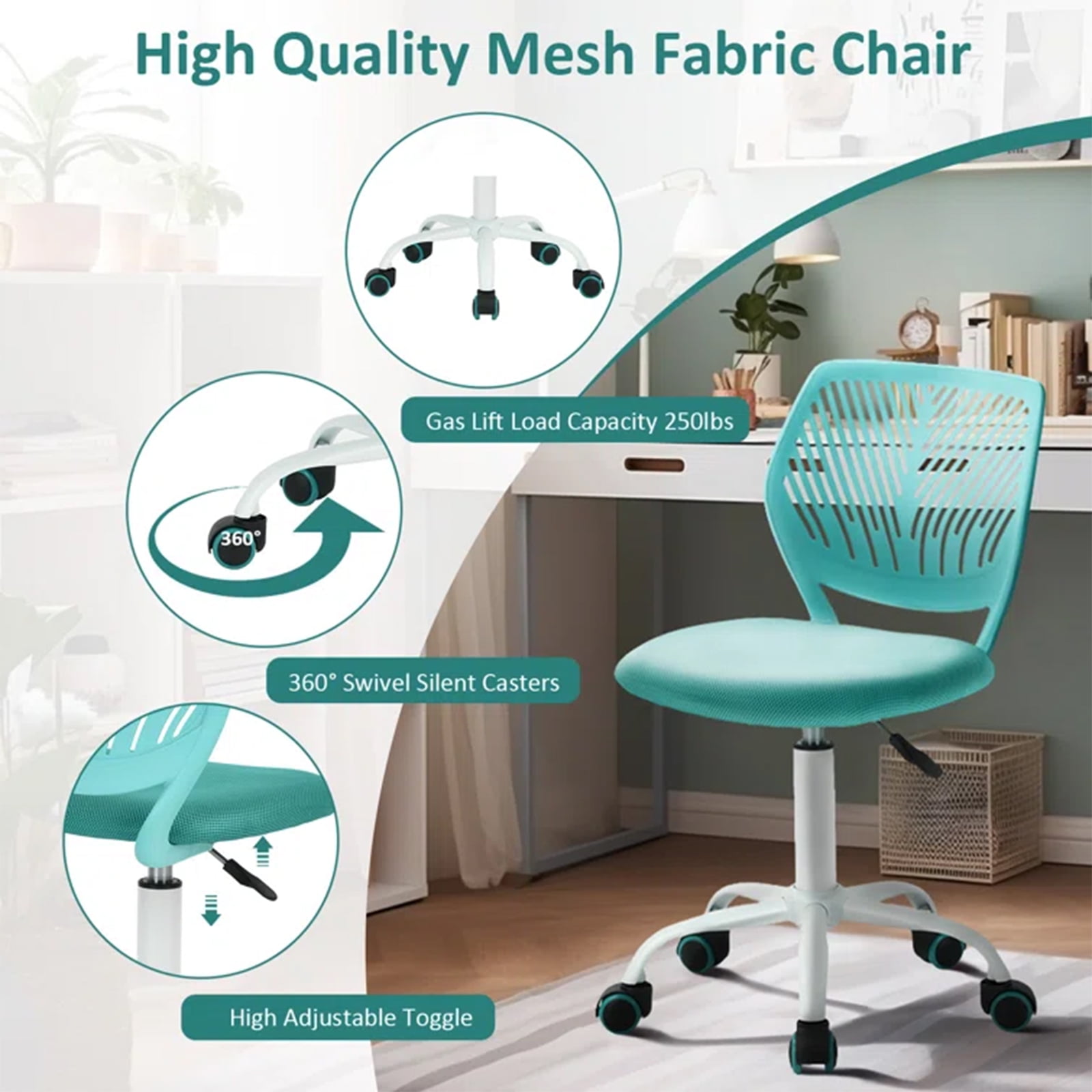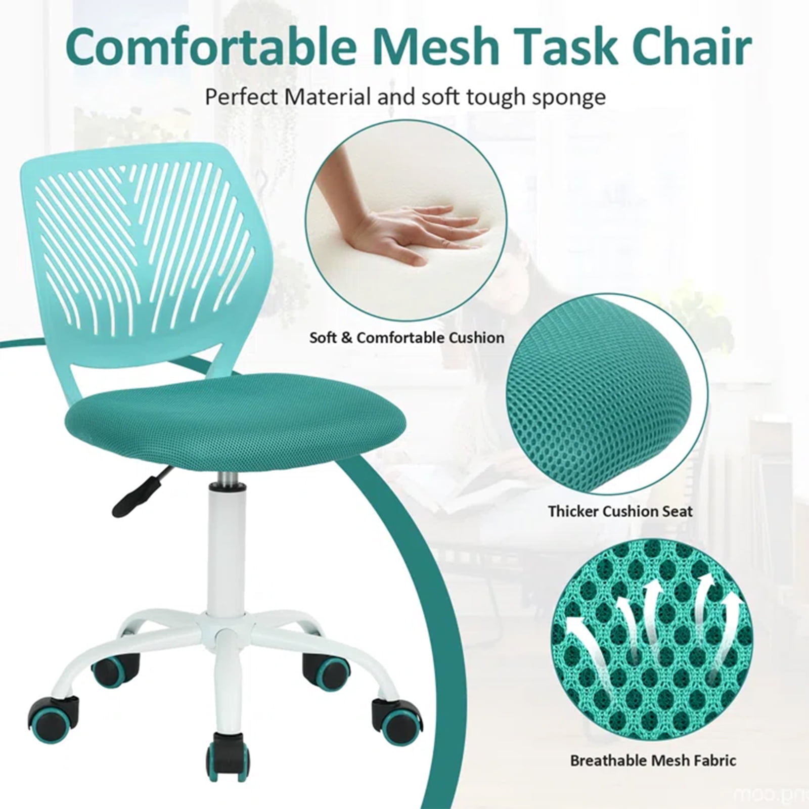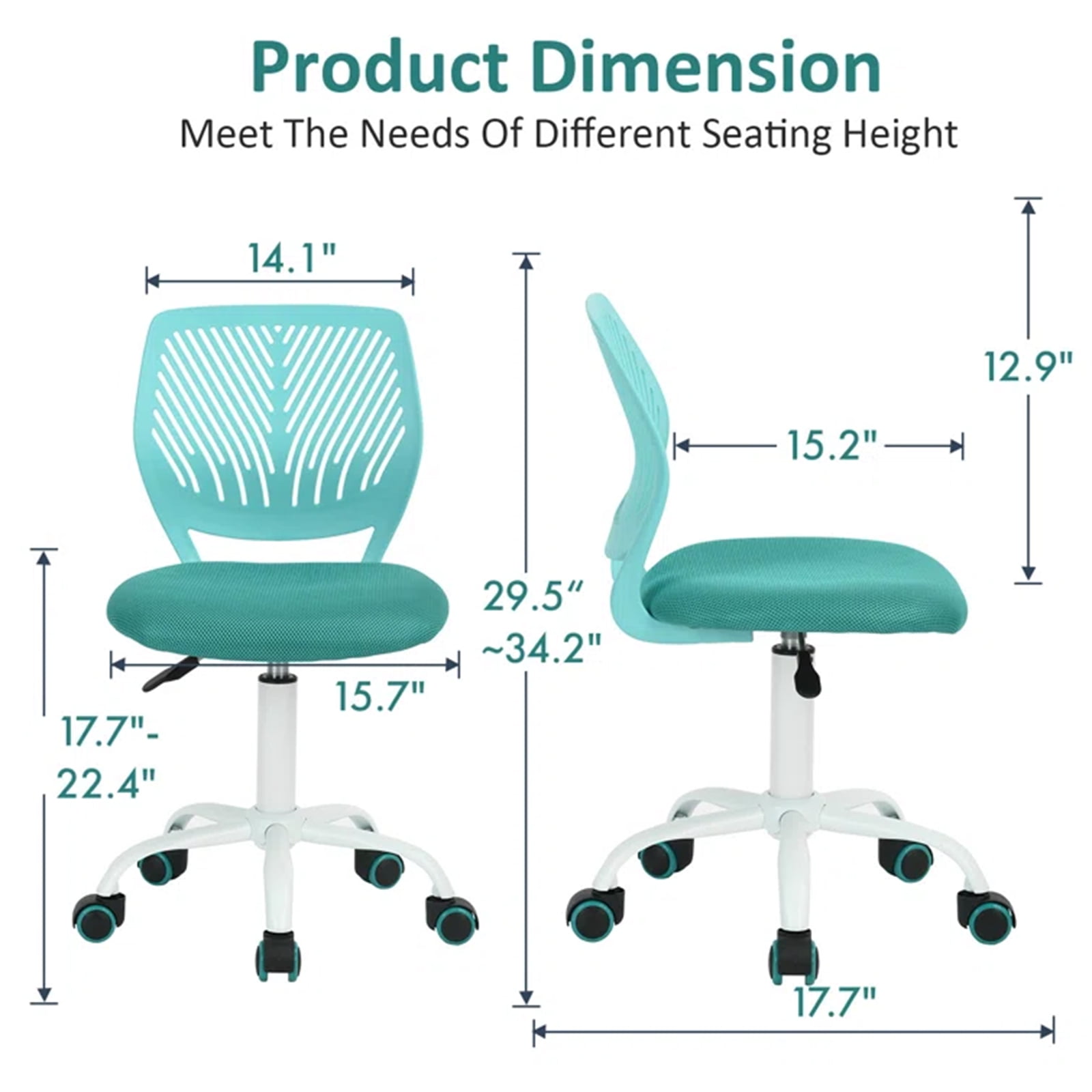Homy Casa Kids Desk Chair, Height Adjustable Small Study Computer Task Chair for Student Children Teens with Wheels, Turquoise