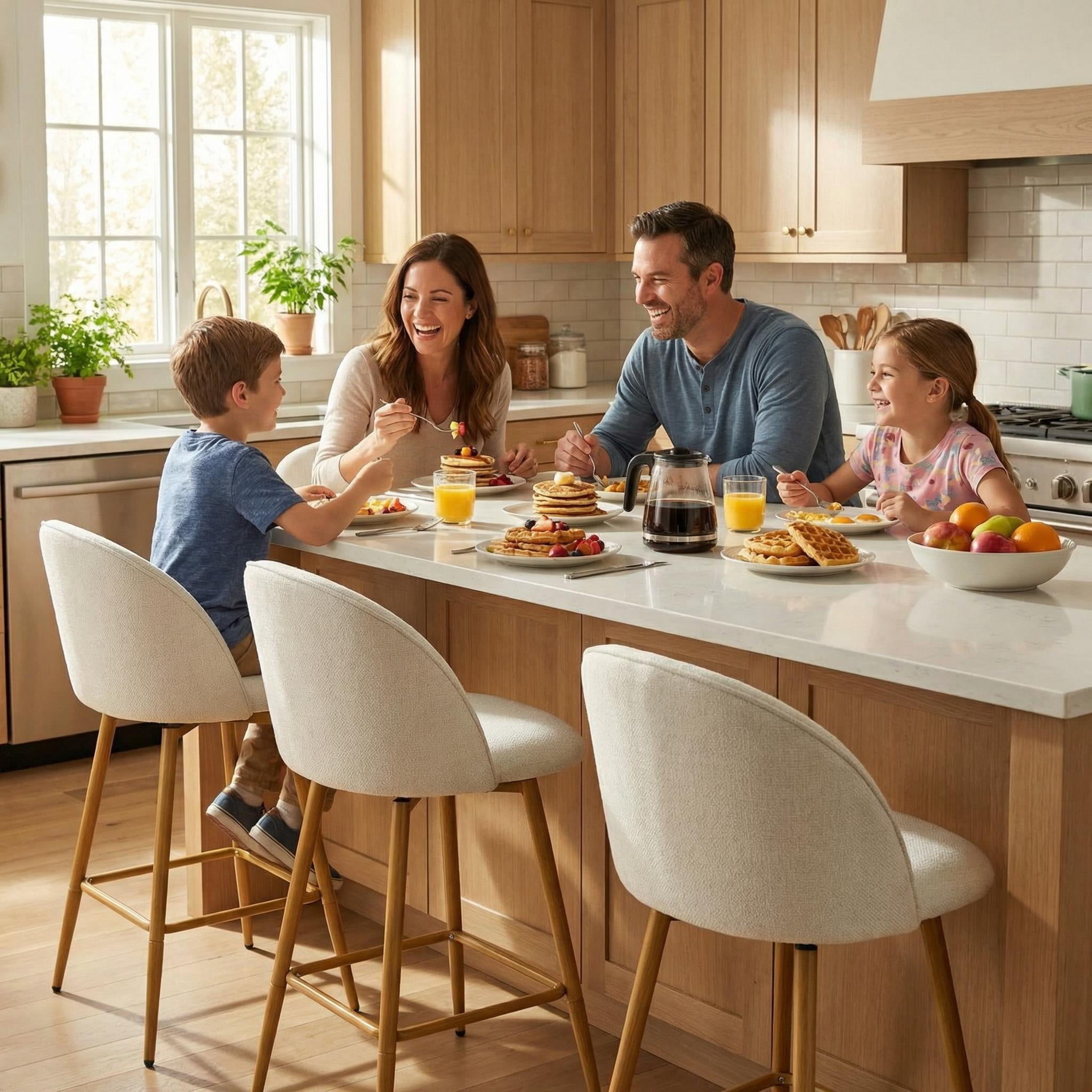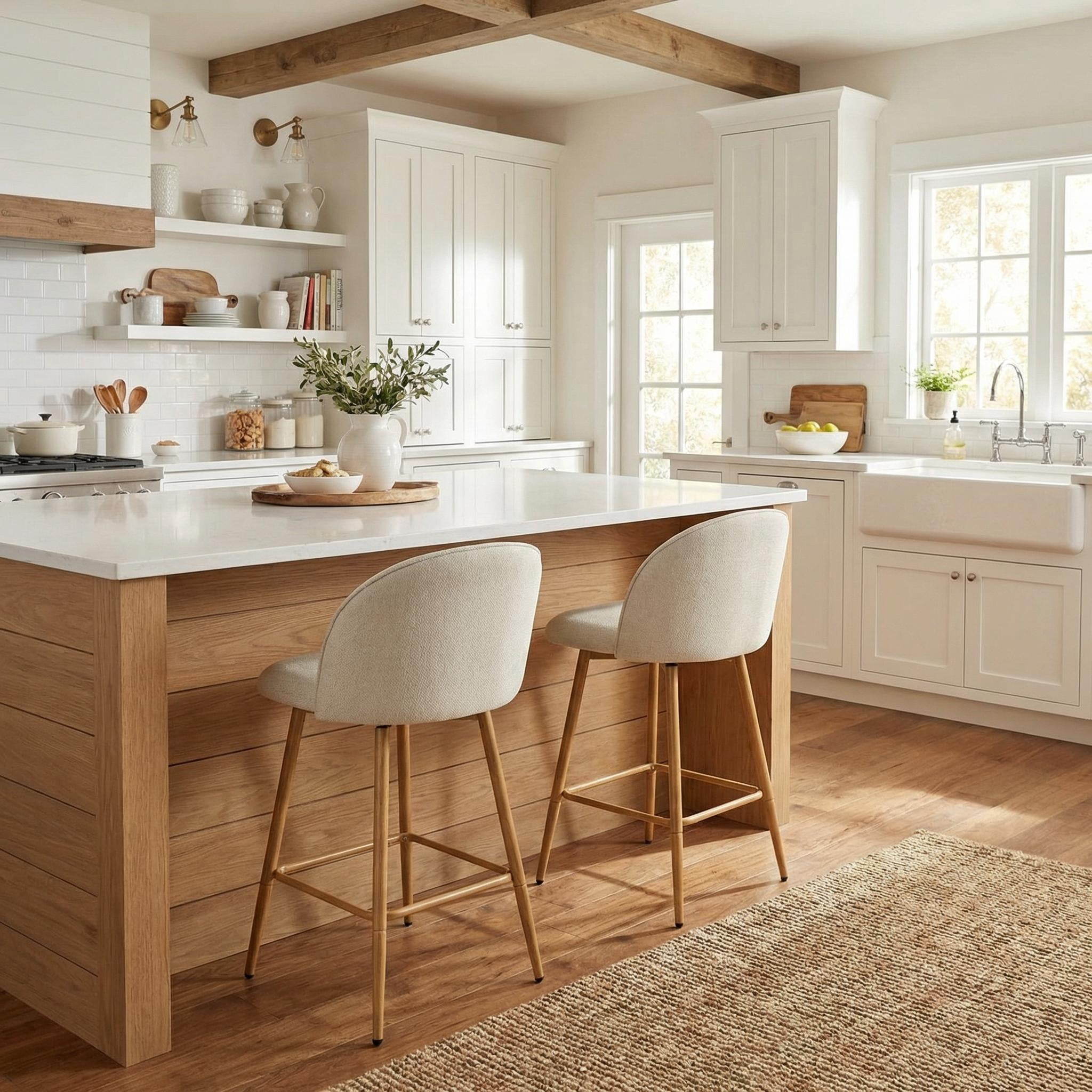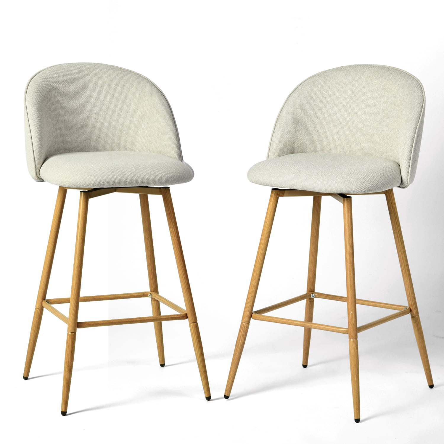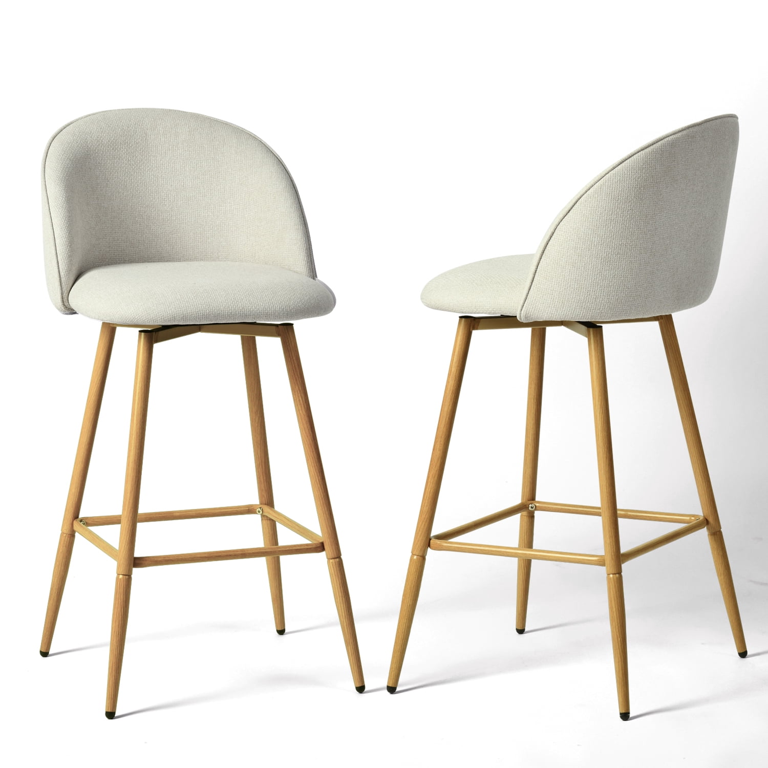 360° Swivel Functionality: Enjoy smooth and effortless rotation, perfect for casual dining or entertaining guests. Stylish Beige Fabric Seat: Soft and inviting upholstery complements modern and transitional interiors. Counter-Height Design: The 26″ seat height is ideal for standard counter tables ranging from 40″ to 43″ high. Sturdy Oak-Look Legs: Metal legs with an oak woodgrain finish provide strong support and elegant style. Perfect for everyday use in kitchens, breakfast nooks, or home bars. Ideal for casual dining, family meals, and entertaining guests. Suitable for holiday gatherings, housewarmings, or daily seating. Great for modern kitchens, coffee corners, and weekend brunches. Package Included: Swivel Barstools set of 2